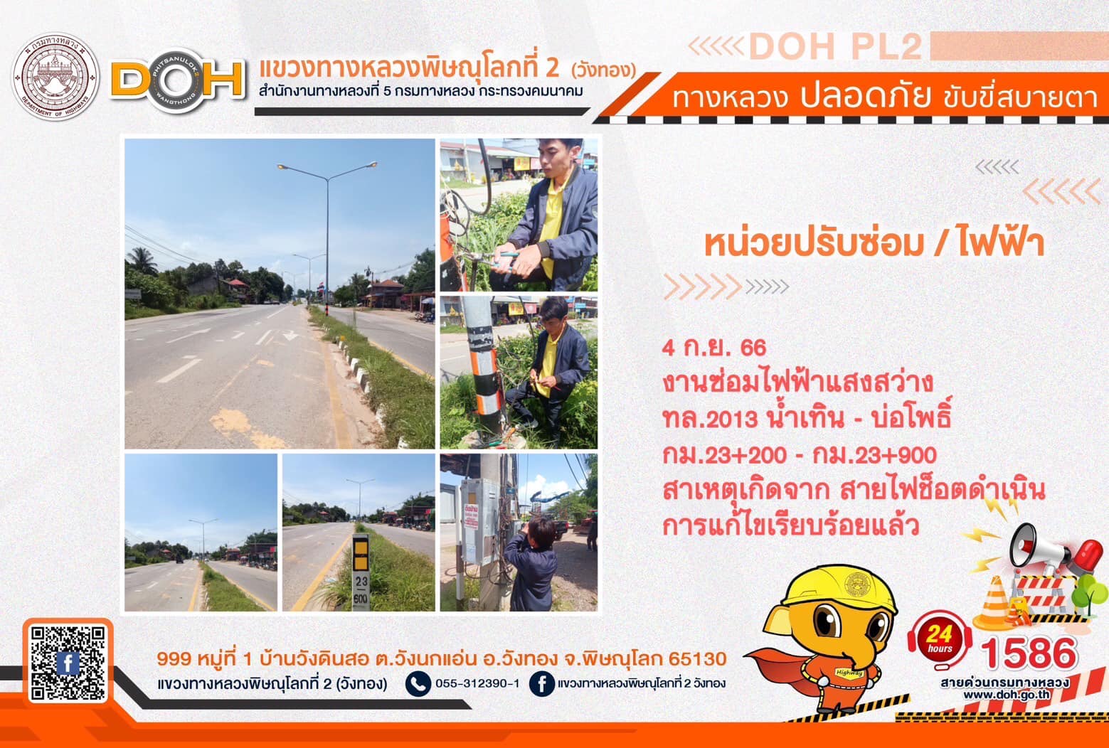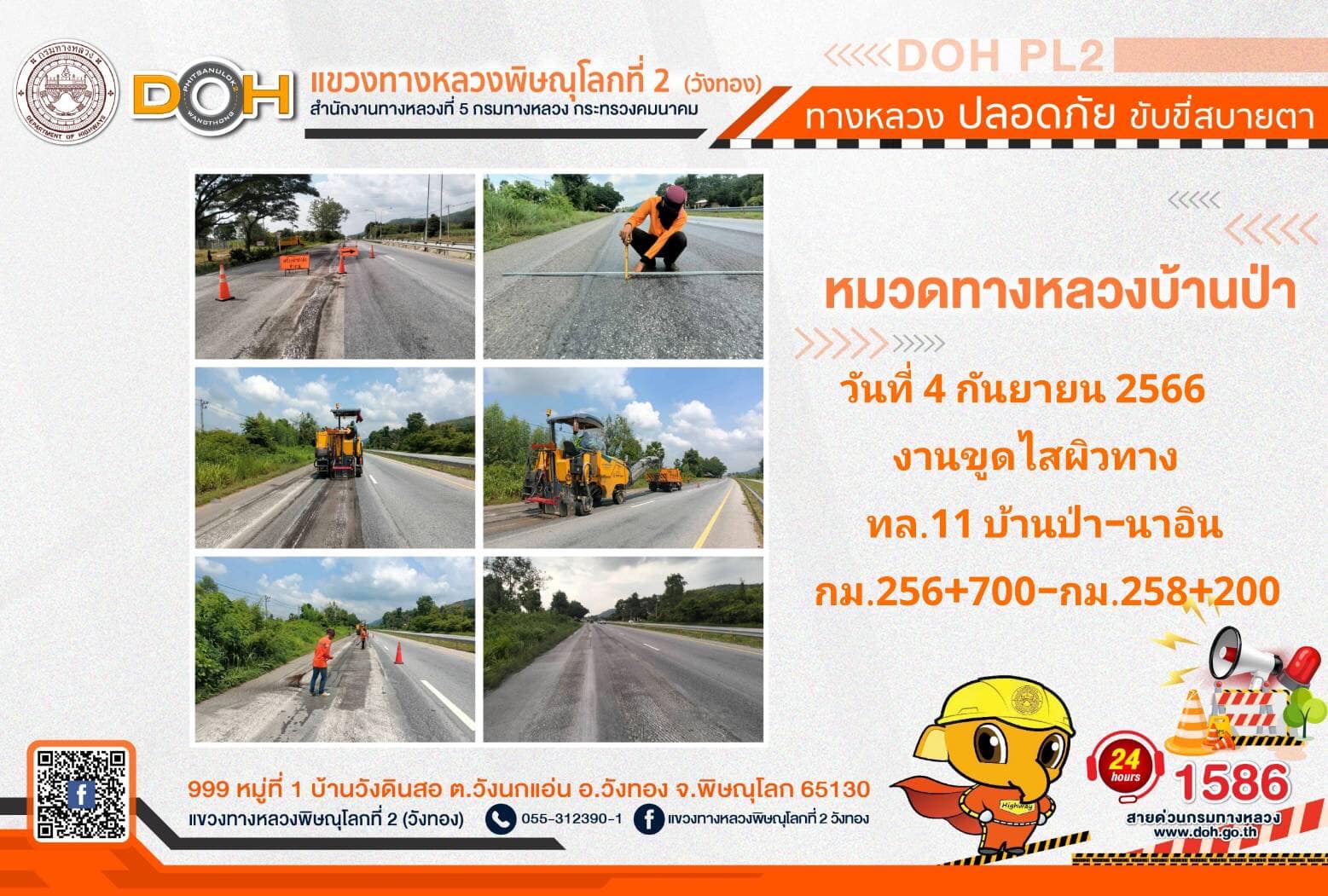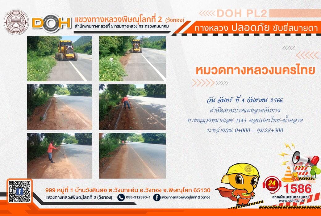 การปฏิบัติงานของ หมวดทางหลวง และ หน่วยงานในสังกัด เพื่ออำนวยความสะดวก และปลอดภัยให้กับประชาชนผู้ใช้เส้นทาง ประจำ วันจันทร์ที่ 4 กันยายน 2566