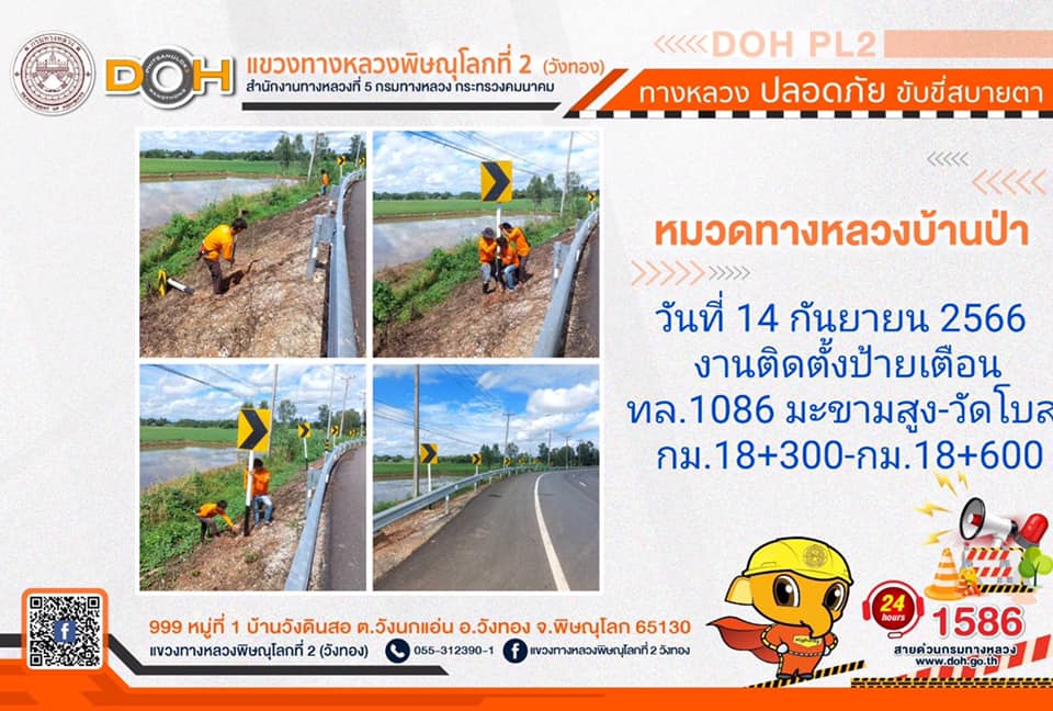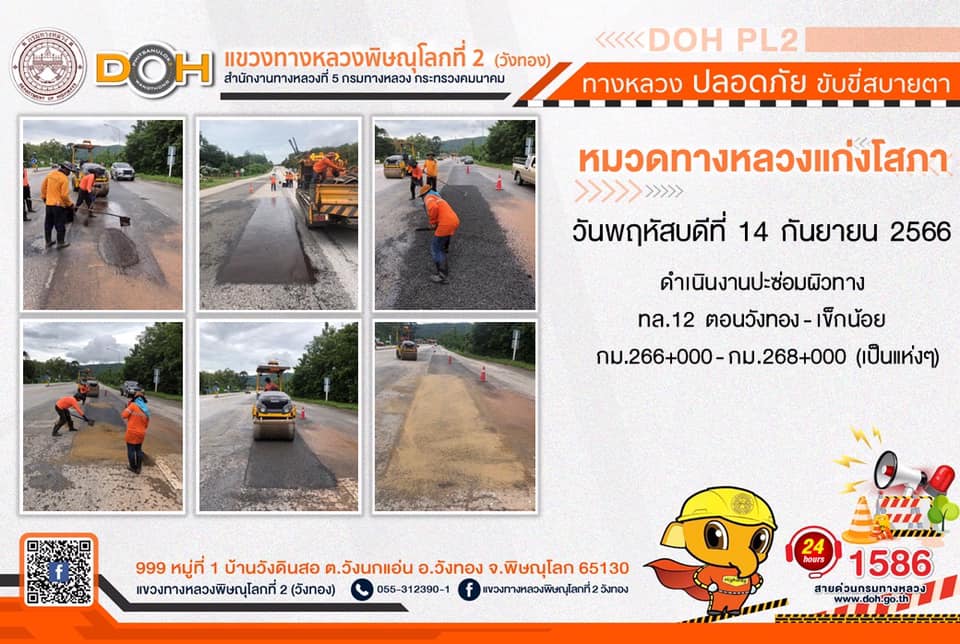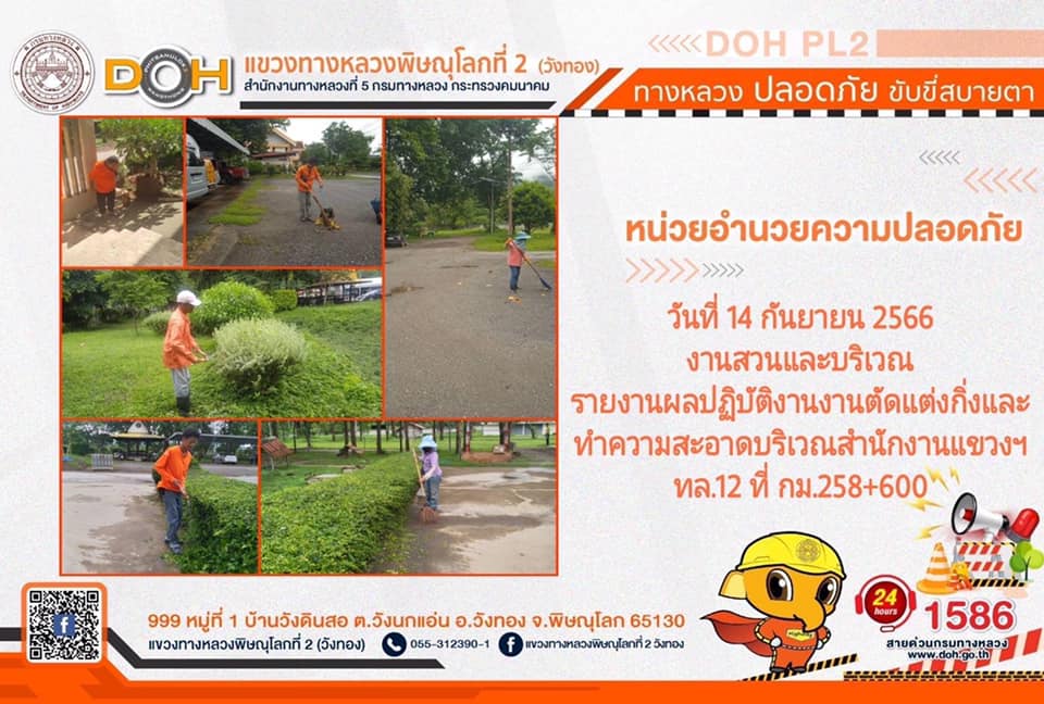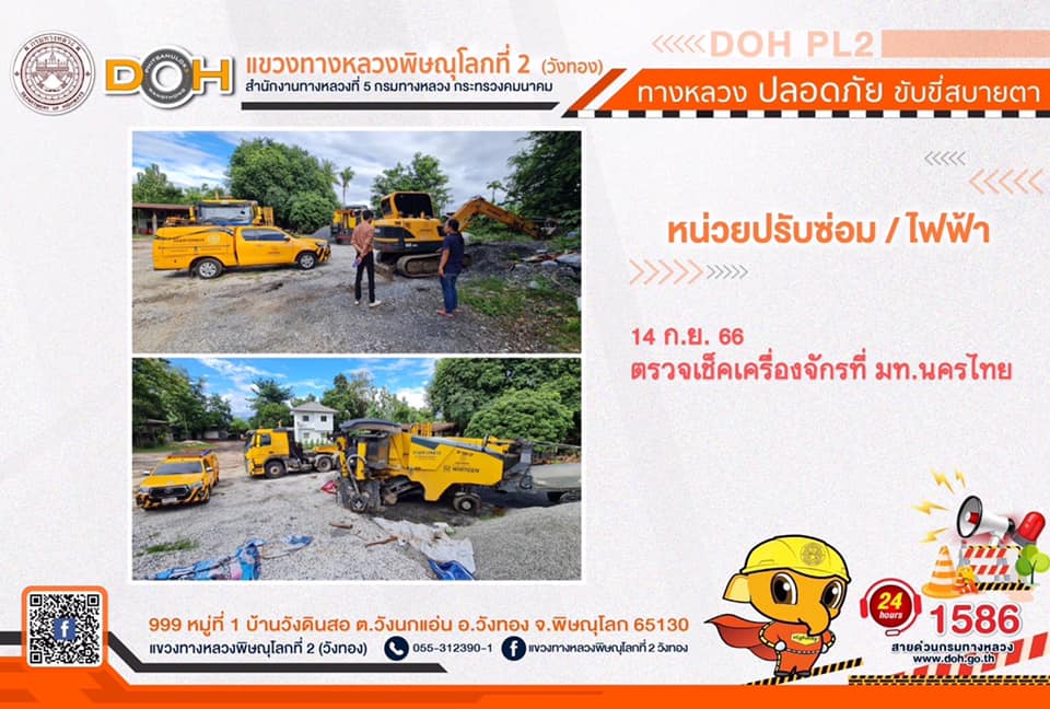 การปฏิบัติงานของ หมวดทางหลวง และ หน่วยงานในสังกัด เพื่ออำนวยความสะดวก และปลอดภัยให้กับประชาชนผู้ใช้เส้นทาง ประจำ วันพฤหัสบดีที่ 14 กันยายน 2566
