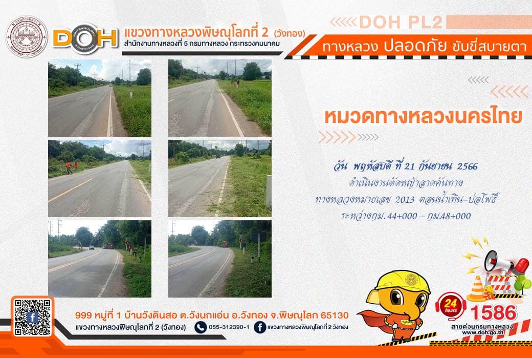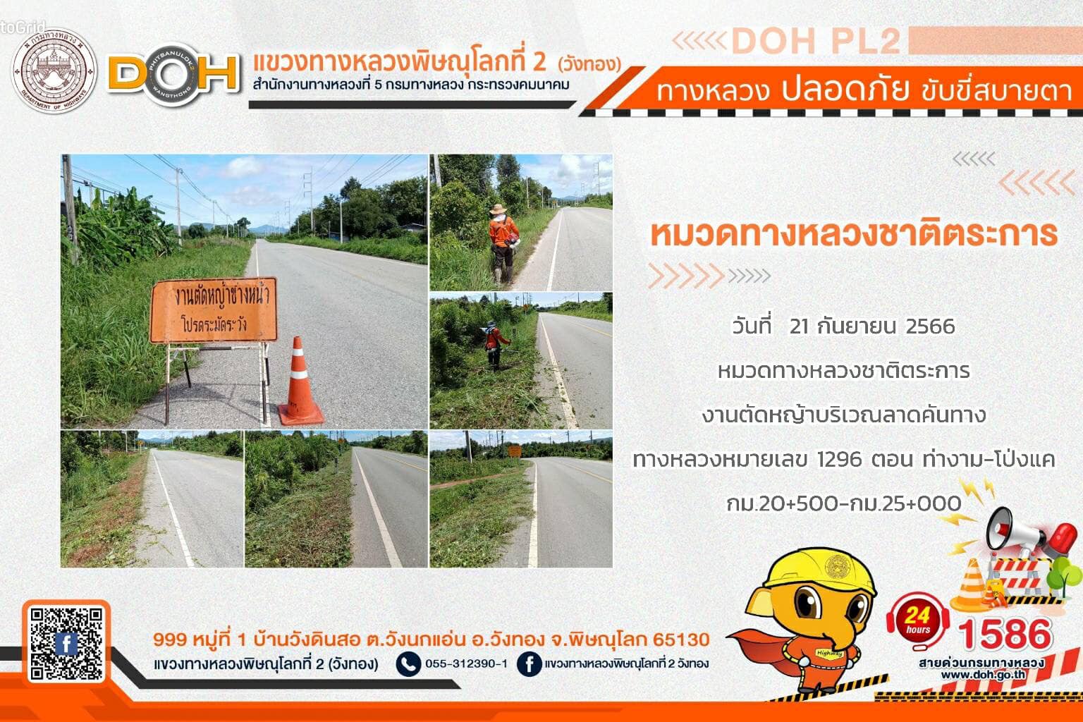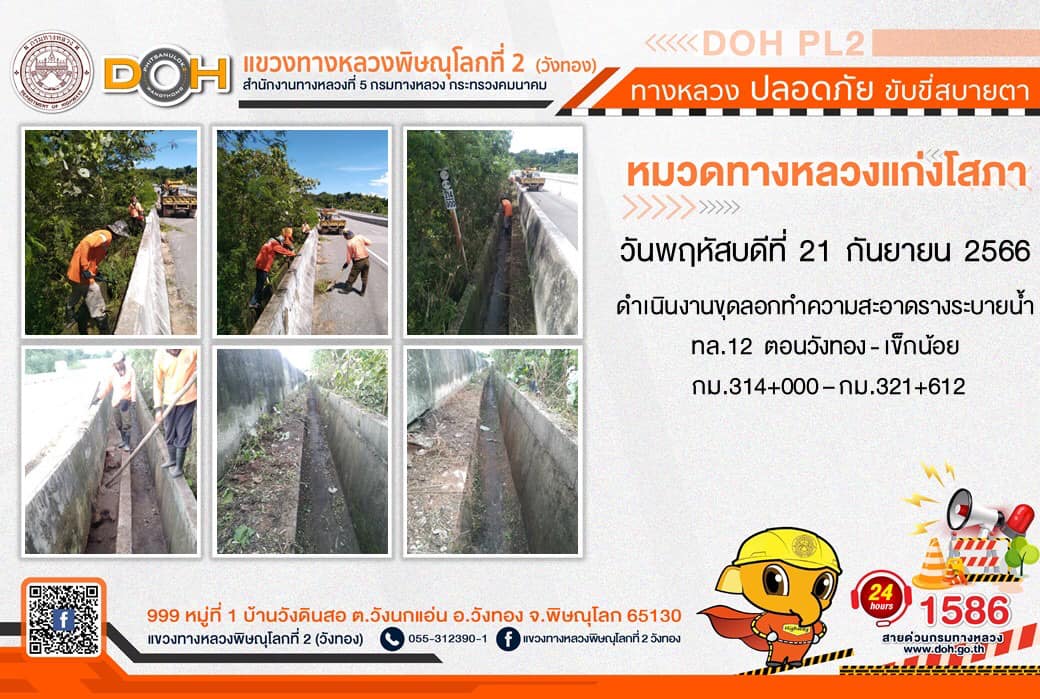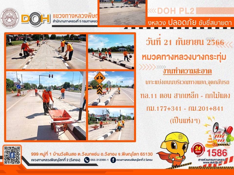 การปฏิบัติงานของ หมวดทางหลวง และ หน่วยงานในสังกัด เพื่ออำนวยความสะดวก และปลอดภัยให้กับประชาชนผู้ใช้เส้นทาง ประจำ วันพฤหัสบดีที่ 21 กันยายน 2566