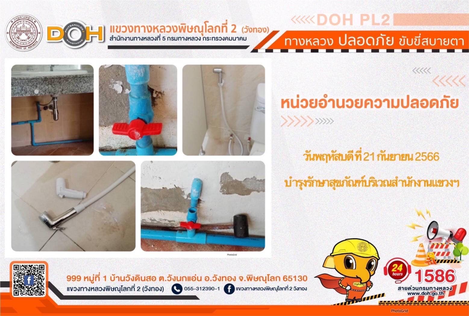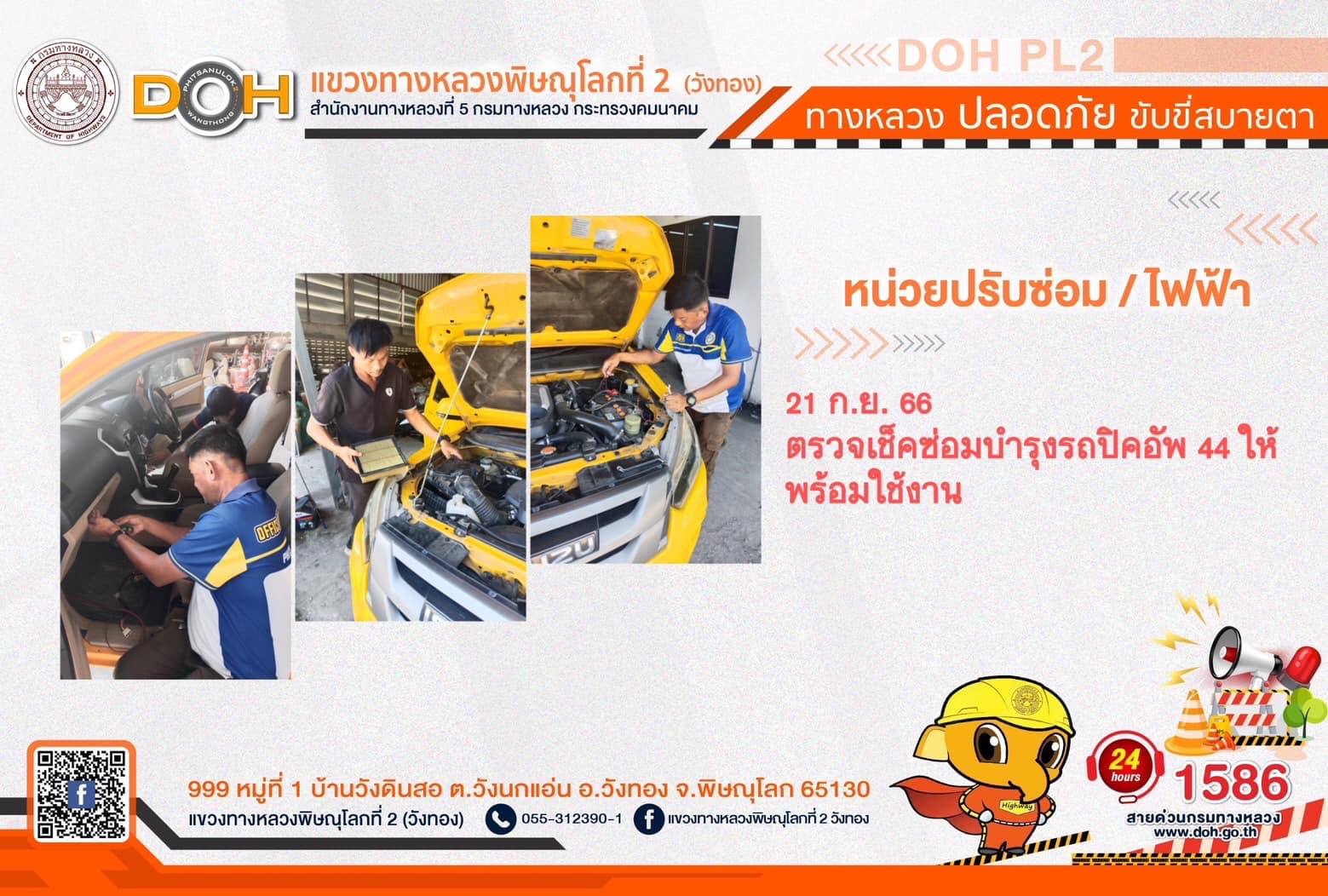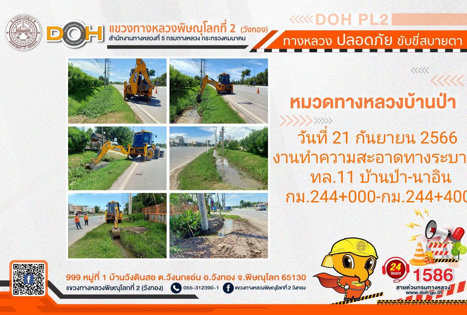 การปฏิบัติงานของ หมวดทางหลวง และ หน่วยงานในสังกัด เพื่ออำนวยความสะดวก และปลอดภัยให้กับประชาชนผู้ใช้เส้นทาง ประจำ วันพฤหัสบดีที่ 21 กันยายน 2566