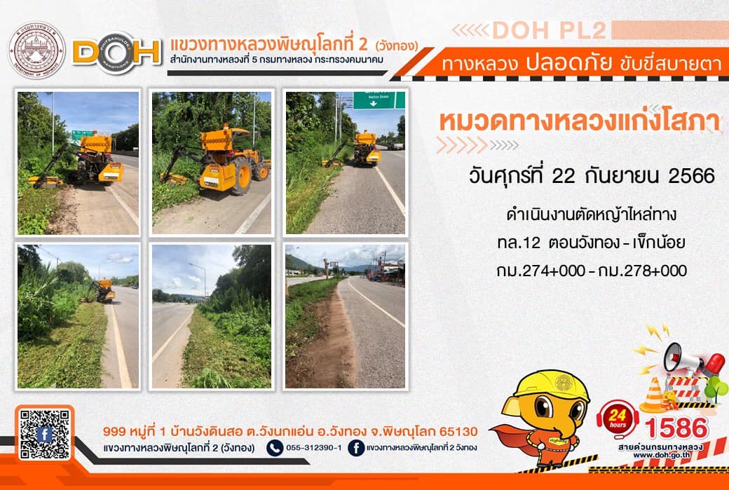 การปฏิบัติงานของ หมวดทางหลวง และ หน่วยงานในสังกัด เพื่ออำนวยความสะดวก และปลอดภัยให้กับประชาชนผู้ใช้เส้นทาง ประจำ วันศุกร์ที่ 22 กันยายน 2566