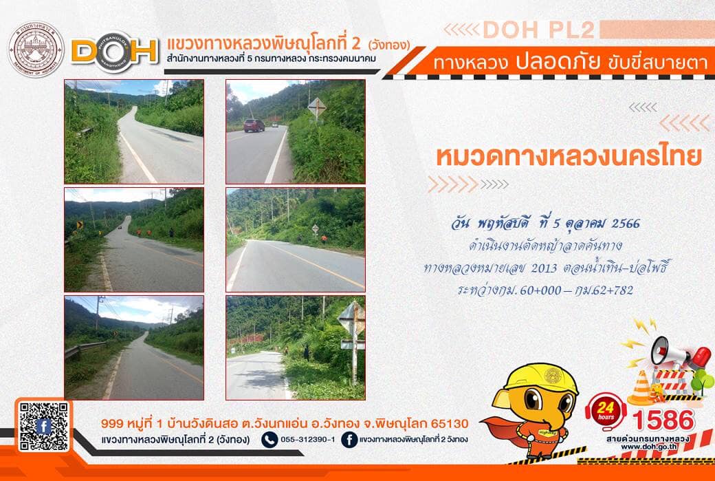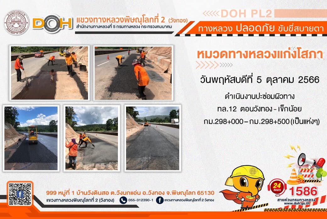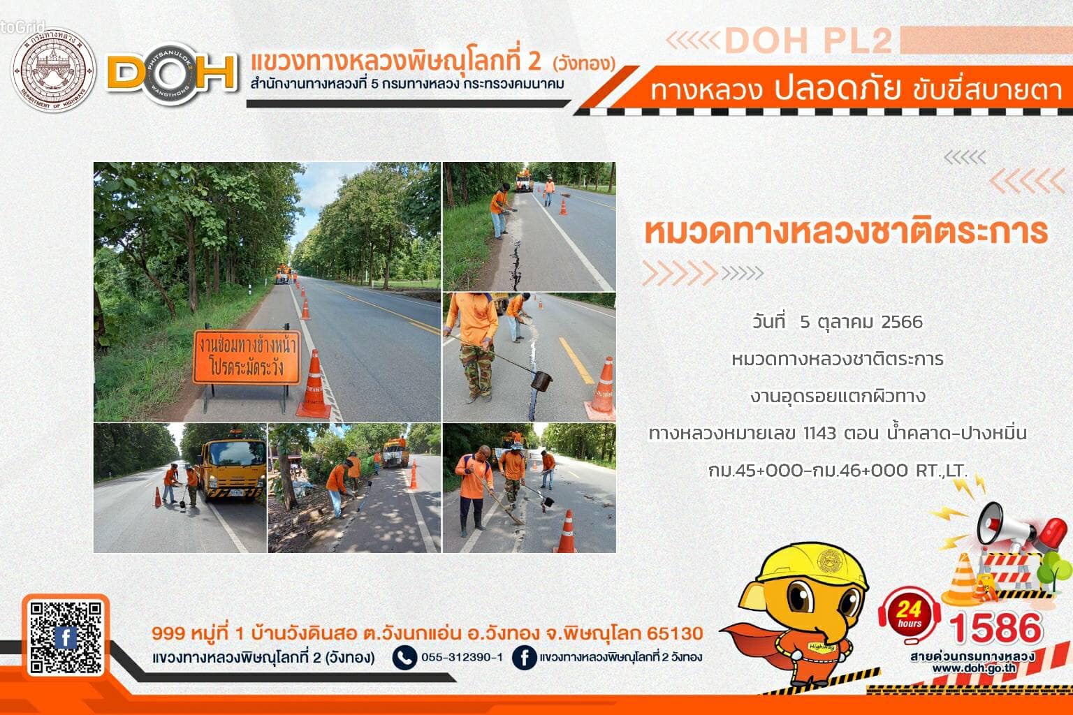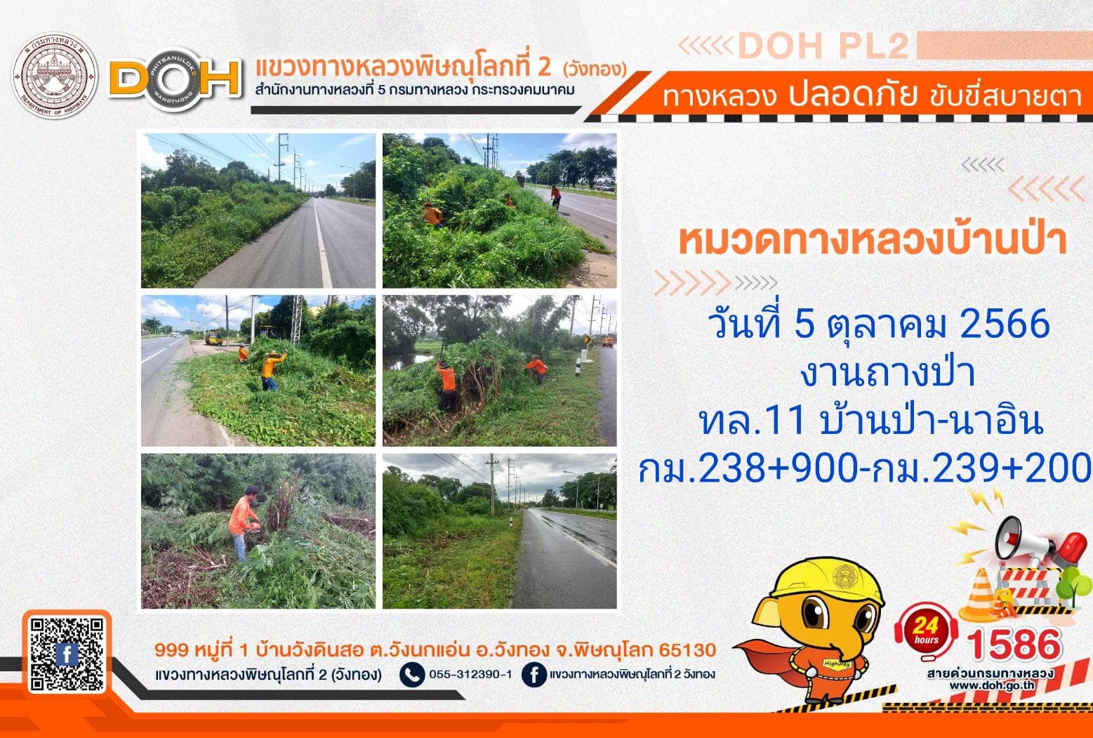 การปฏิบัติงานของ หมวดทางหลวง และ หน่วยงานในสังกัด เพื่ออำนวยความสะดวก และปลอดภัยให้กับประชาชนผู้ใช้เส้นทาง ประจำ วันพฤหัสบดีที่ 5 ตุลาคม 2566