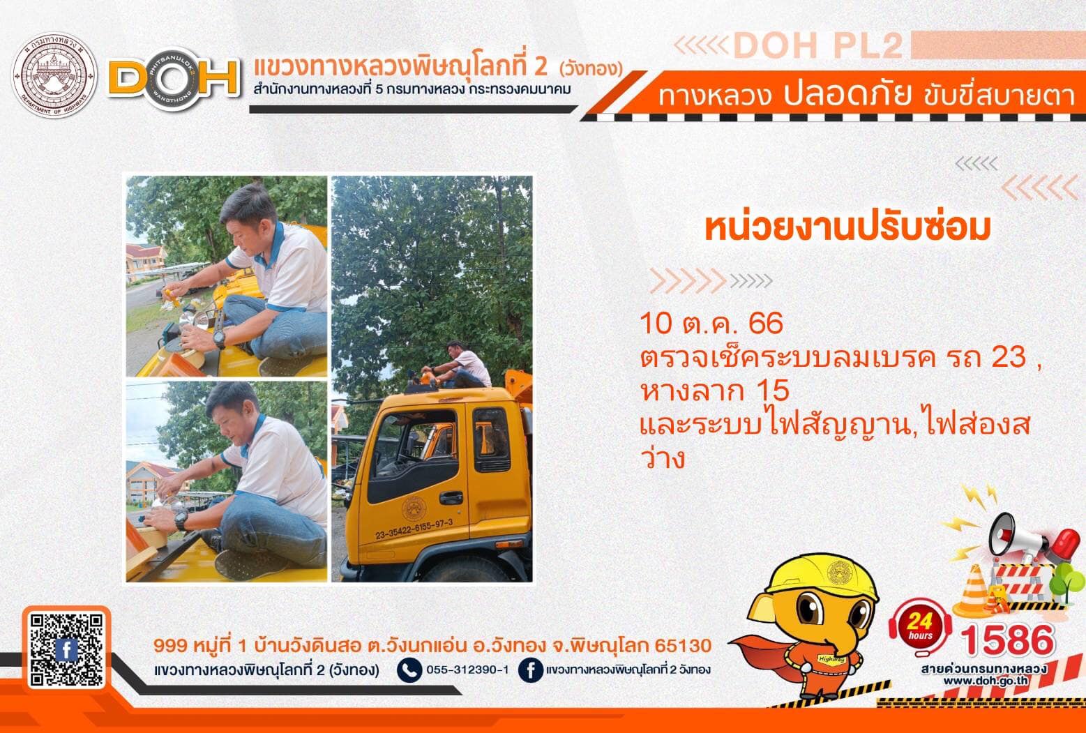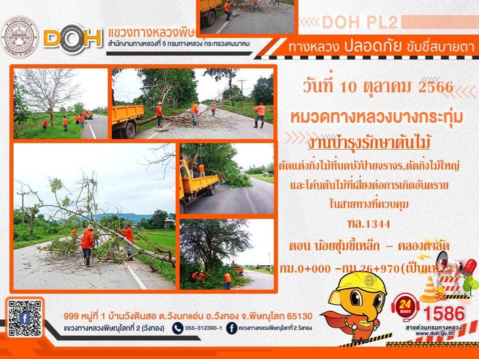 การปฏิบัติงานของ หมวดทางหลวง และ หน่วยงานในสังกัด เพื่ออำนวยความสะดวก และปลอดภัยให้กับประชาชนผู้ใช้เส้นทาง ประจำ วันอังคารที่ 10 ตุลาคม 2566