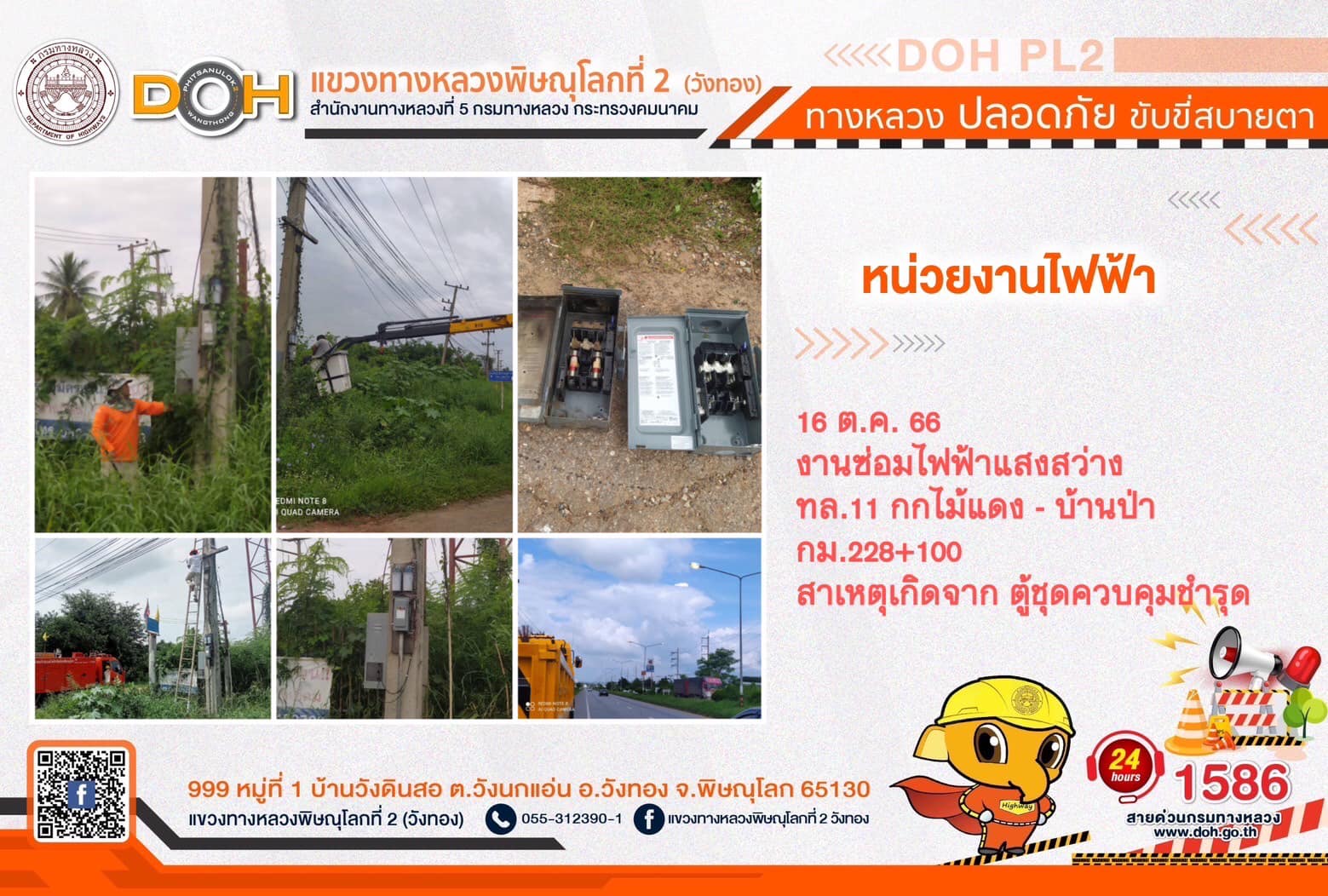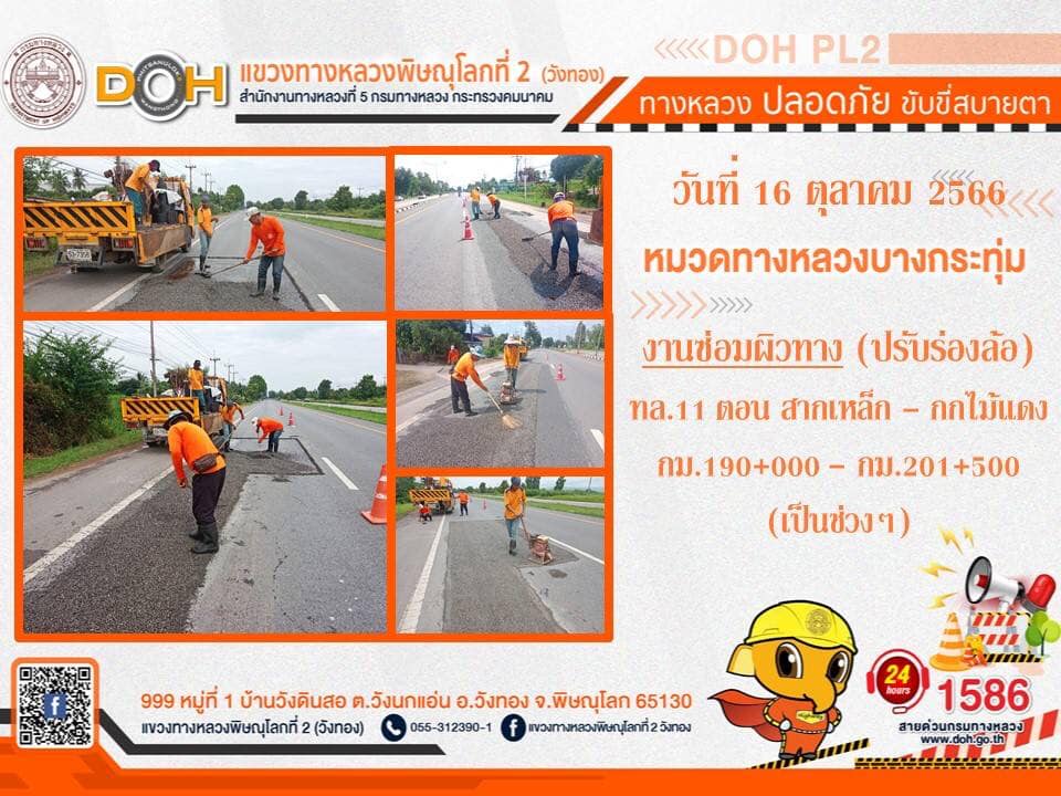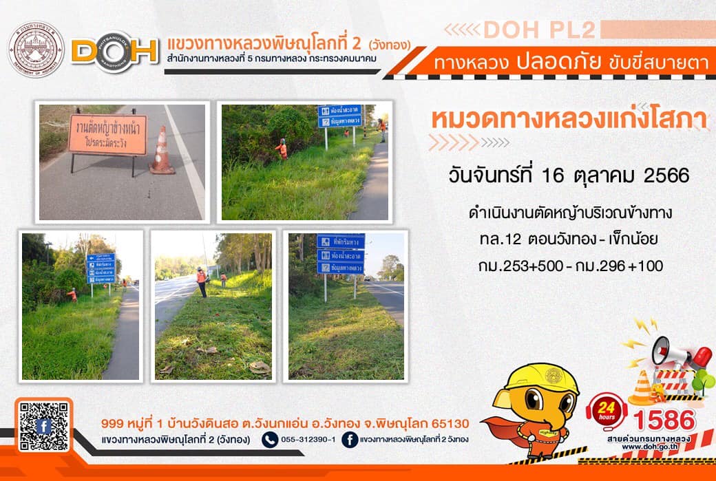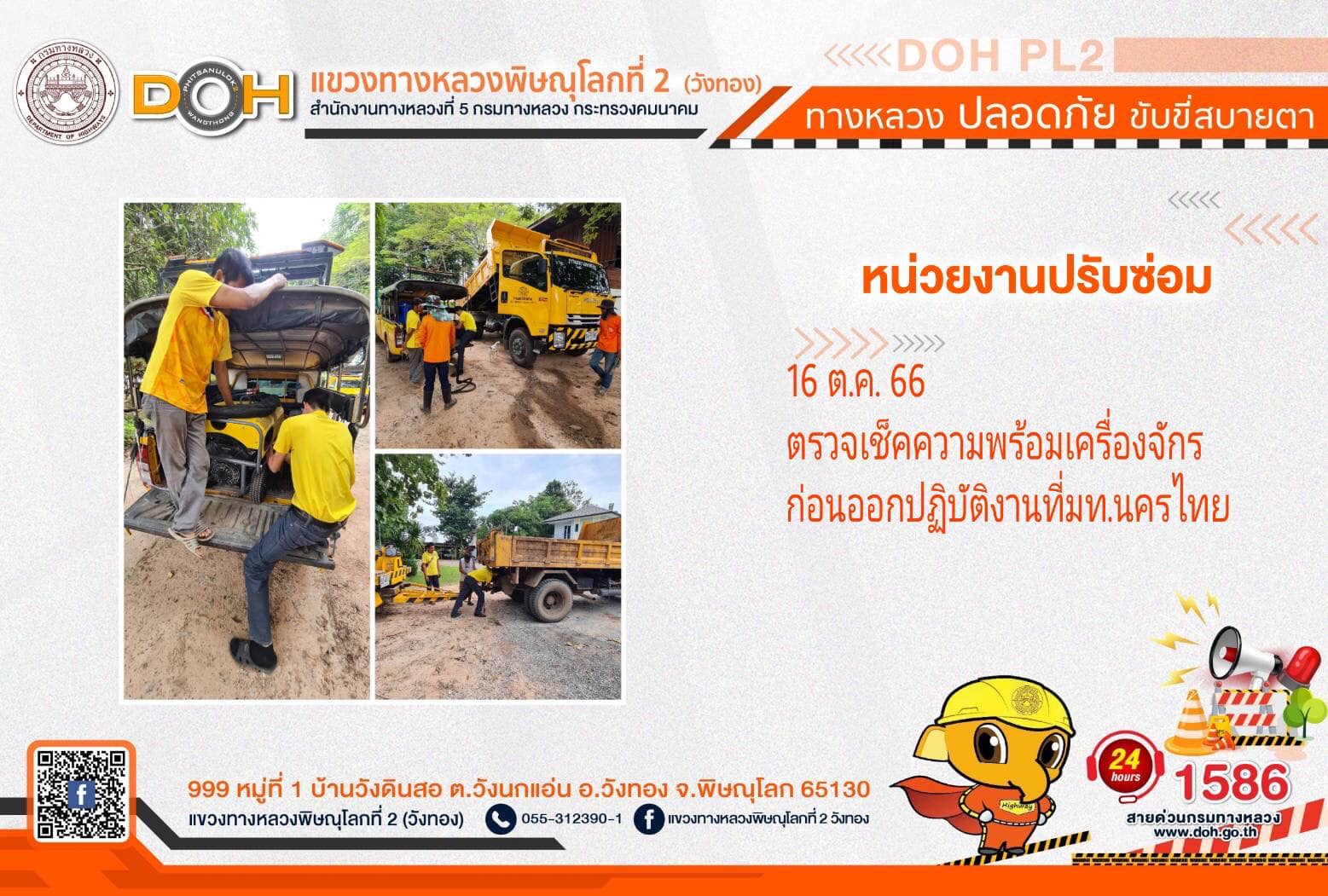 การปฏิบัติงานของ หมวดทางหลวง และ หน่วยงานในสังกัด เพื่ออำนวยความสะดวก และปลอดภัยให้กับประชาชนผู้ใช้เส้นทาง ประจำ วันจันทร์ที่ 16 ตุลาคม 2566