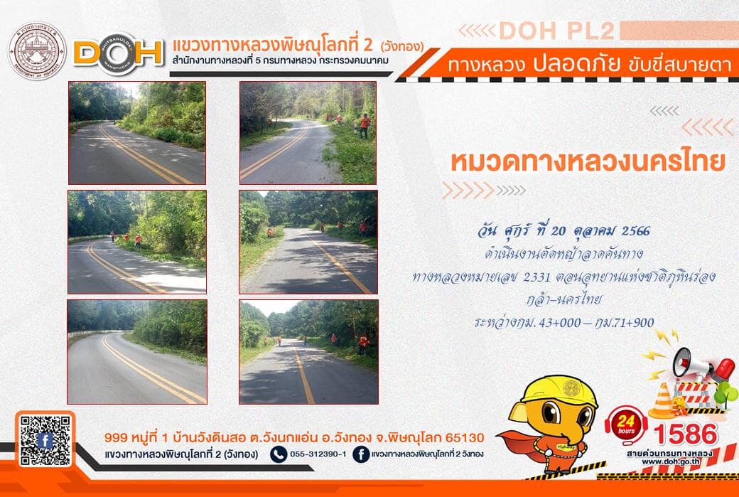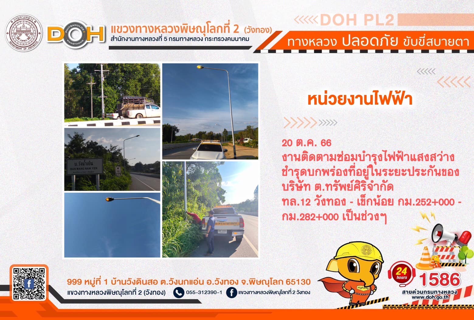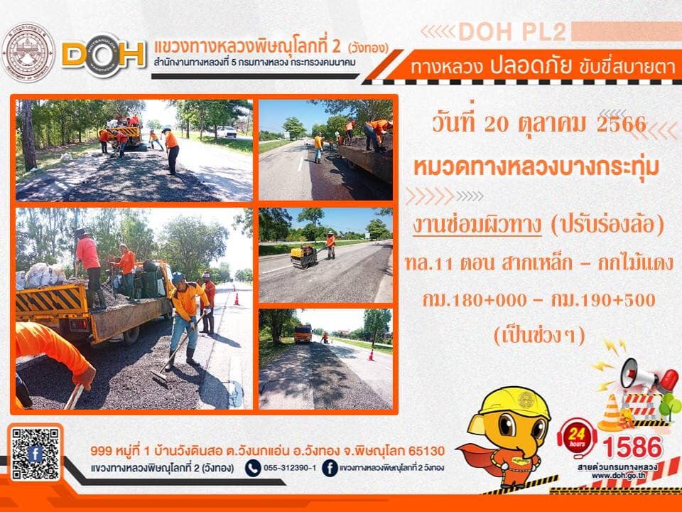 การปฏิบัติงานของ หมวดทางหลวง และ หน่วยงานในสังกัด เพื่ออำนวยความสะดวก และปลอดภัยให้กับประชาชนผู้ใช้เส้นทาง ประจำ วันศุกร์ที่ 20 ตุลาคม 2566