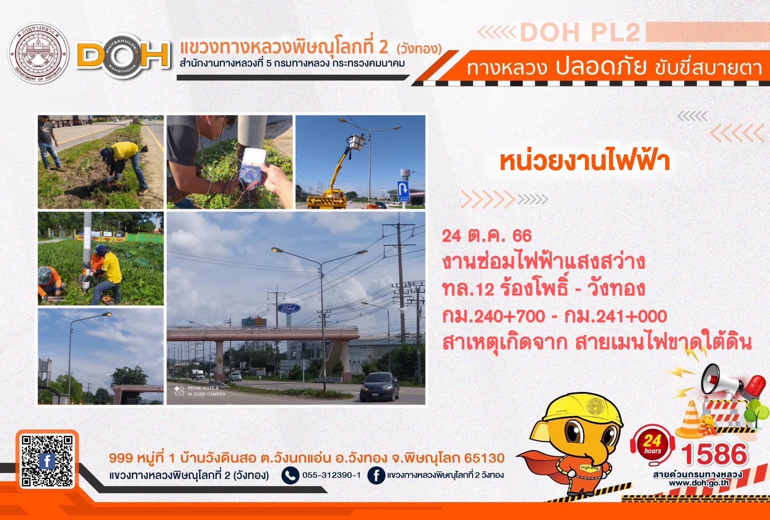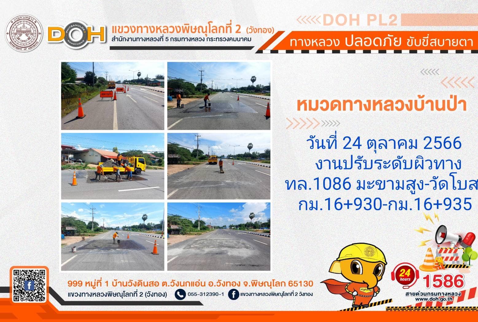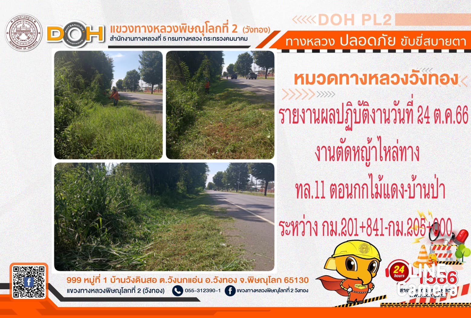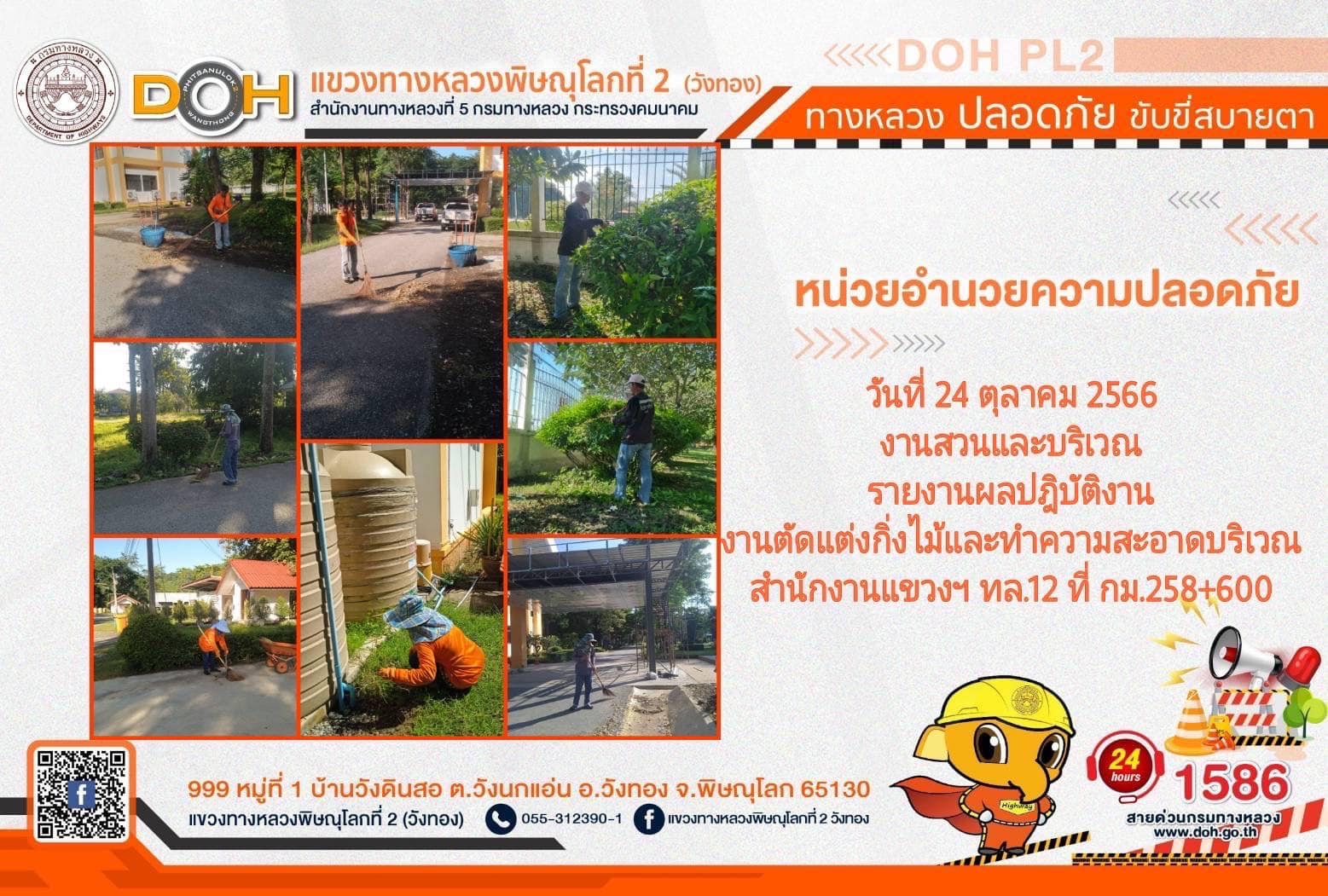 การปฏิบัติงานของ หมวดทางหลวง และ หน่วยงานในสังกัด เพื่ออำนวยความสะดวก และปลอดภัยให้กับประชาชนผู้ใช้เส้นทาง ประจำ วันอังคารที่ 24 ตุลาคม 2566