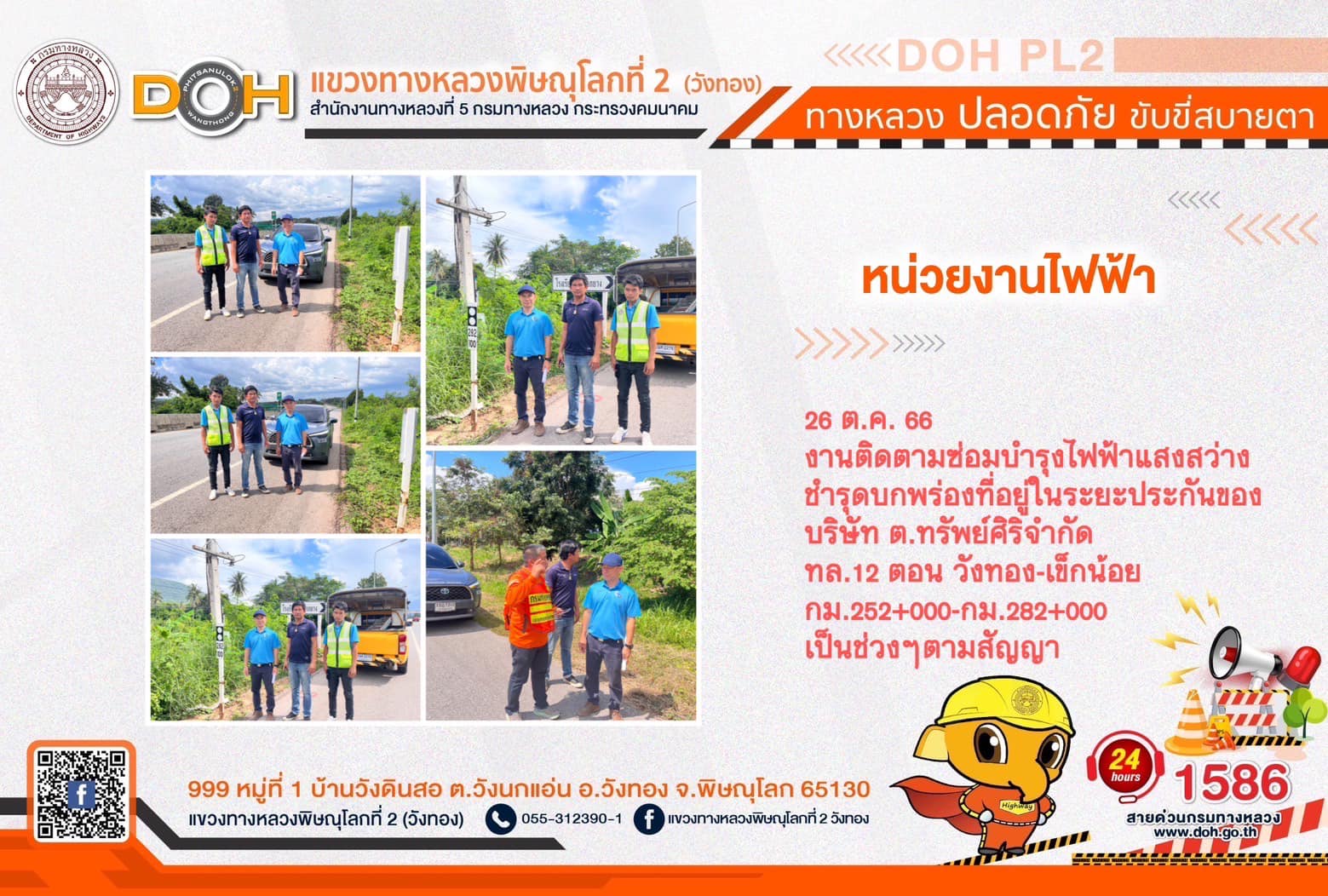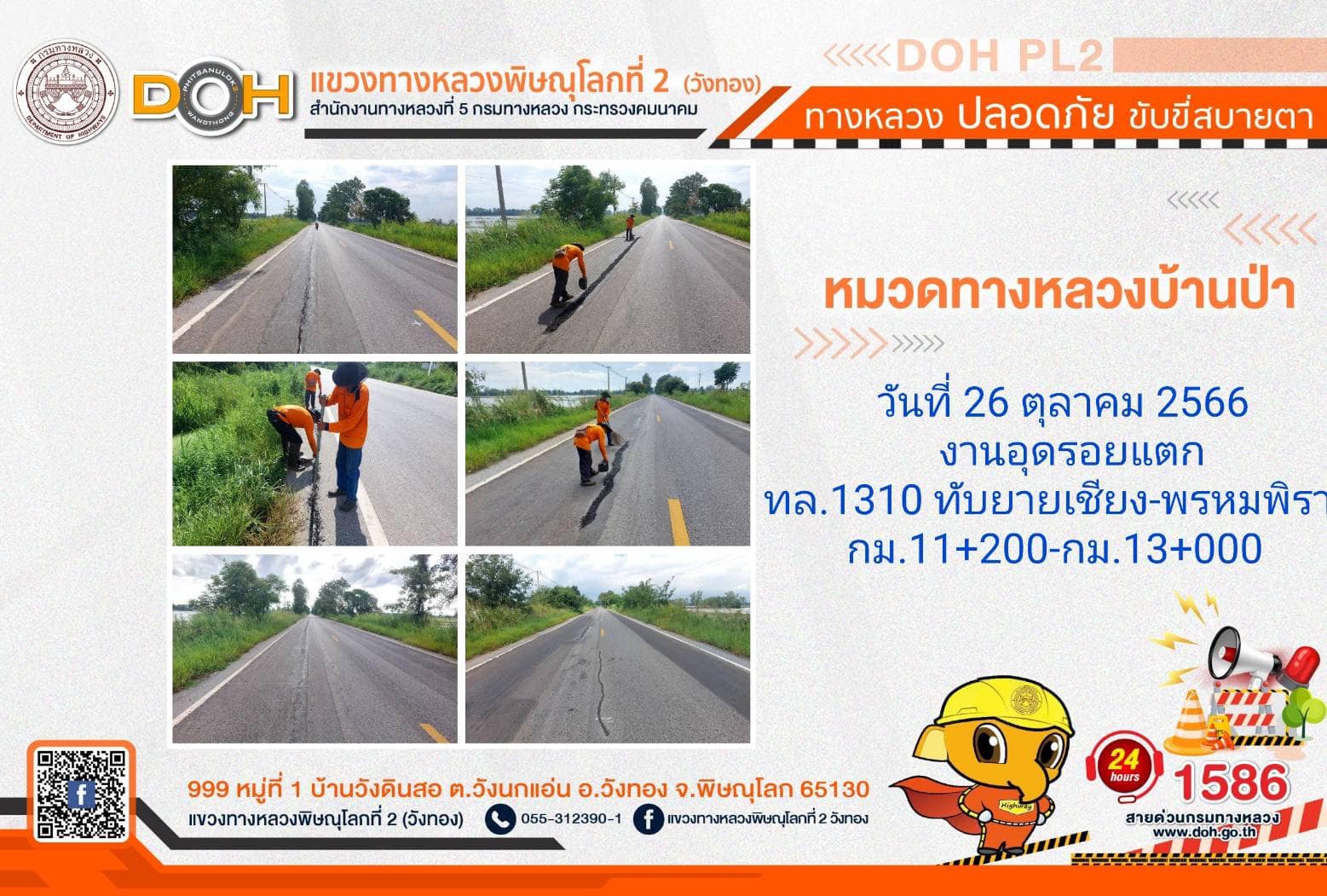 การปฏิบัติงานของ หมวดทางหลวง และ หน่วยงานในสังกัด เพื่ออำนวยความสะดวก และปลอดภัยให้กับประชาชนผู้ใช้เส้นทาง ประจำ วันพฤหัสบดีที่ 26 ตุลาคม 2566