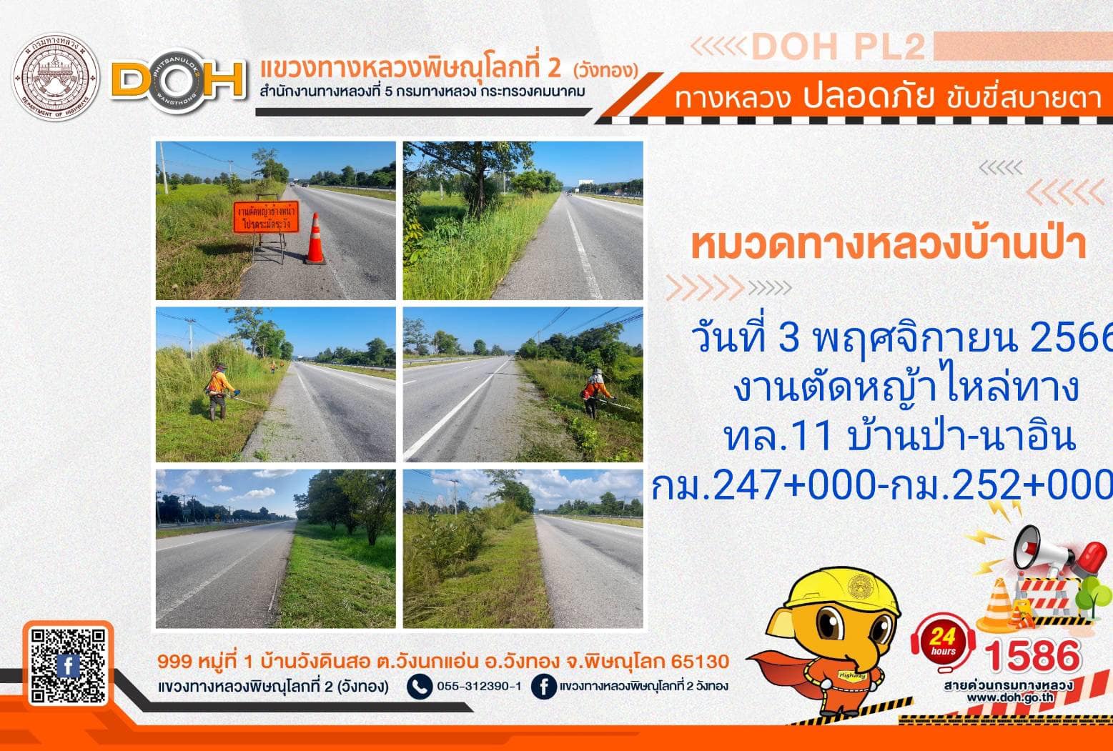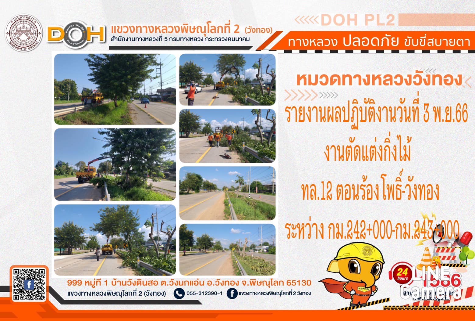 การปฏิบัติงานของ หมวดทางหลวง และ หน่วยงานในสังกัด เพื่ออำนวยความสะดวก และปลอดภัยให้กับประชาชนผู้ใช้เส้นทาง ประจำ วันศุกร์ที่ 3 พฤศจิกายน 2566