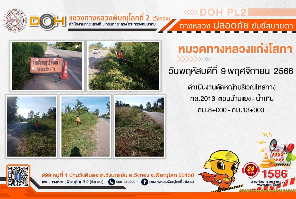 การปฏิบัติงานของ หมวดทางหลวง และ หน่วยงานในสังกัด เพื่ออำนวยความสะดวก และปลอดภัยให้กับประชาชนผู้ใช้เส้นทาง ประจำ วันพฤหัสบดีที่ 9 พฤศจิกายน 2566