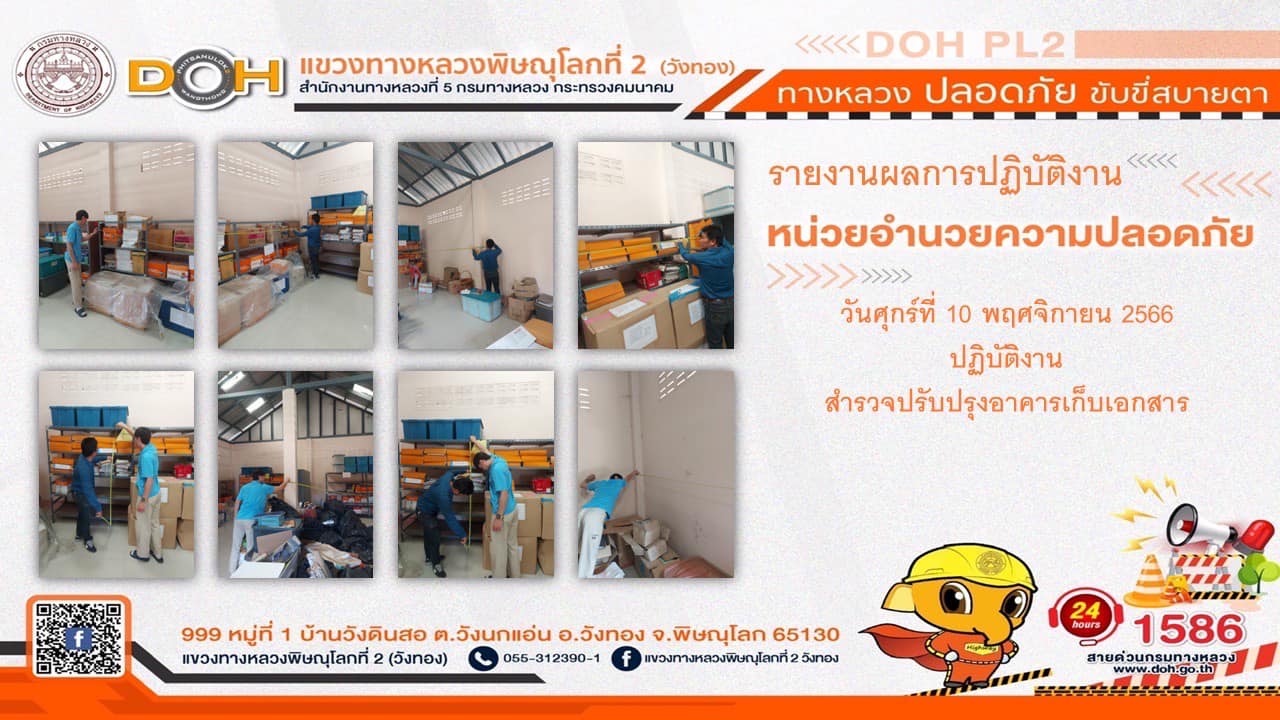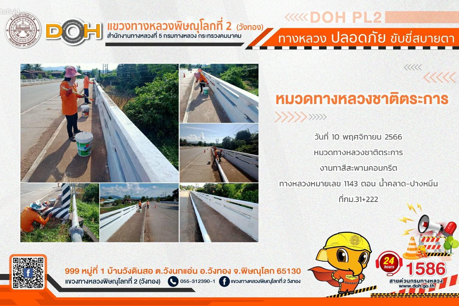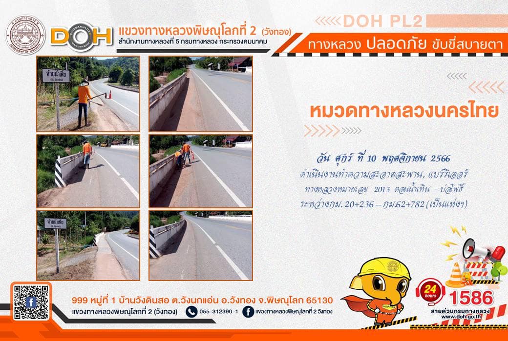 การปฏิบัติงานของ หมวดทางหลวง และ หน่วยงานในสังกัด เพื่ออำนวยความสะดวก และปลอดภัยให้กับประชาชนผู้ใช้เส้นทาง ประจำ วันศุกร์ที่ 10 พฤศจิกายน 2566