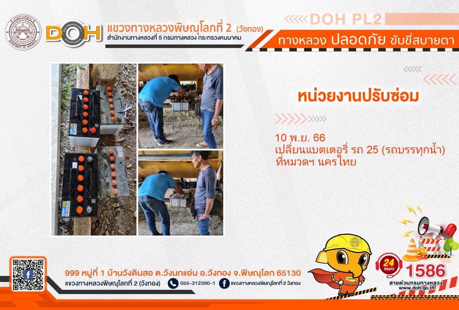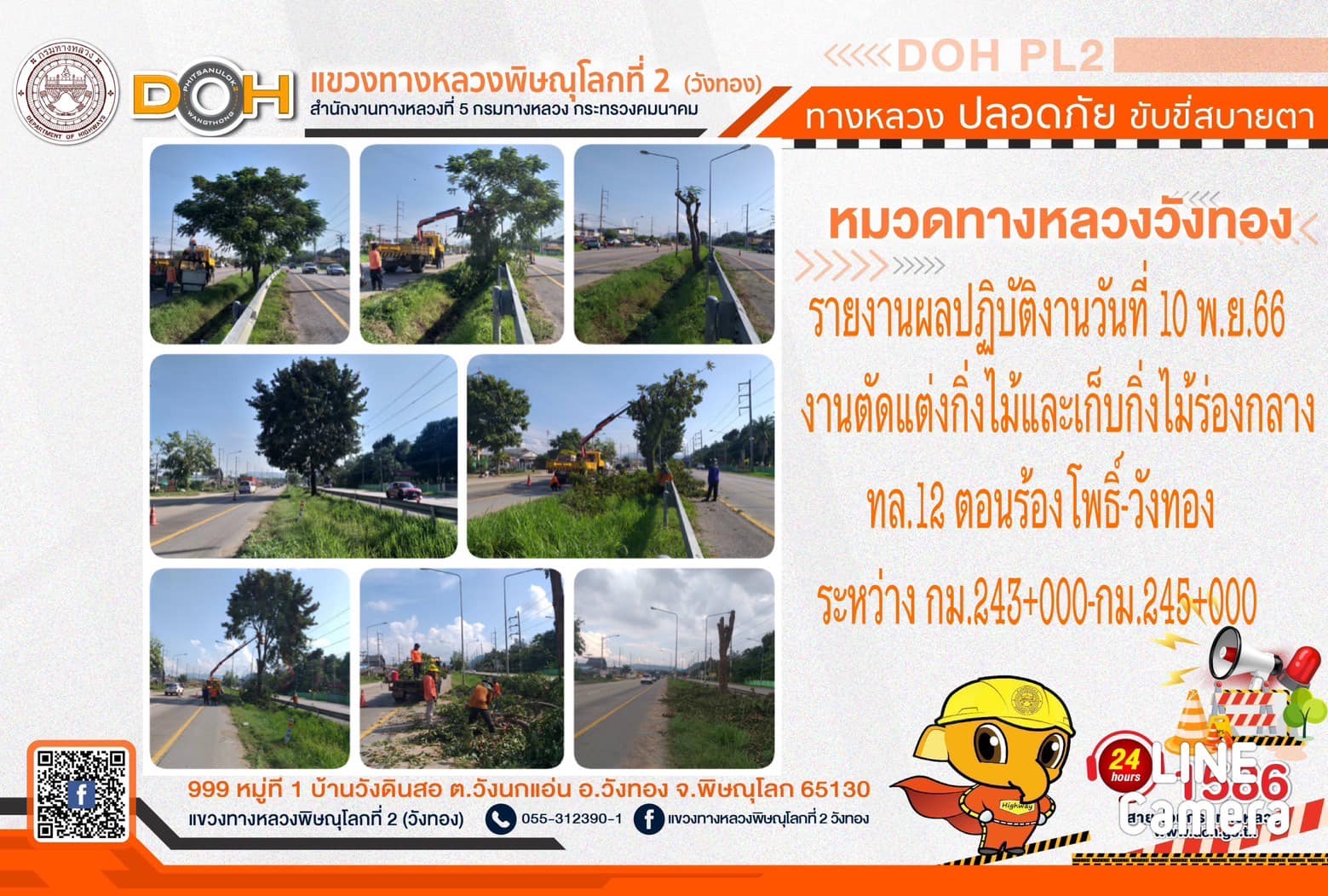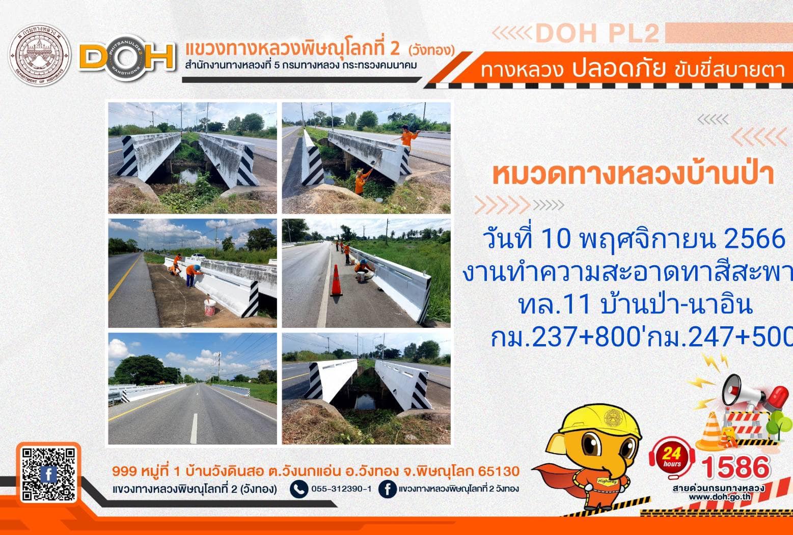 การปฏิบัติงานของ หมวดทางหลวง และ หน่วยงานในสังกัด เพื่ออำนวยความสะดวก และปลอดภัยให้กับประชาชนผู้ใช้เส้นทาง ประจำ วันศุกร์ที่ 10 พฤศจิกายน 2566