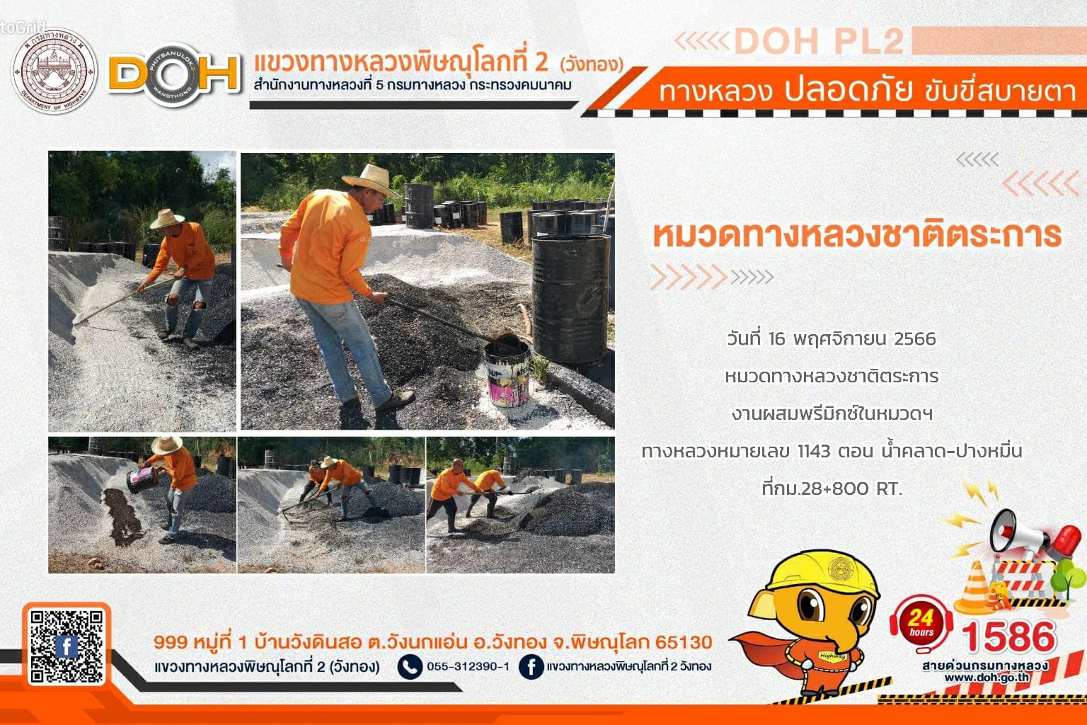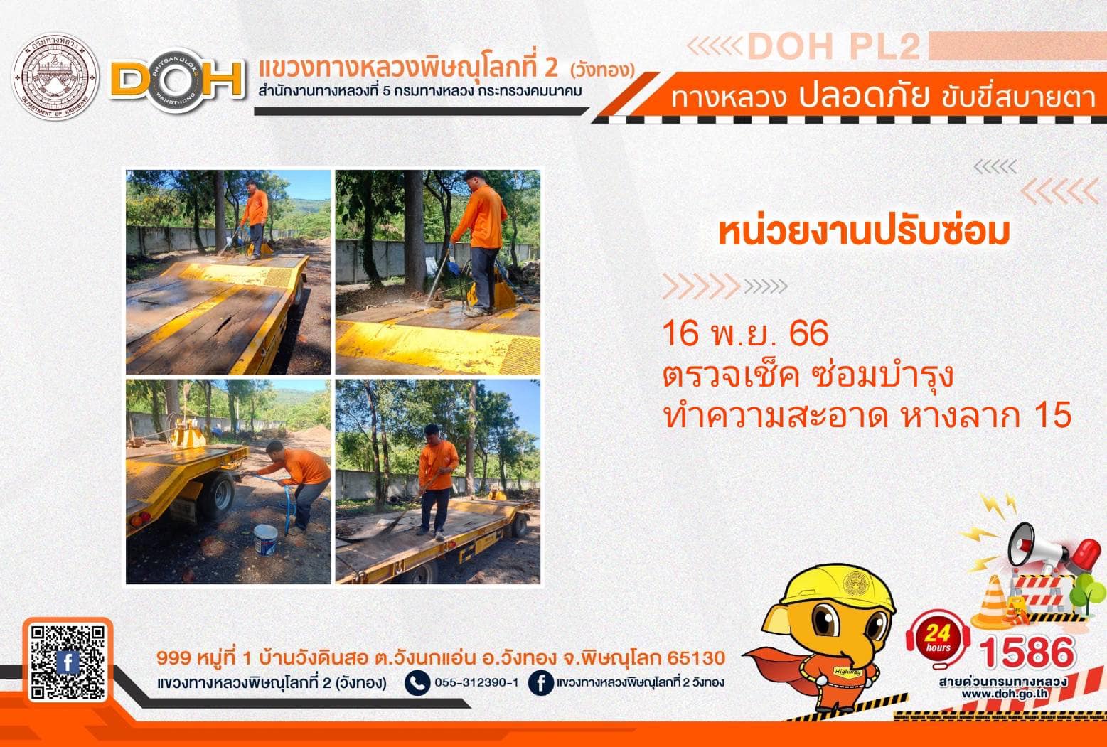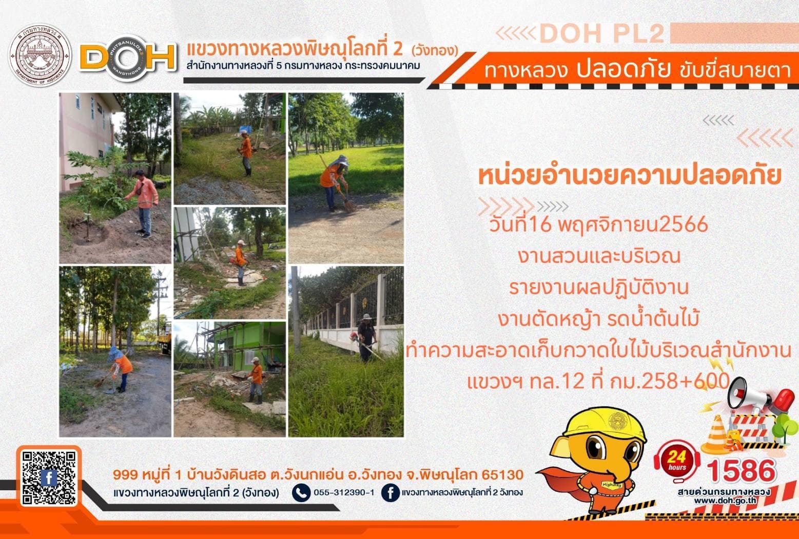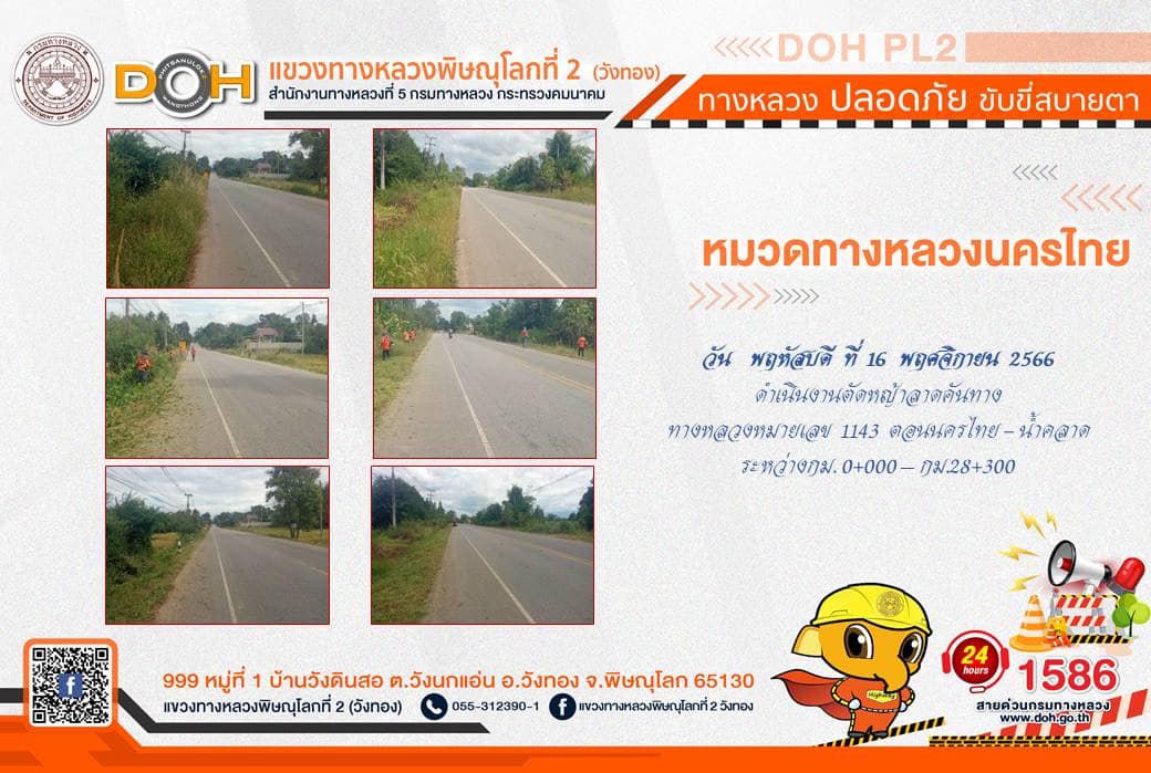 การปฏิบัติงานของ หมวดทางหลวง และ หน่วยงานในสังกัด เพื่ออำนวยความสะดวก และปลอดภัยให้กับประชาชนผู้ใช้เส้นทาง ประจำ วันพฤหัสบดีที่ 16 พฤศจิกายน 2566