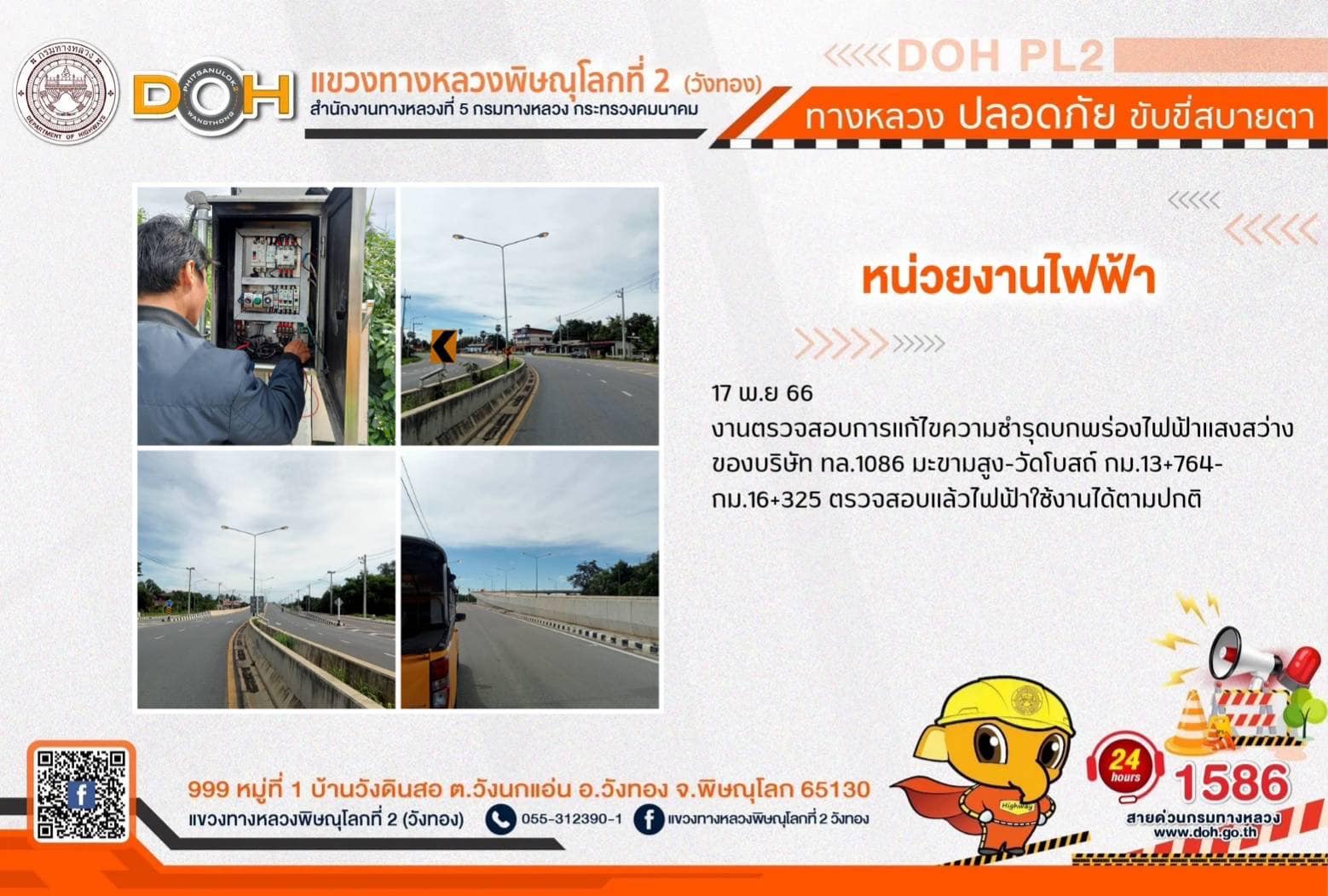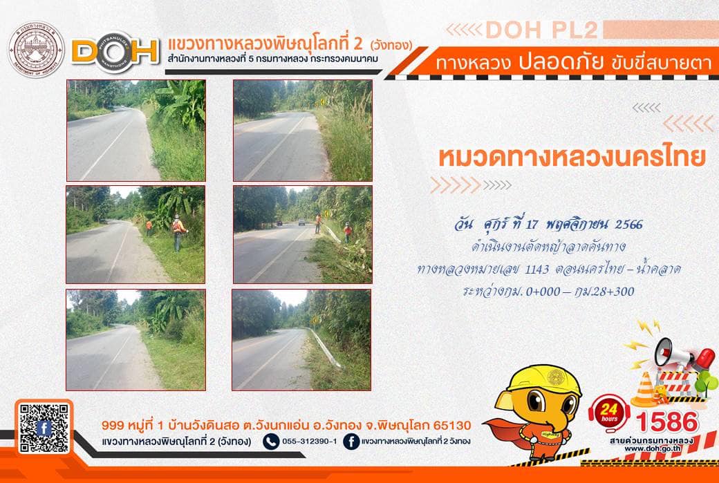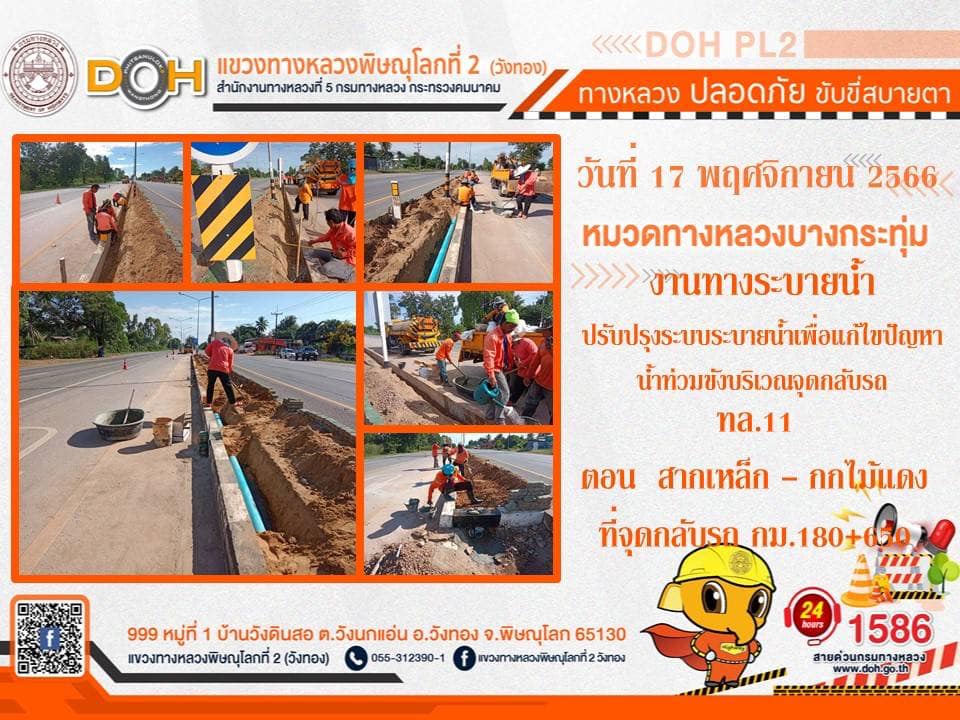 การปฏิบัติงานของ หมวดทางหลวง และ หน่วยงานในสังกัด เพื่ออำนวยความสะดวก และปลอดภัยให้กับประชาชนผู้ใช้เส้นทาง ประจำ วันศุกร์ที่ 17 พฤศจิกายน 2566