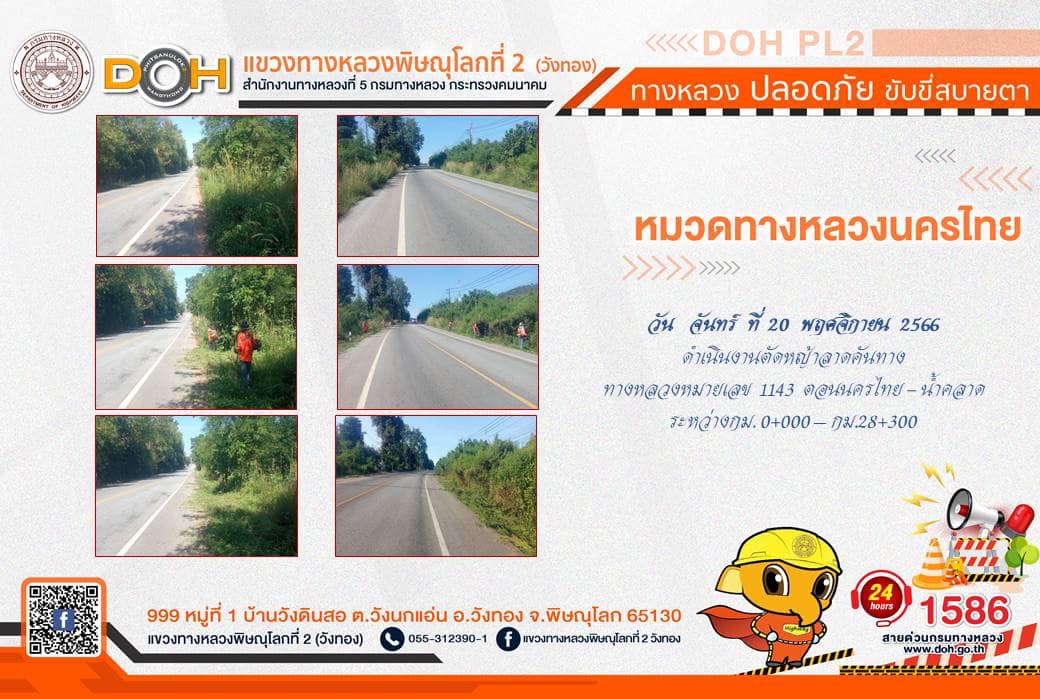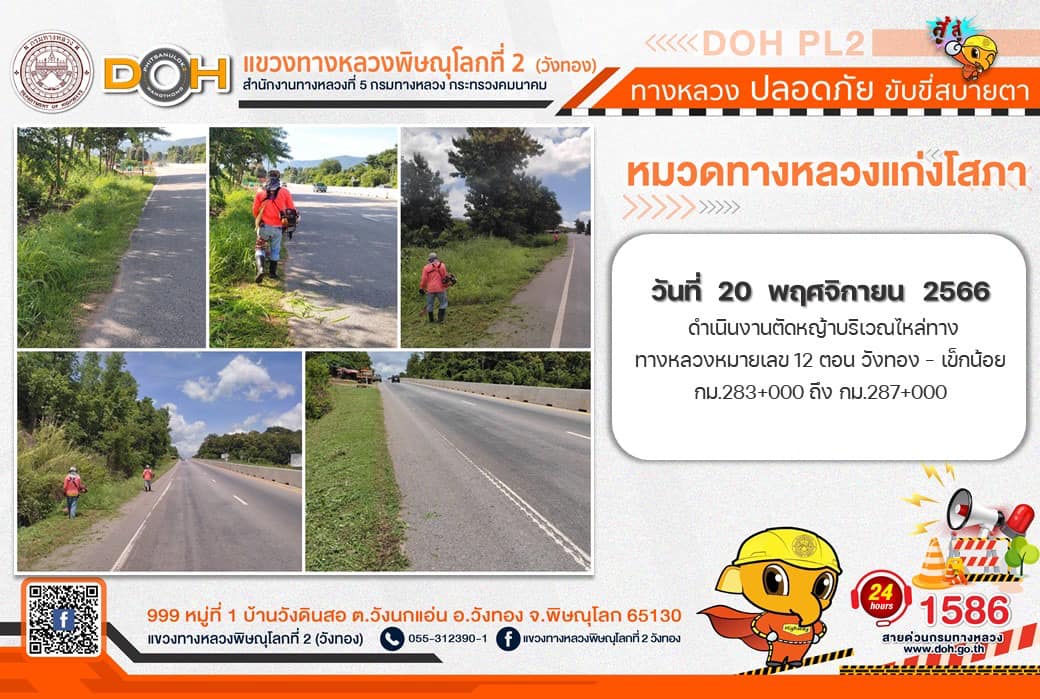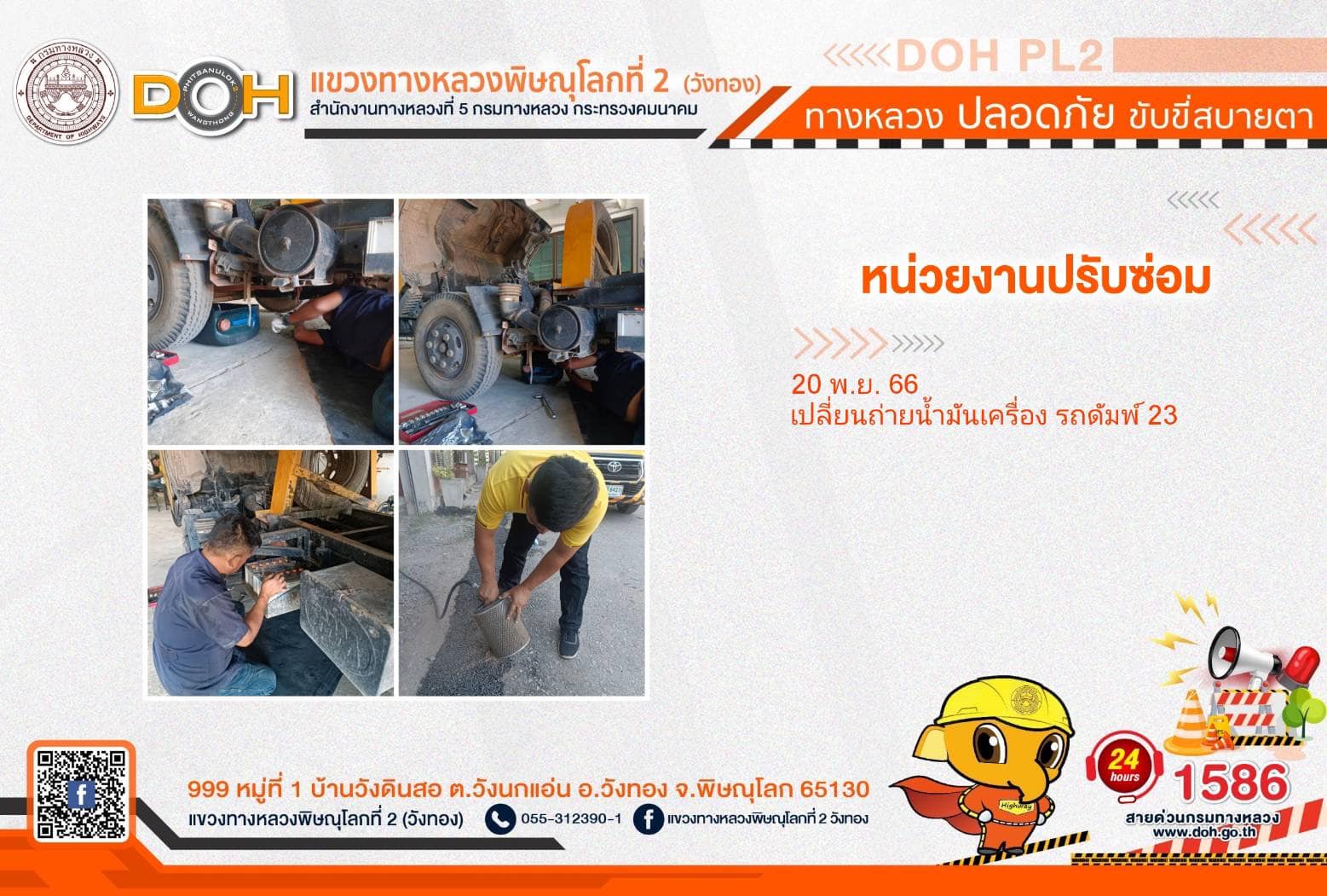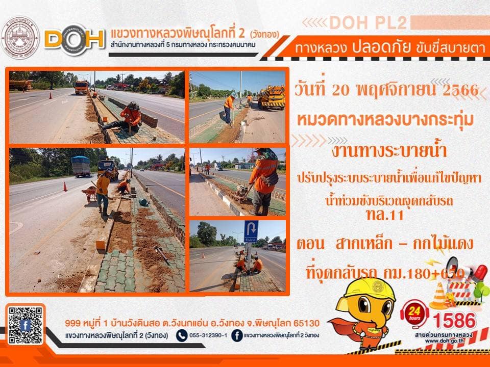 การปฏิบัติงานของ หมวดทางหลวง และ หน่วยงานในสังกัด เพื่ออำนวยความสะดวก และปลอดภัยให้กับประชาชนผู้ใช้เส้นทาง ประจำ วันจันทร์ที่ 20 พฤศจิกายน 2566