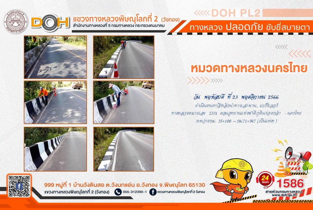 การปฏิบัติงานของ หมวดทางหลวง และ หน่วยงานในสังกัด เพื่ออำนวยความสะดวก และปลอดภัยให้กับประชาชนผู้ใช้เส้นทาง ประจำ วันพฤหัสบดีที่ 23 พฤศจิกายน 2566