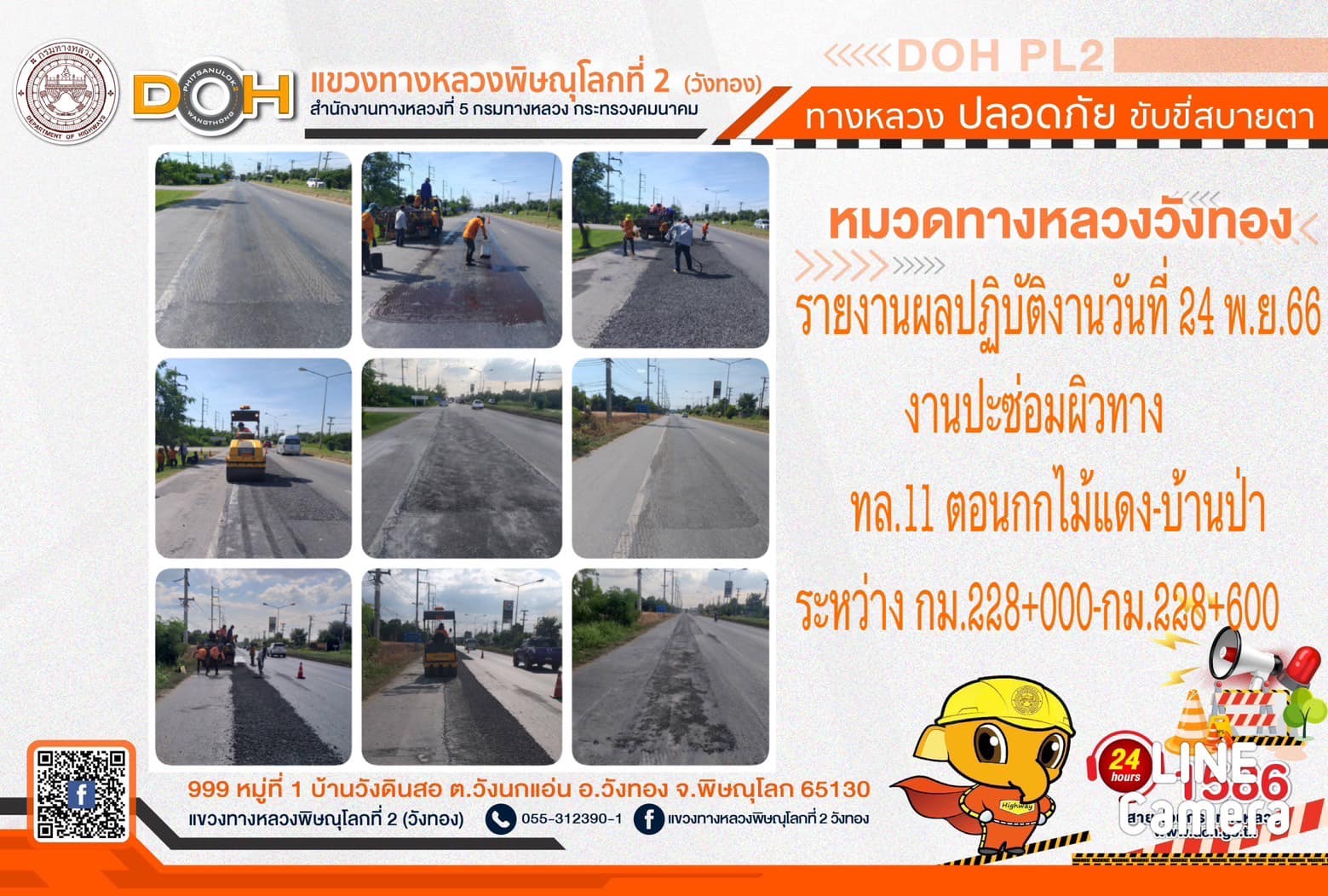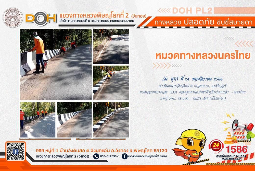 การปฏิบัติงานของ หมวดทางหลวง และ หน่วยงานในสังกัด เพื่ออำนวยความสะดวก และปลอดภัยให้กับประชาชนผู้ใช้เส้นทาง ประจำ วันศุกร์ที่ 24 พฤศจิกายน 2566