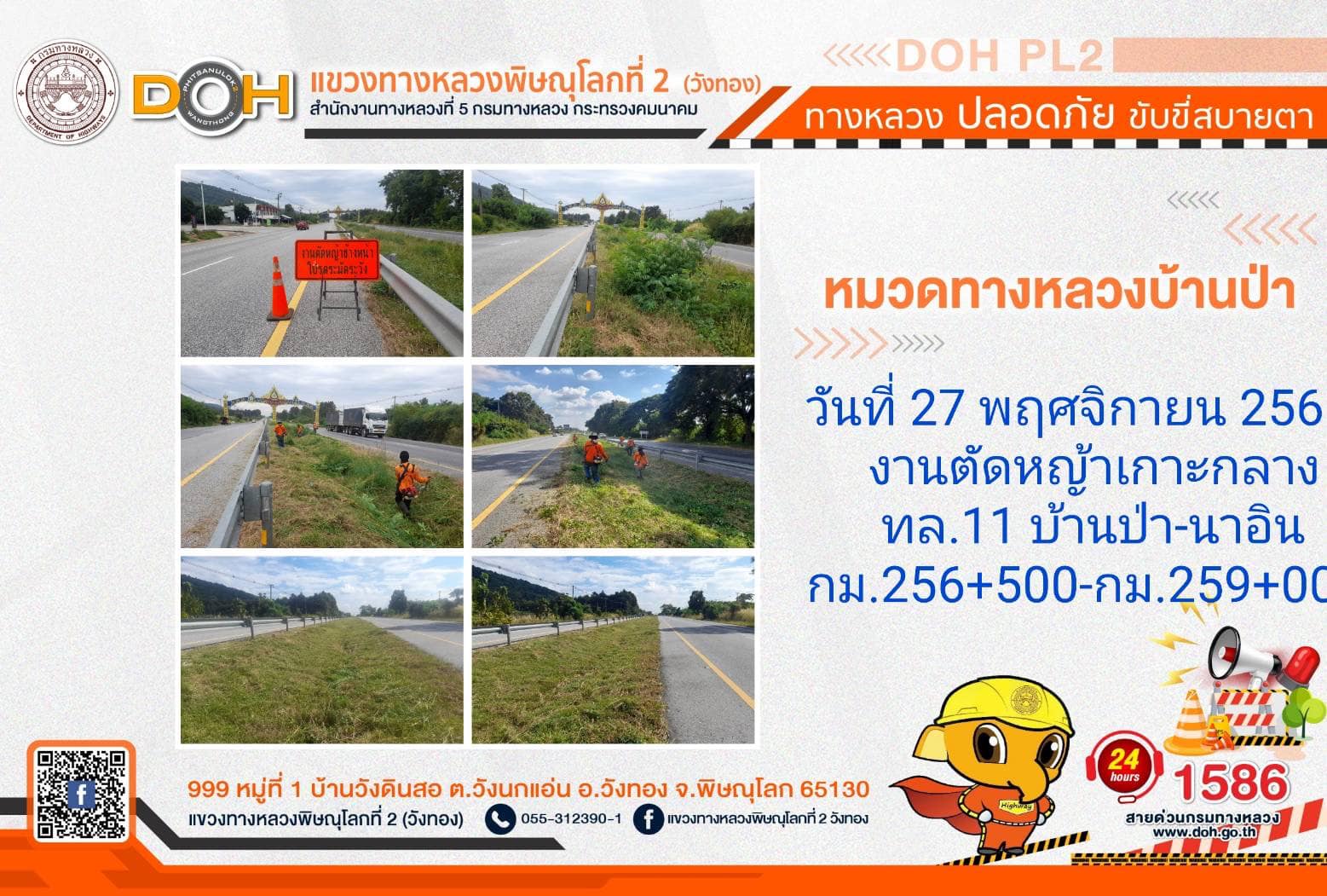การปฏิบัติงานของ หมวดทางหลวง และ หน่วยงานในสังกัด เพื่ออำนวยความสะดวก และปลอดภัยให้กับประชาชนผู้ใช้เส้นทาง ประจำ วันจันทร์ที่ 27 พฤศจิกายน 2566