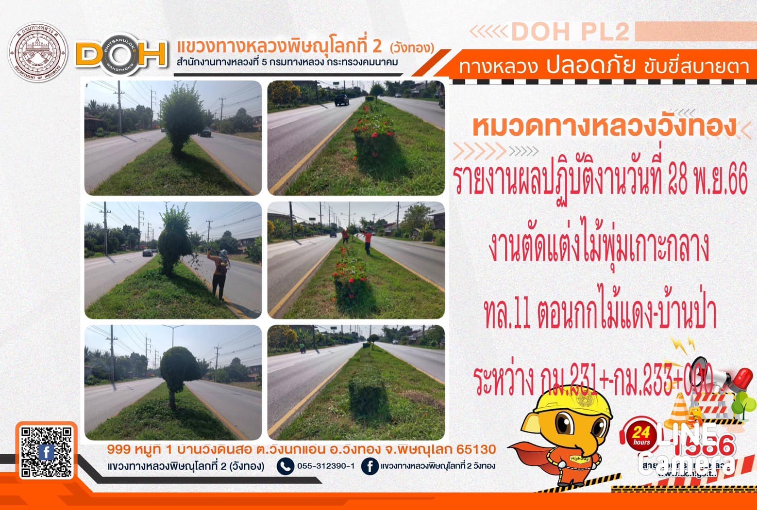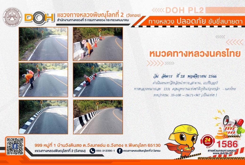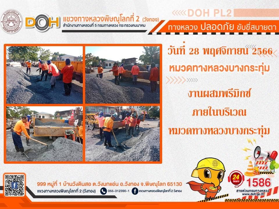 การปฏิบัติงานของ หมวดทางหลวง และ หน่วยงานในสังกัด เพื่ออำนวยความสะดวก และปลอดภัยให้กับประชาชนผู้ใช้เส้นทาง ประจำ วันอังคารที่ 28 พฤศจิกายน 2566