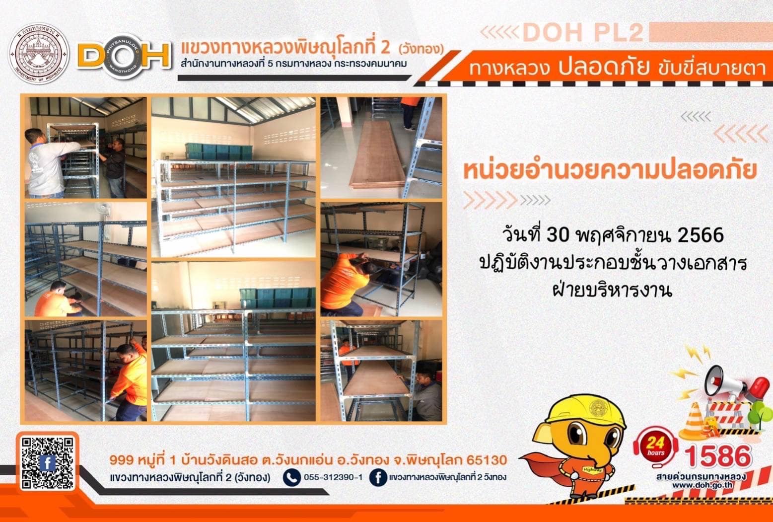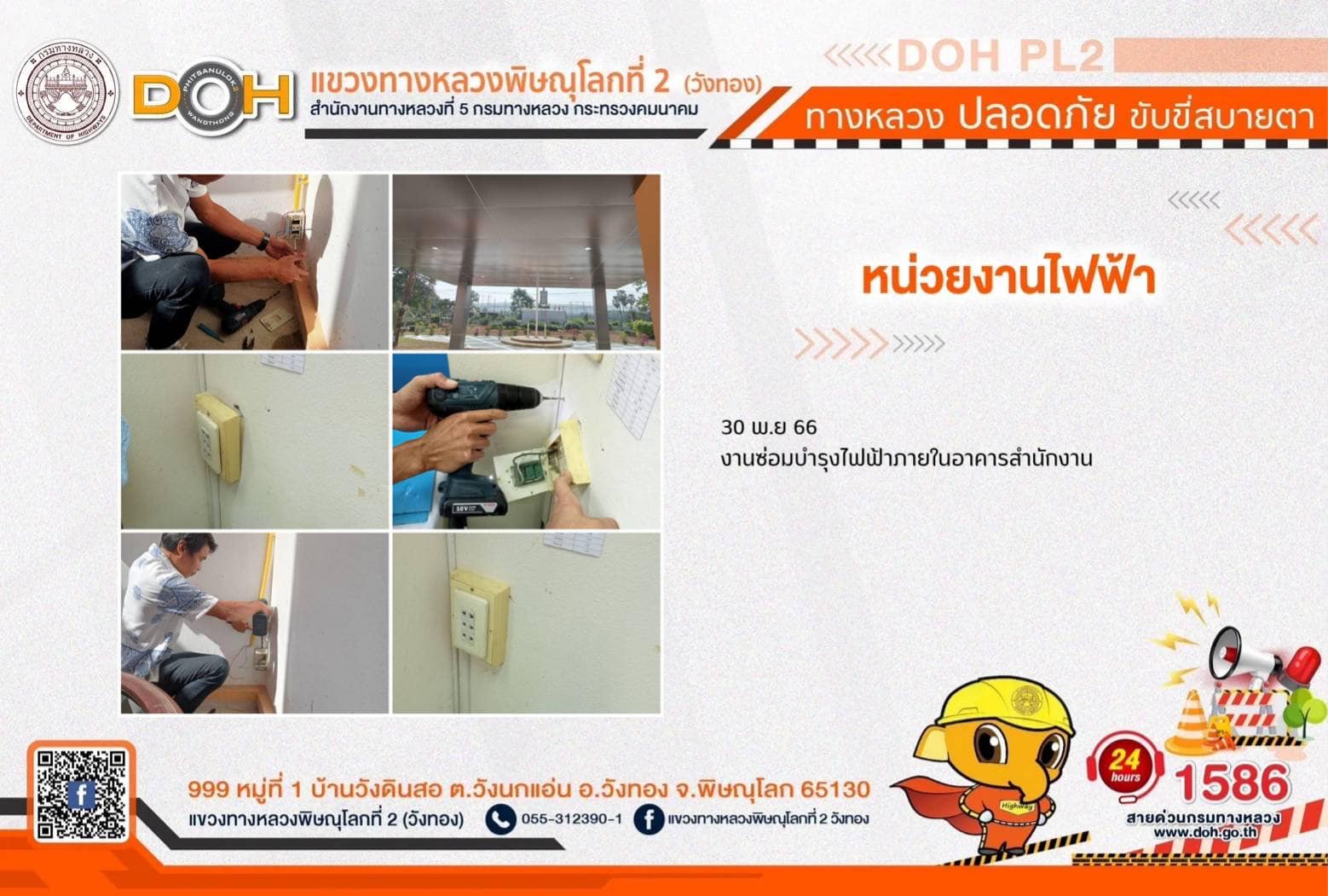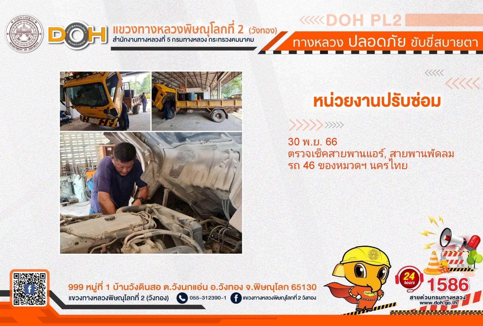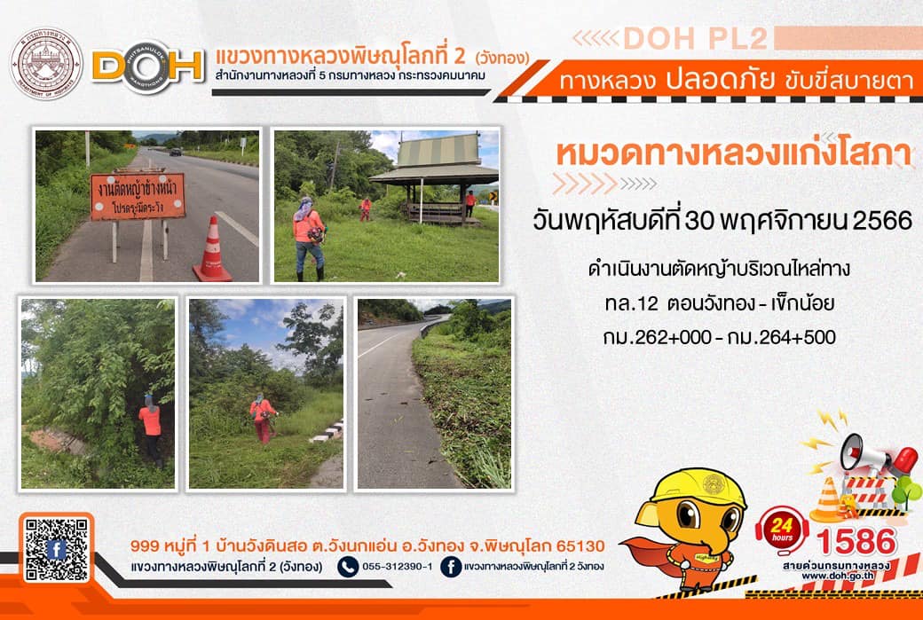 การปฏิบัติงานของ หมวดทางหลวง และ หน่วยงานในสังกัด เพื่ออำนวยความสะดวก และปลอดภัยให้กับประชาชนผู้ใช้เส้นทาง ประจำ วันพฤหัสบดีที่ 30 พฤศจิกายน 2566