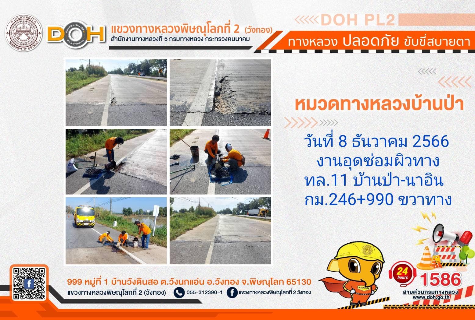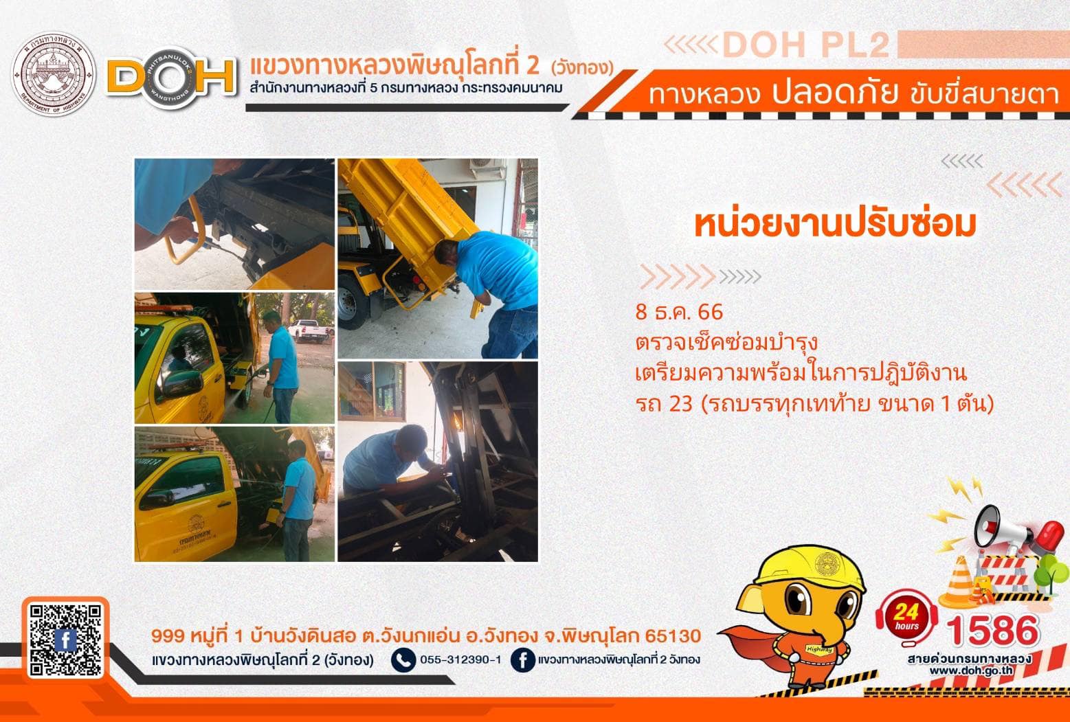การปฏิบัติงานของ หมวดทางหลวง และ หน่วยงานในสังกัด เพื่ออำนวยความสะดวก และปลอดภัยให้กับประชาชนผู้ใช้เส้นทาง ประจำ วันศุกร์ที่ 8 ธันวาคม 2566