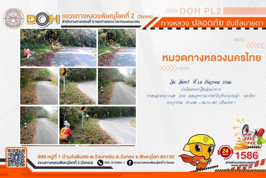 การปฏิบัติงานของ หมวดทางหลวง และ หน่วยงานในสังกัด เพื่ออำนวยความสะดวก และปลอดภัยให้กับประชาชนผู้ใช้เส้นทาง ประจำ วันจันทร์ที่ 18 ธันวาคม 2566