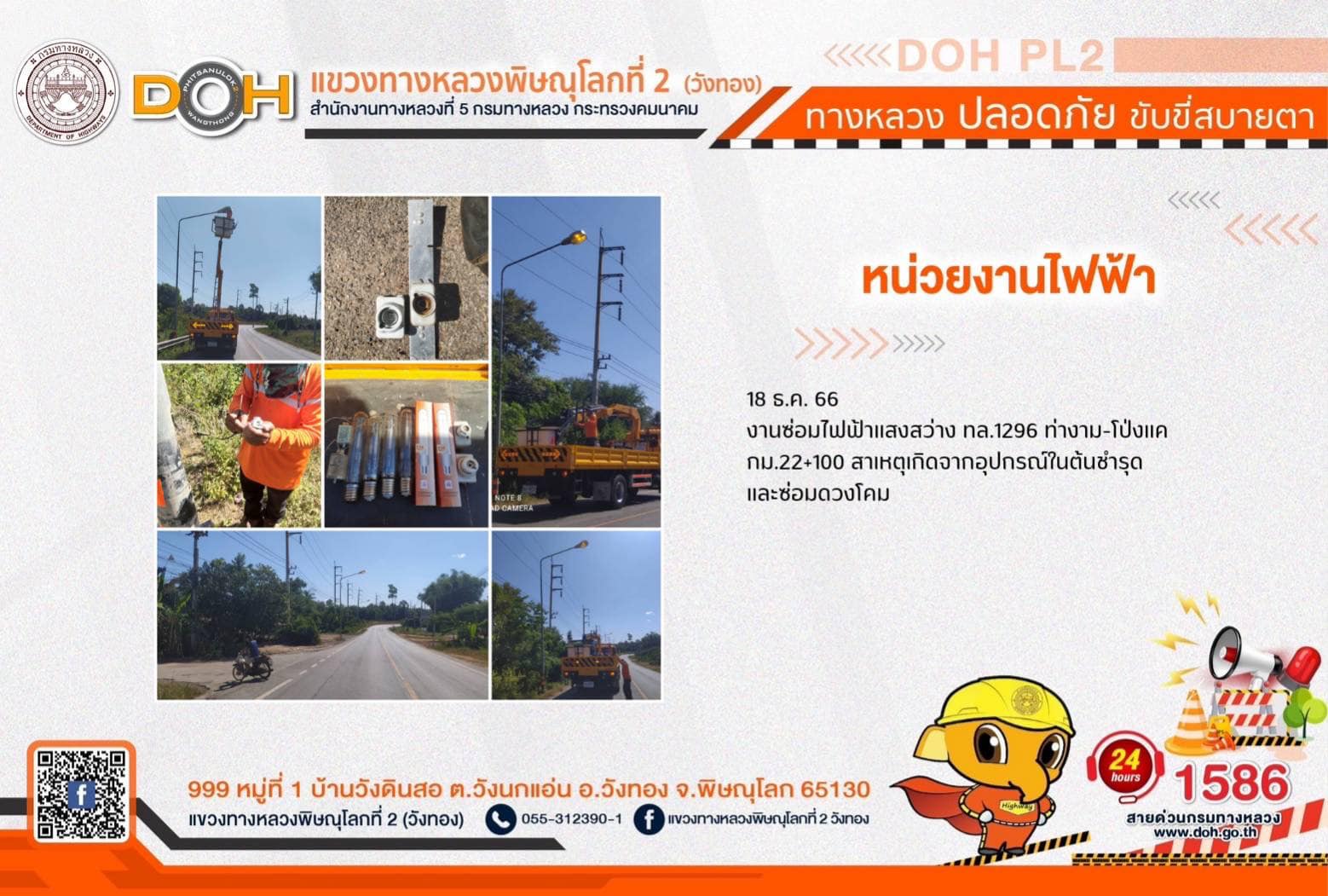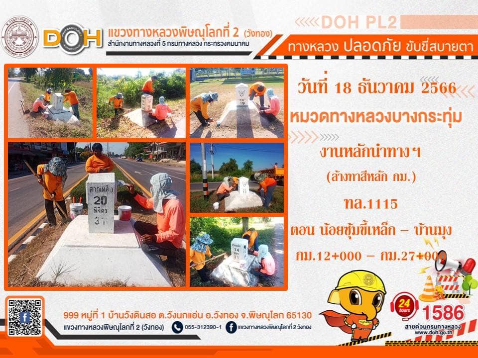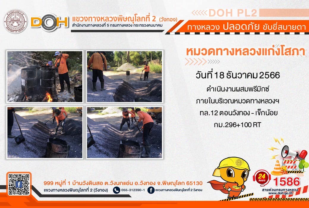 การปฏิบัติงานของ หมวดทางหลวง และ หน่วยงานในสังกัด เพื่ออำนวยความสะดวก และปลอดภัยให้กับประชาชนผู้ใช้เส้นทาง ประจำ วันจันทร์ที่ 18 ธันวาคม 2566