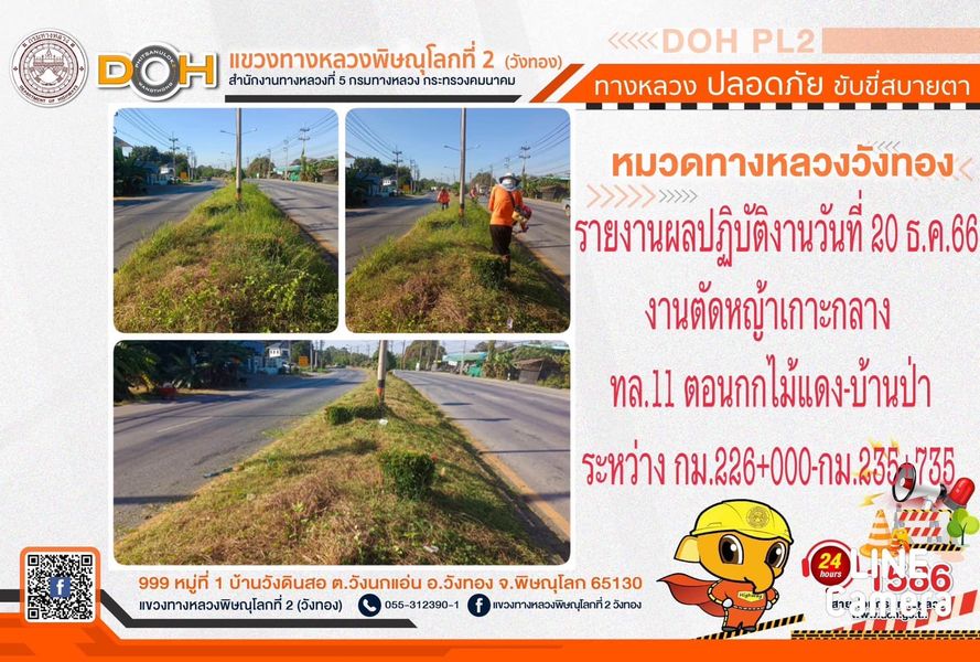 การปฏิบัติงานของ หมวดทางหลวง และ หน่วยงานในสังกัด เพื่ออำนวยความสะดวก และปลอดภัยให้กับประชาชนผู้ใช้เส้นทาง ประจำ วันพุธที่ 20 ธันวาคม 2566