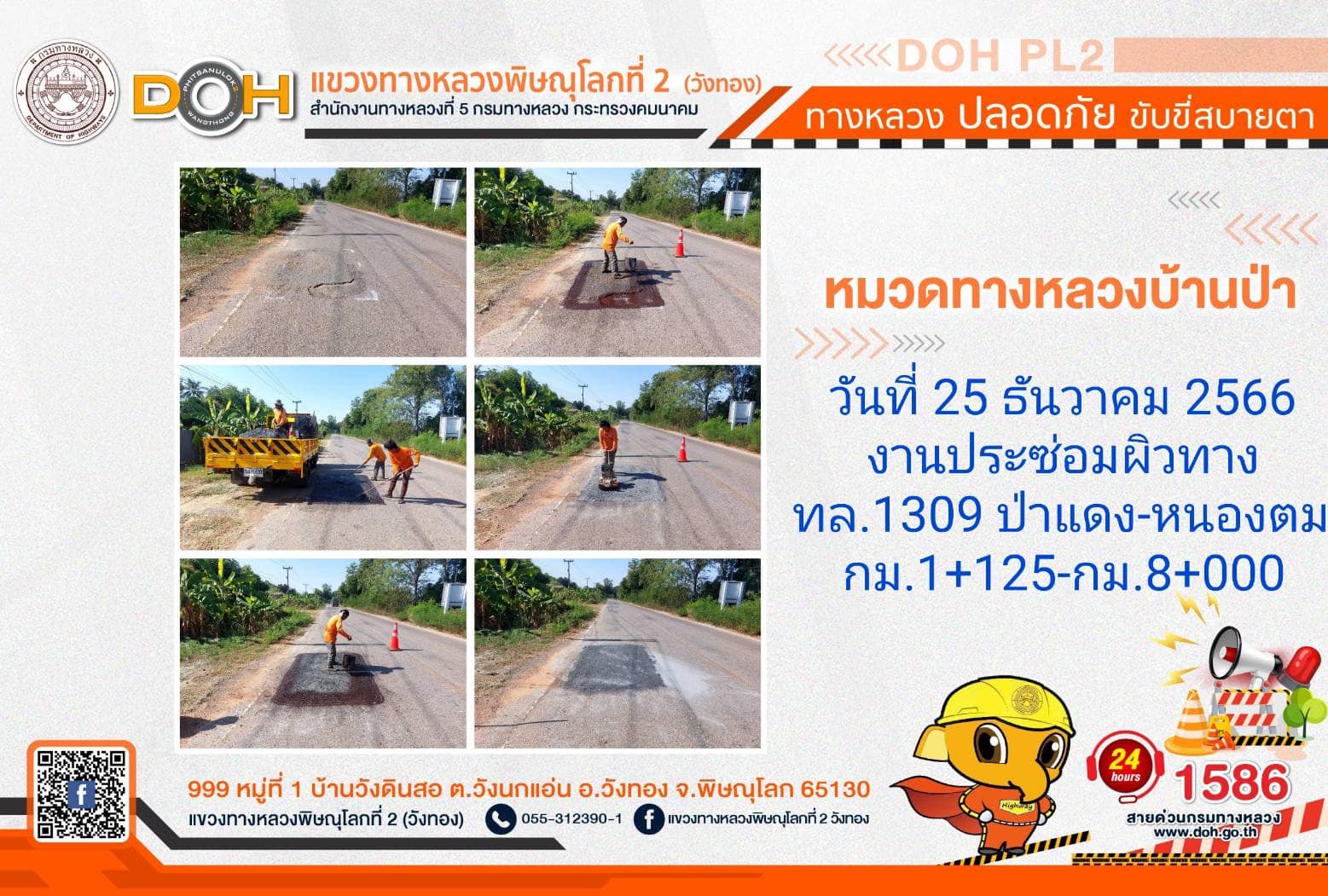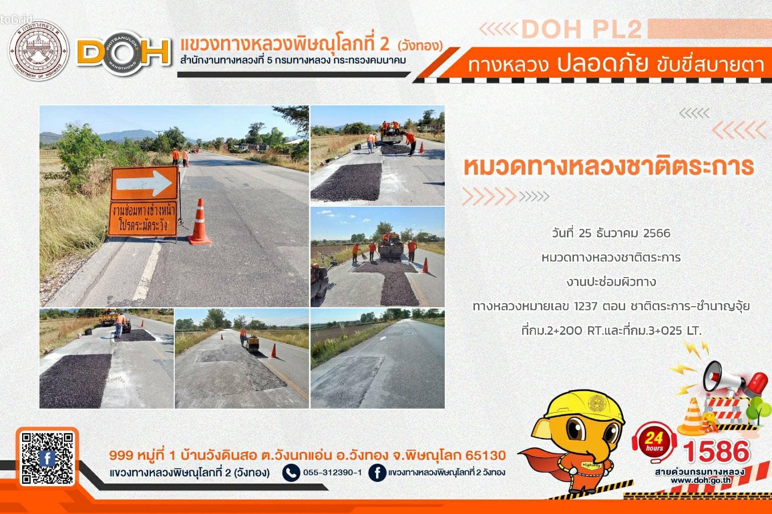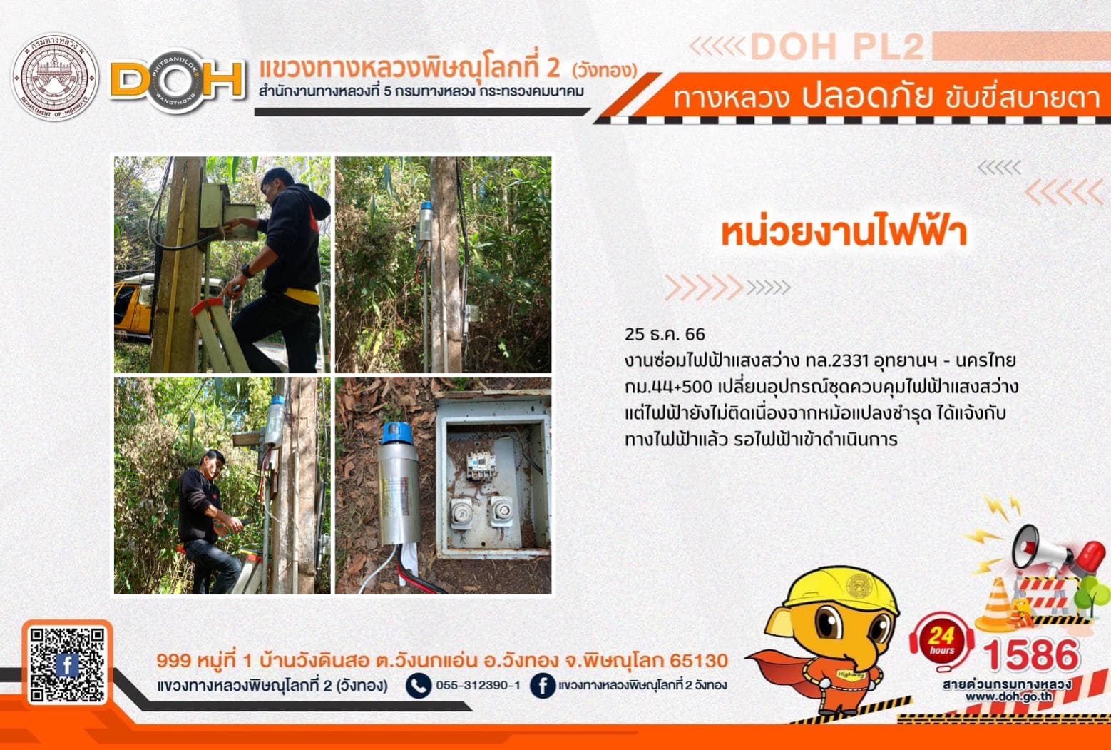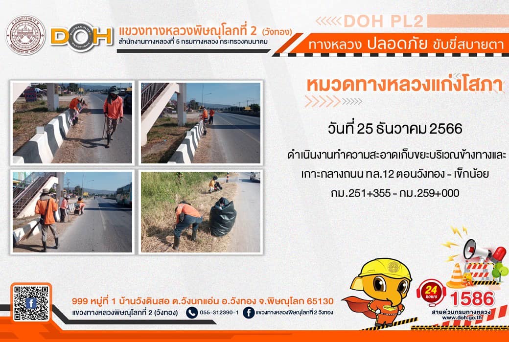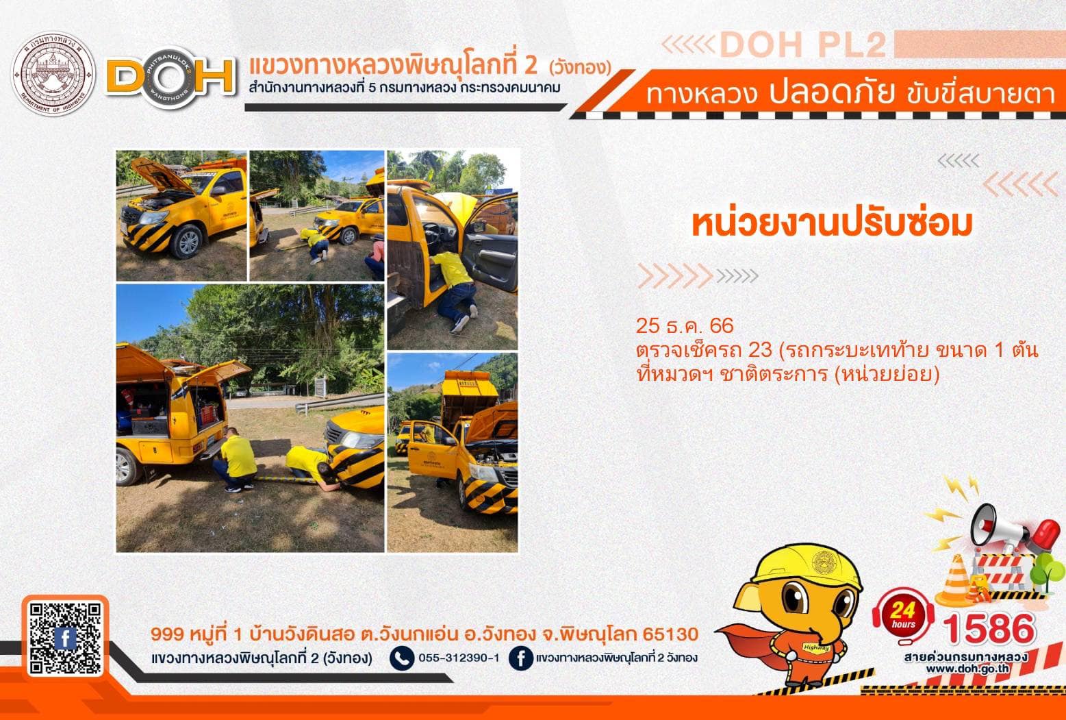 การปฏิบัติงานของ หมวดทางหลวง และ หน่วยงานในสังกัด เพื่ออำนวยความสะดวก และปลอดภัยให้กับประชาชนผู้ใช้เส้นทาง ประจำ วันจันทร์ที่ 25 ธันวาคม 2566