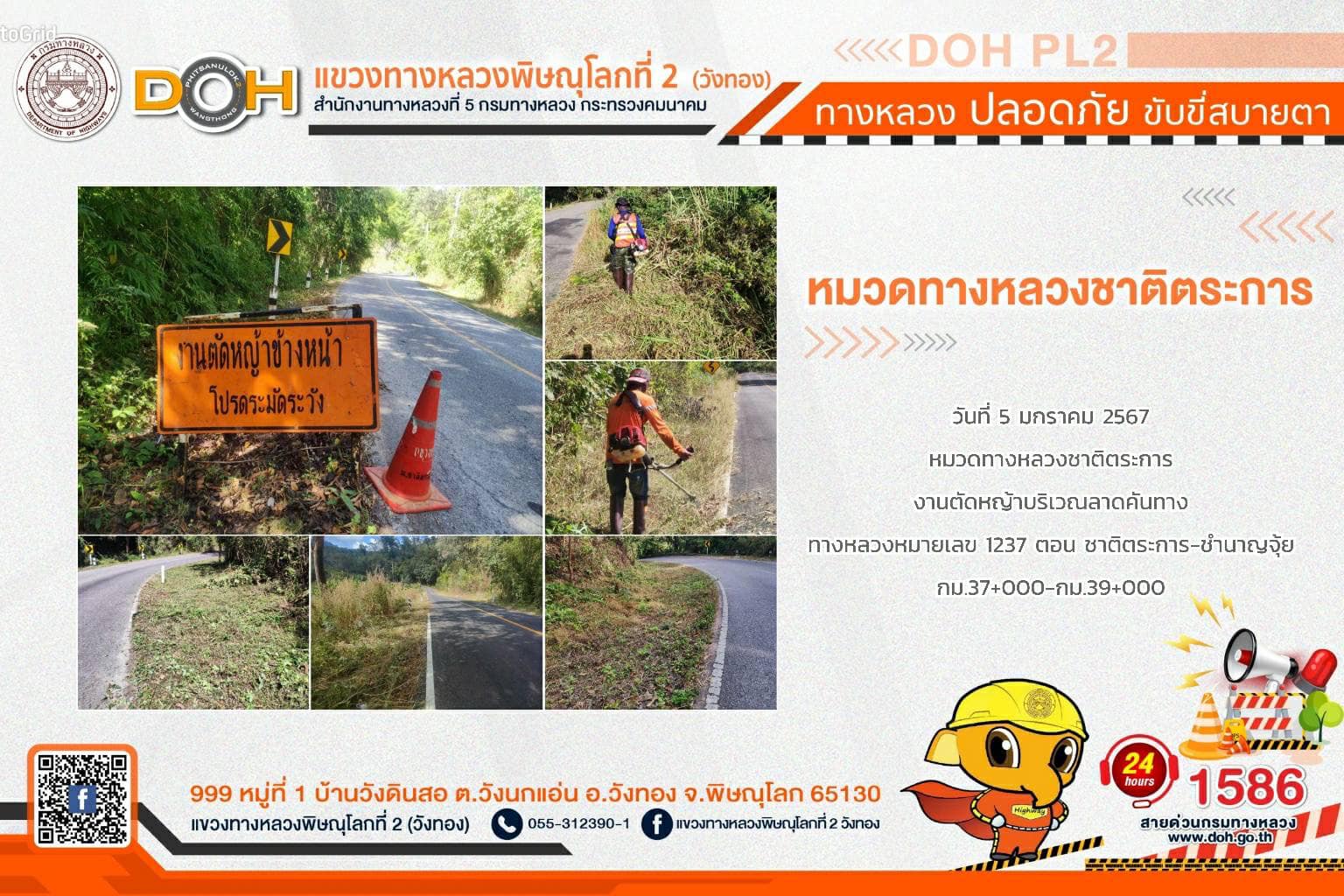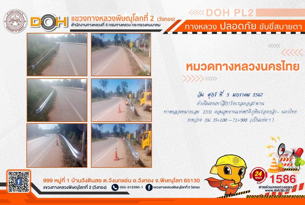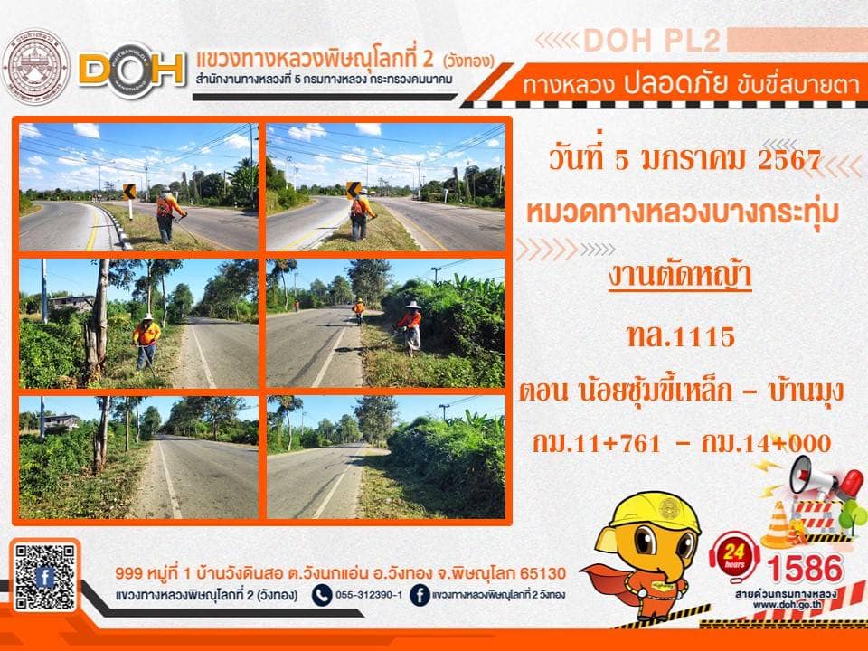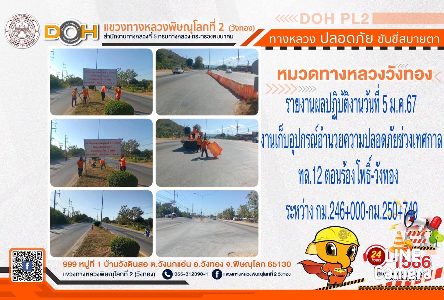 การปฏิบัติงานของ หมวดทางหลวง และ หน่วยงานในสังกัด เพื่ออำนวยความสะดวก และปลอดภัยให้กับประชาชนผู้ใช้เส้นทาง ประจำ วันศุกร์ที่ 5 มกราคม 2567
