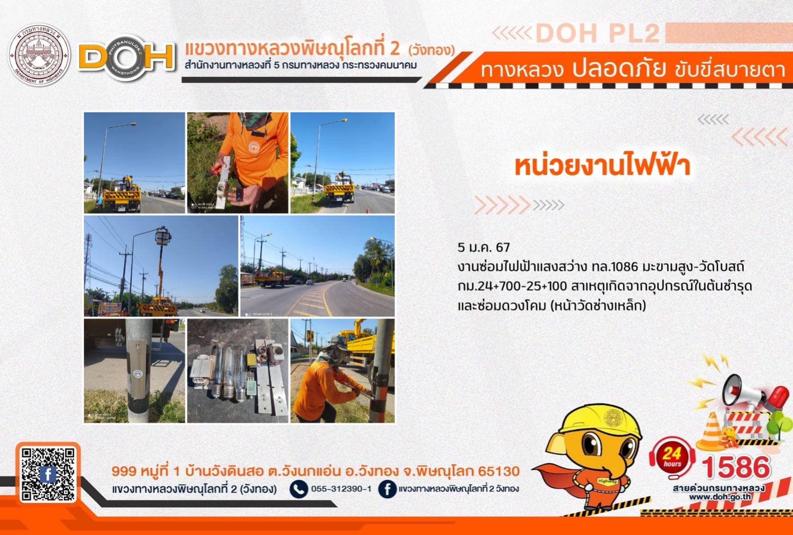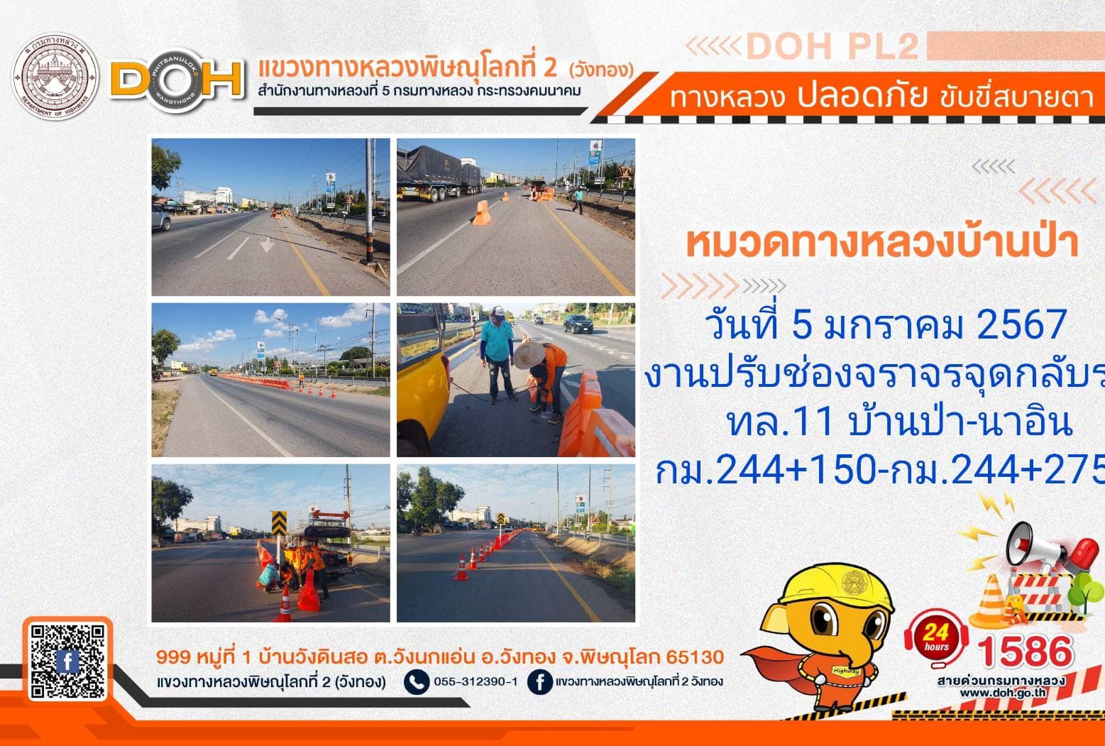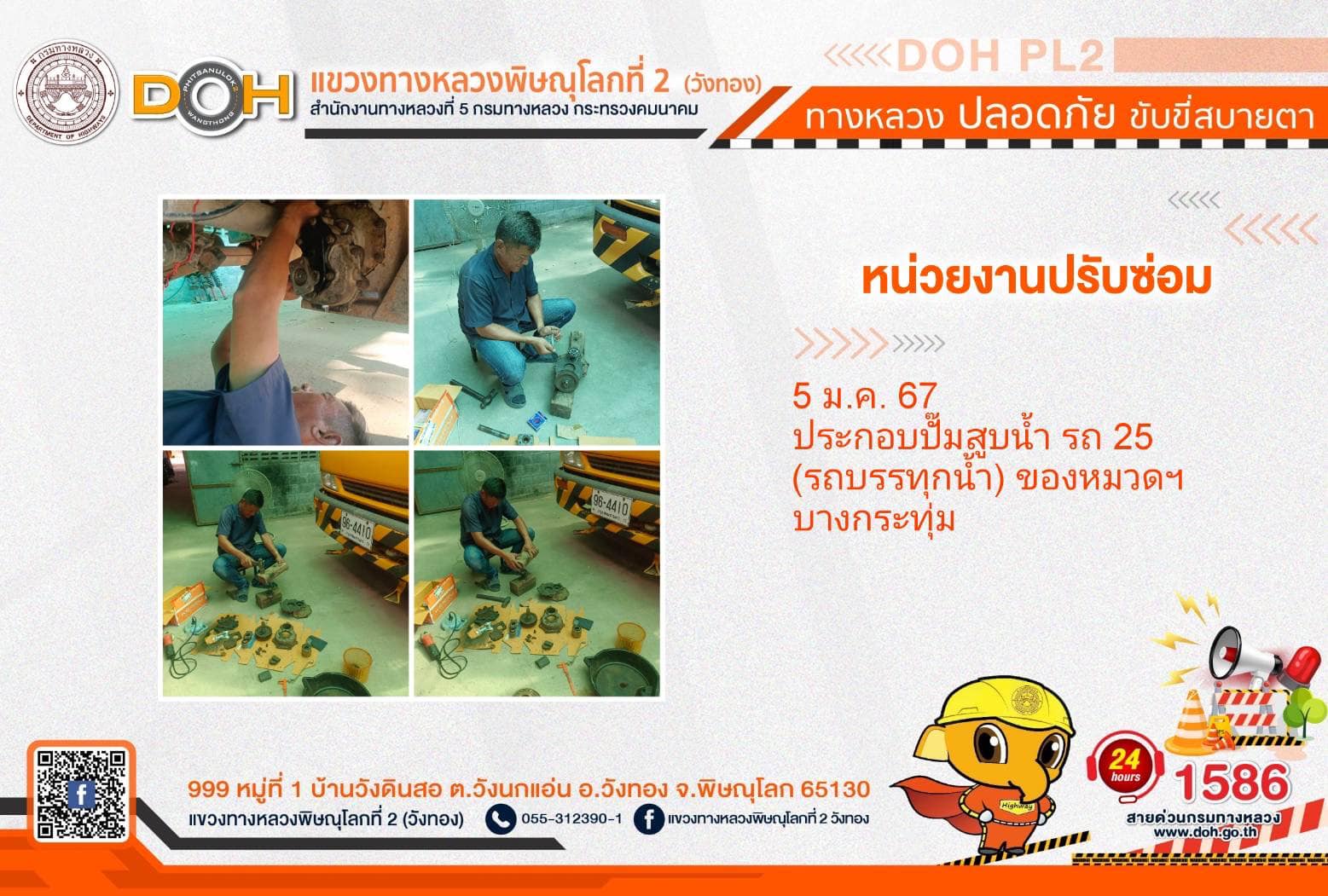 การปฏิบัติงานของ หมวดทางหลวง และ หน่วยงานในสังกัด เพื่ออำนวยความสะดวก และปลอดภัยให้กับประชาชนผู้ใช้เส้นทาง ประจำ วันศุกร์ที่ 5 มกราคม 2567