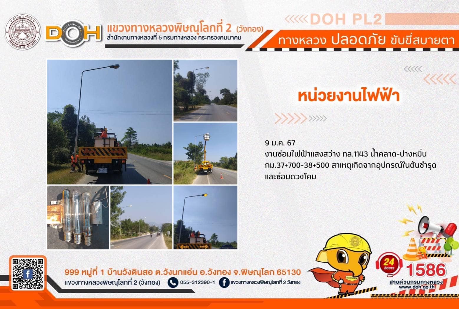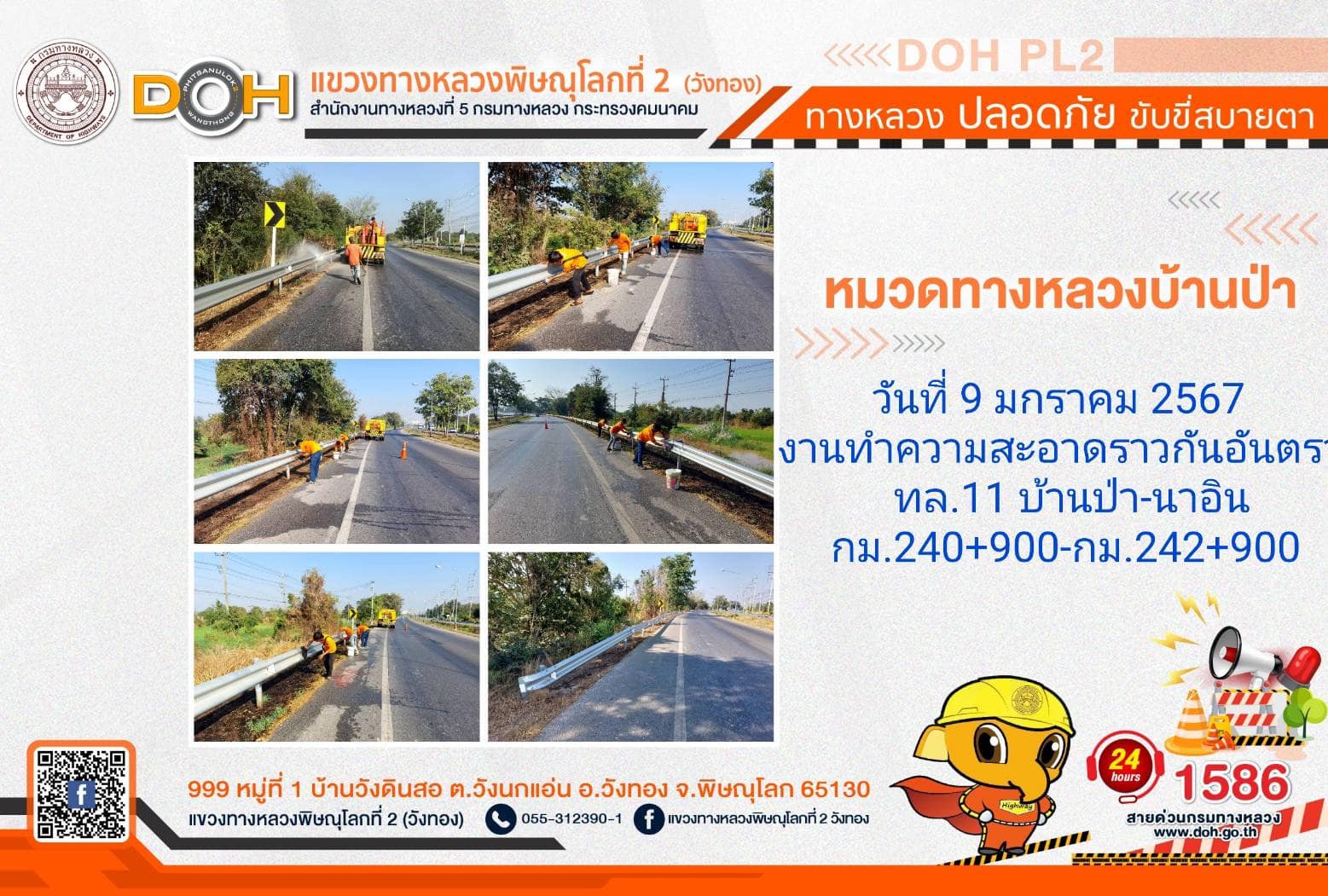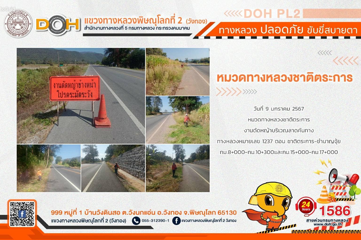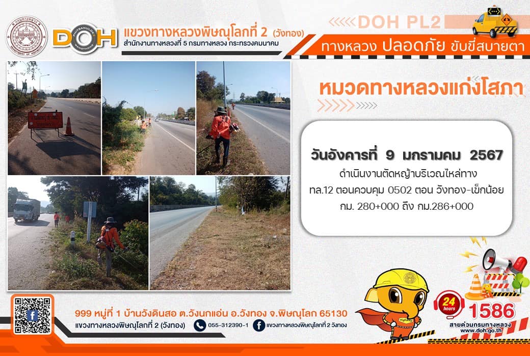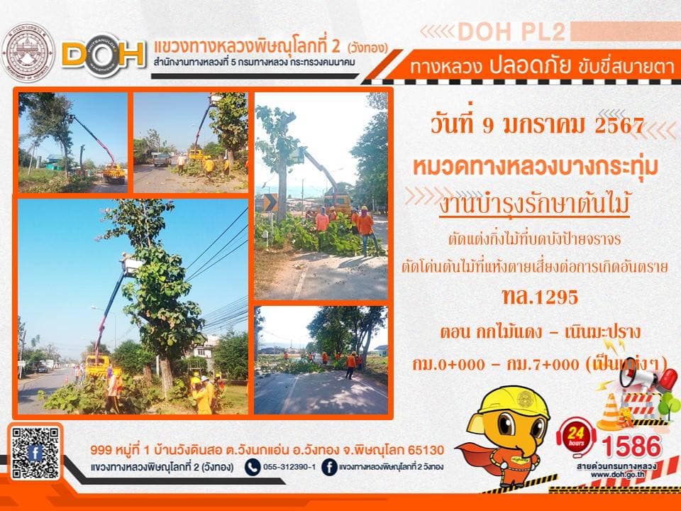 การปฏิบัติงานของ หมวดทางหลวง และ หน่วยงานในสังกัด เพื่ออำนวยความสะดวก และปลอดภัยให้กับประชาชนผู้ใช้เส้นทาง ประจำ วันอังคารที่ 9 มกราคม 2567