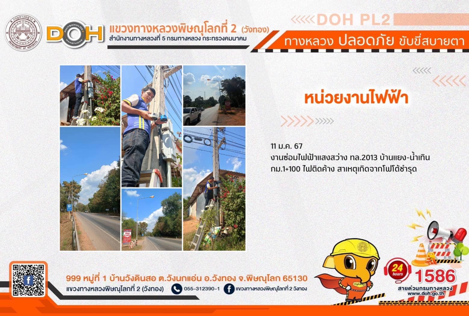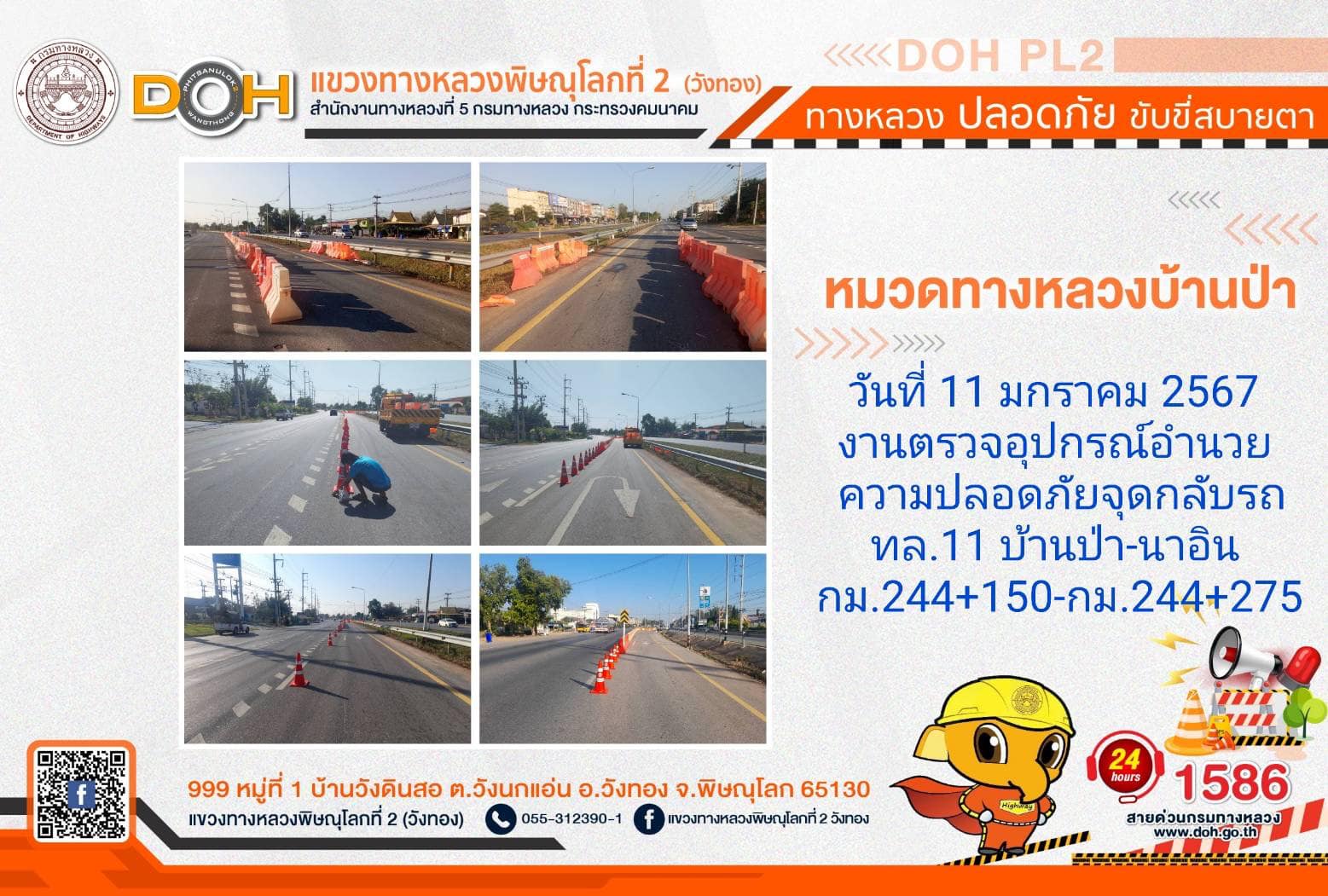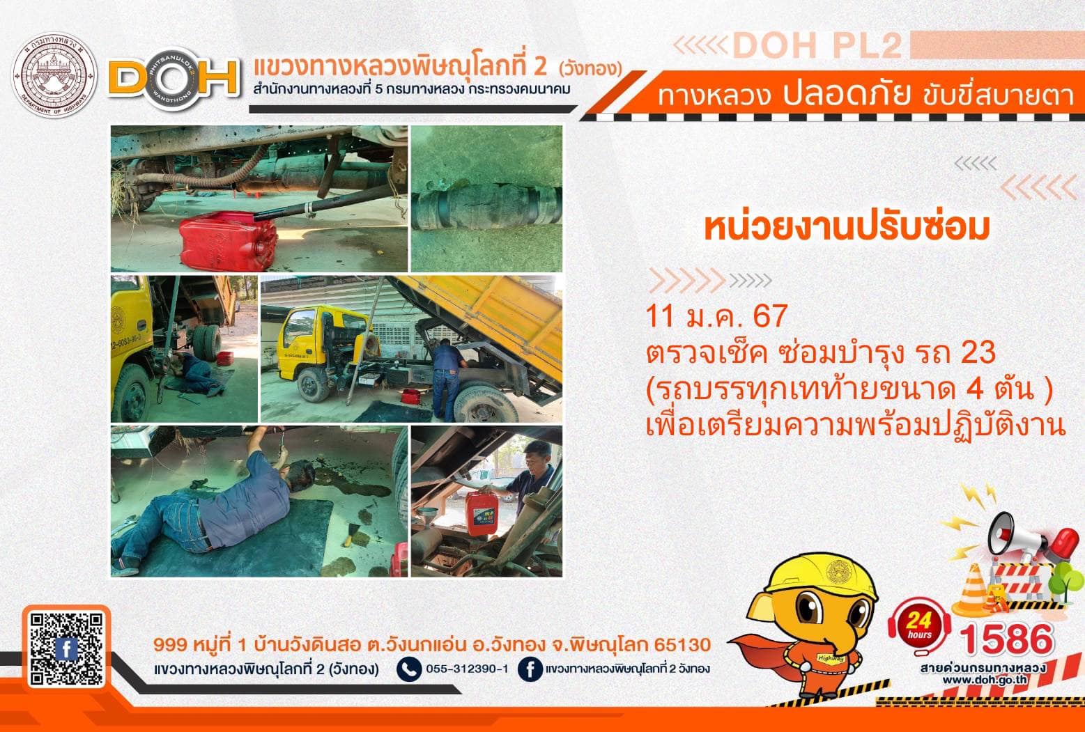 การปฏิบัติงานของ หมวดทางหลวง และ หน่วยงานในสังกัด เพื่ออำนวยความสะดวก และปลอดภัยให้กับประชาชนผู้ใช้เส้นทาง ประจำ วันพฤหัสบดีที่ 11 มกราคม 2567