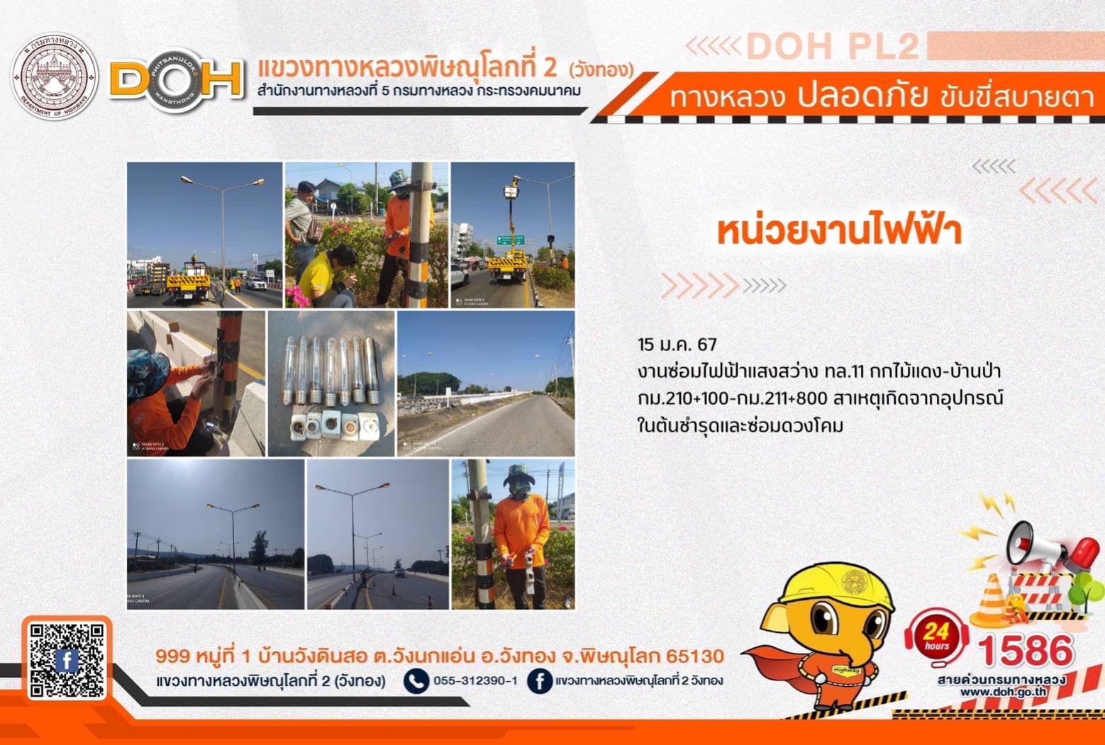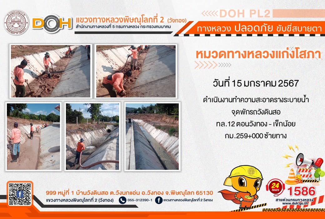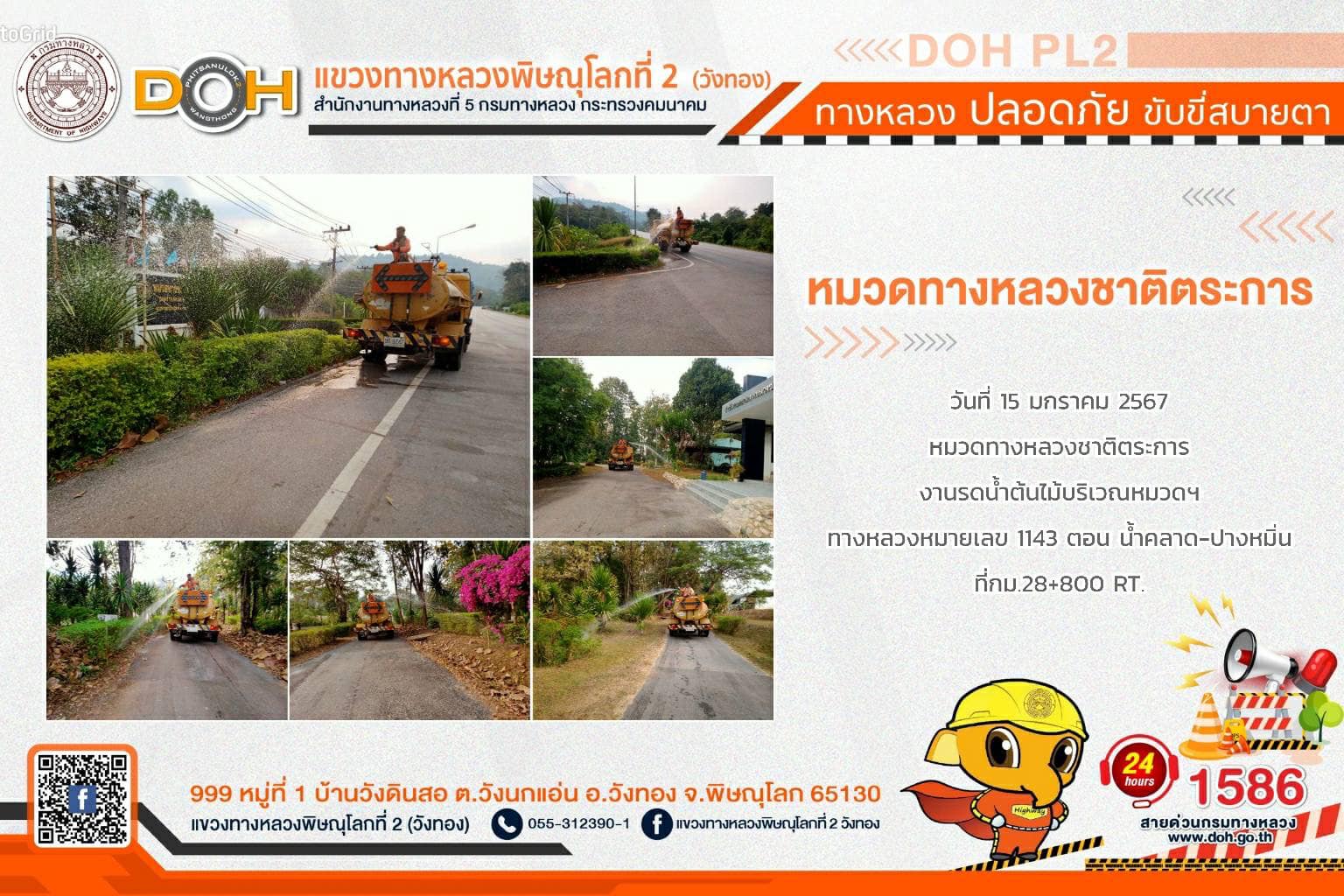 การปฏิบัติงานของ หมวดทางหลวง และ หน่วยงานในสังกัด เพื่ออำนวยความสะดวก และปลอดภัยให้กับประชาชนผู้ใช้เส้นทาง ประจำ วันจันทร์ที่ 15 มกราคม 2567