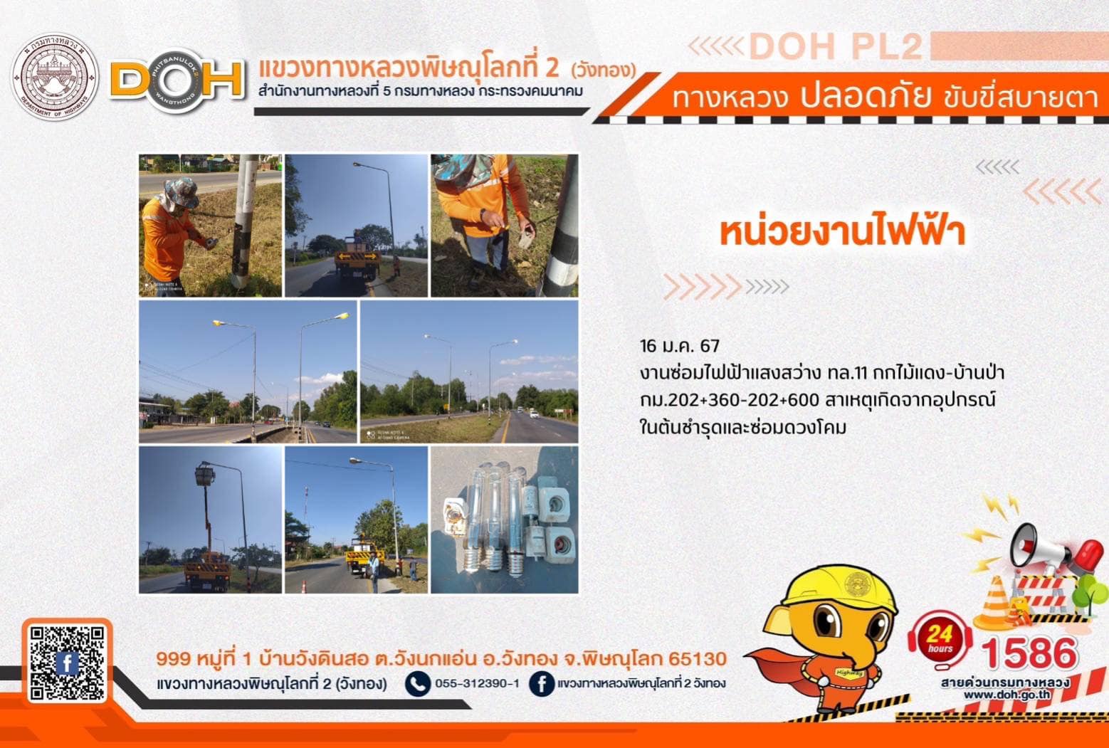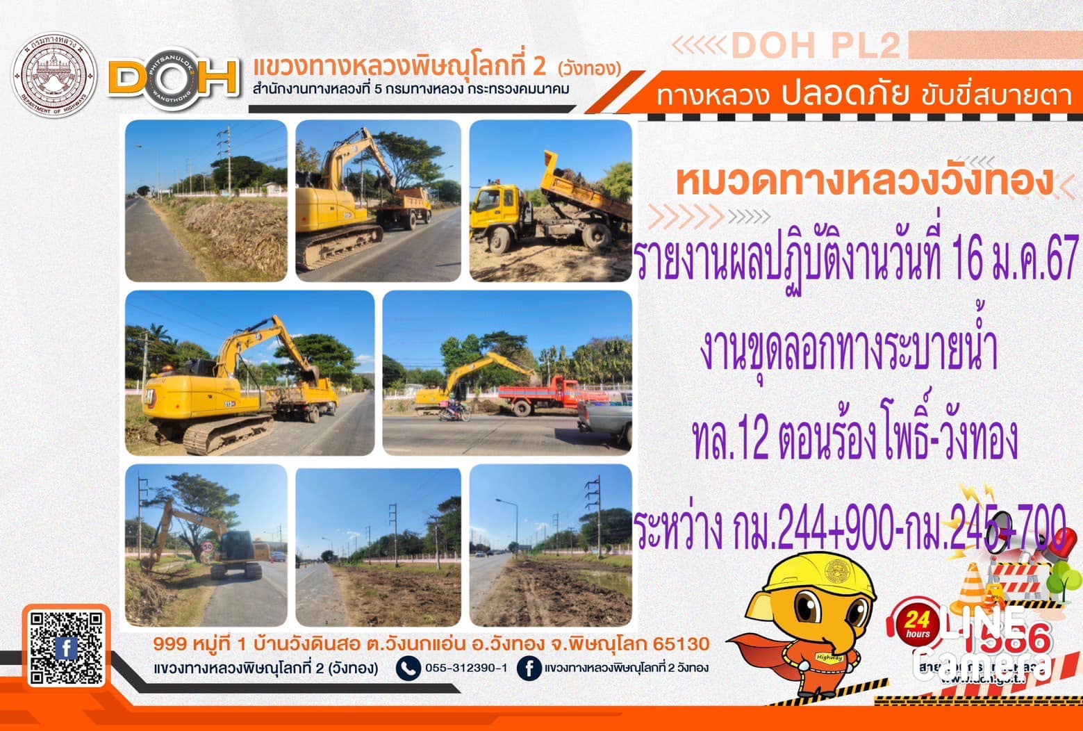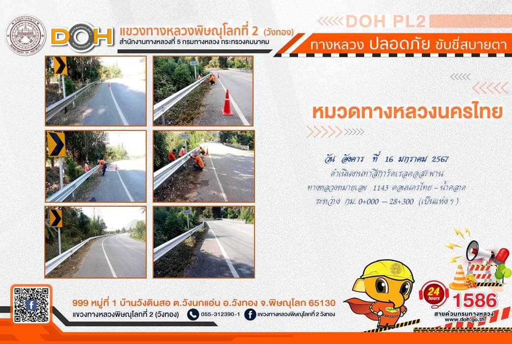 การปฏิบัติงานของ หมวดทางหลวง และ หน่วยงานในสังกัด เพื่ออำนวยความสะดวก และปลอดภัยให้กับประชาชนผู้ใช้เส้นทาง ประจำ วันอังคารที่ 16 มกราคม 2567