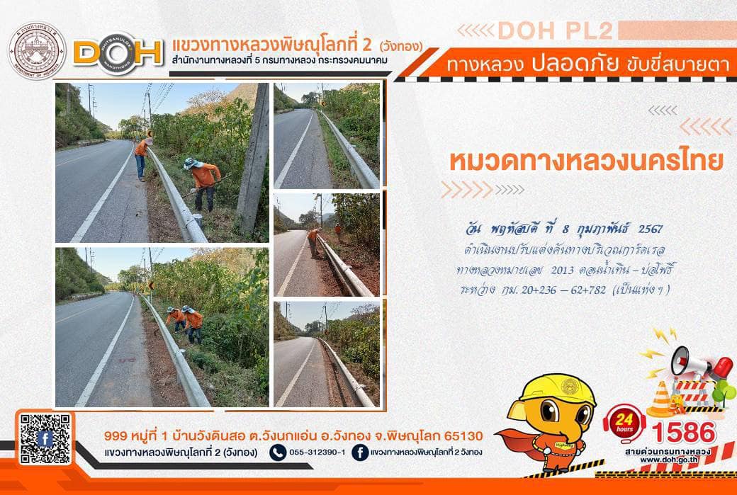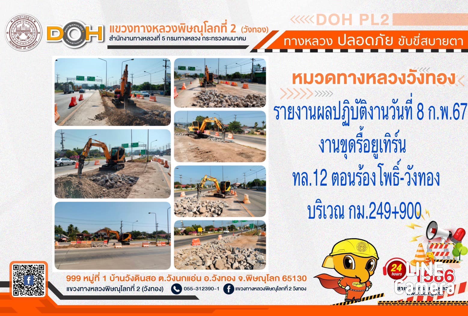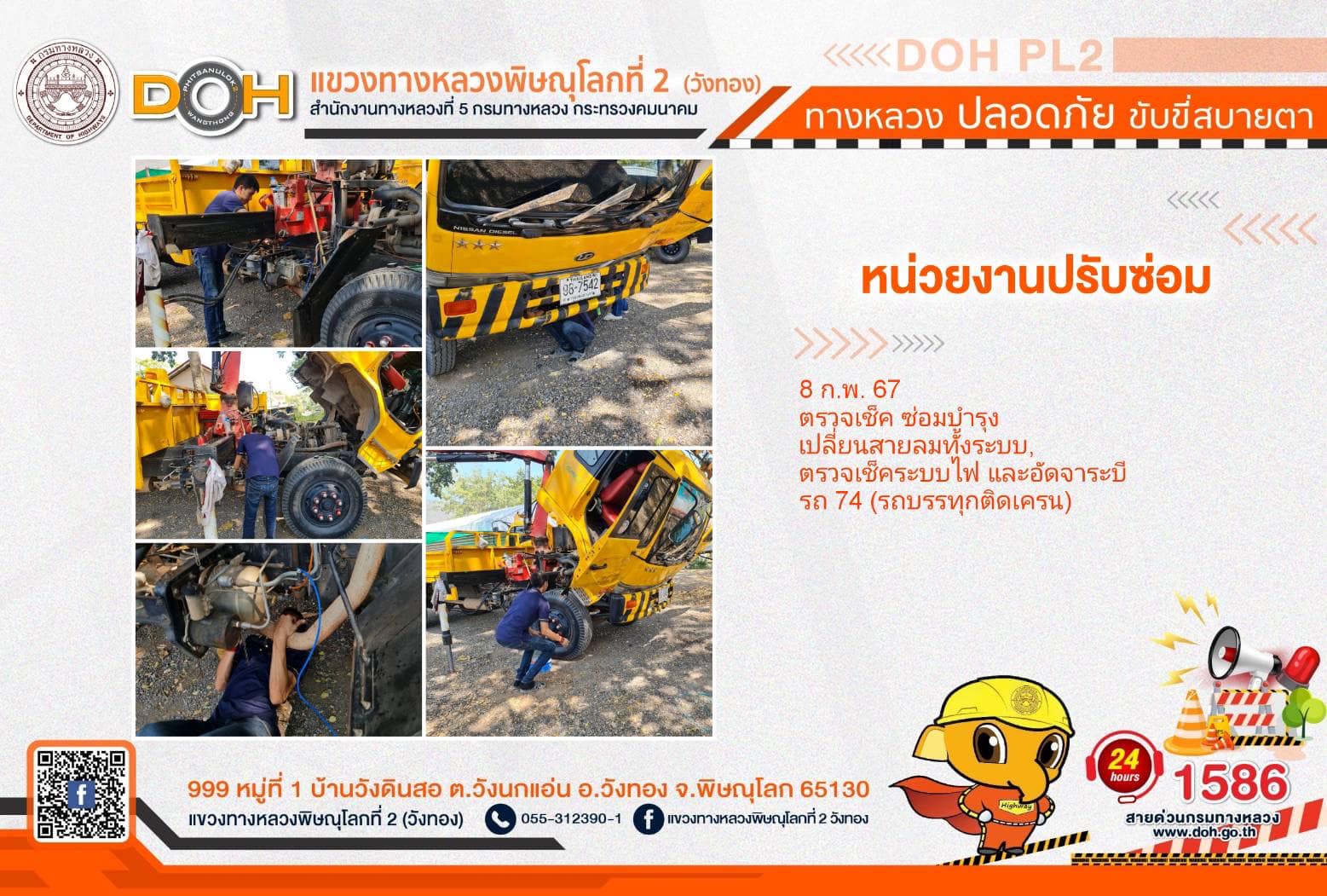 การปฏิบัติงานของ หมวดทางหลวง และ หน่วยงานในสังกัด เพื่ออำนวยความสะดวก และปลอดภัยให้กับประชาชนผู้ใช้เส้นทาง ประจำ วันพฤหัสบดีที่ 8 กุมภาพันธ์ 2567