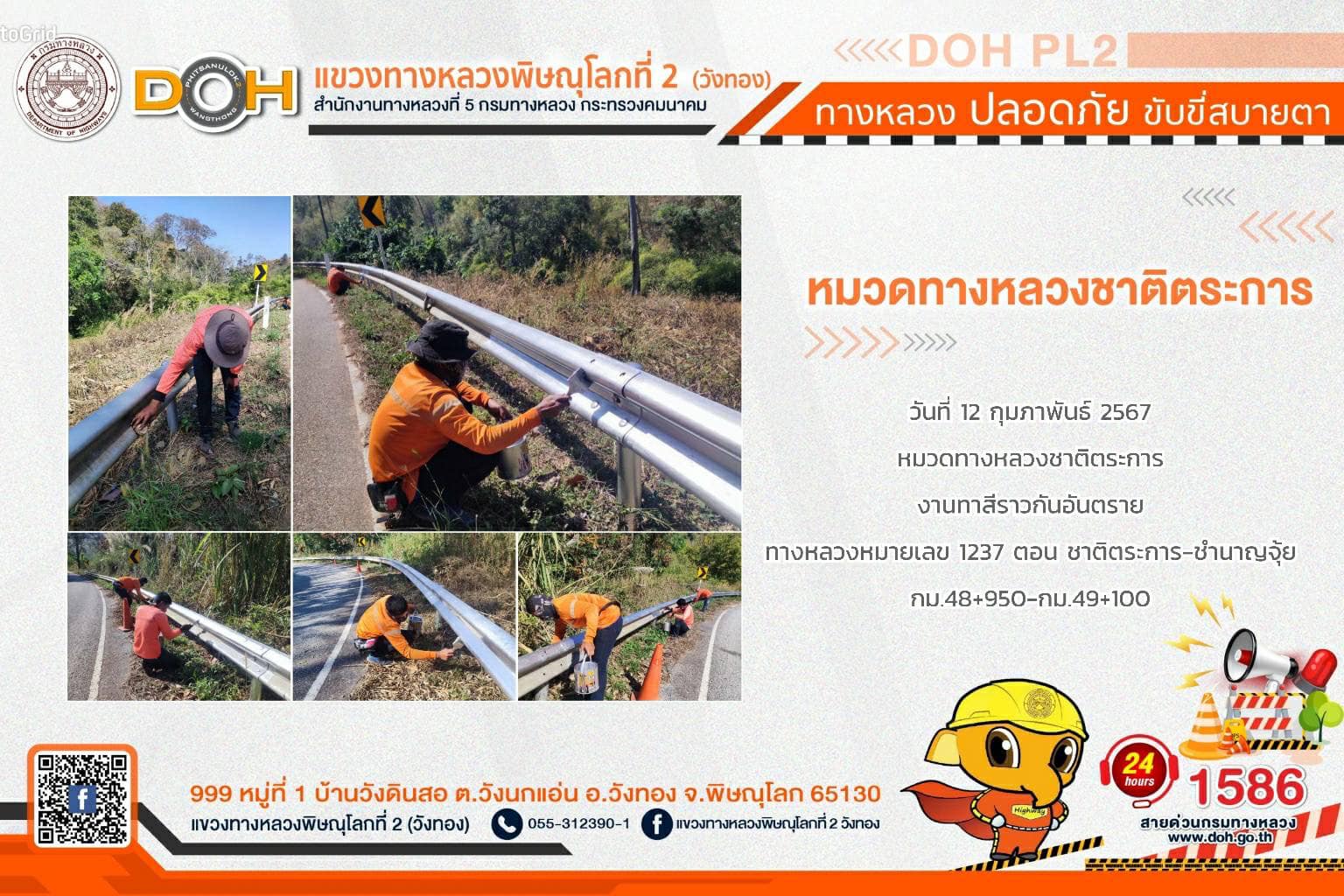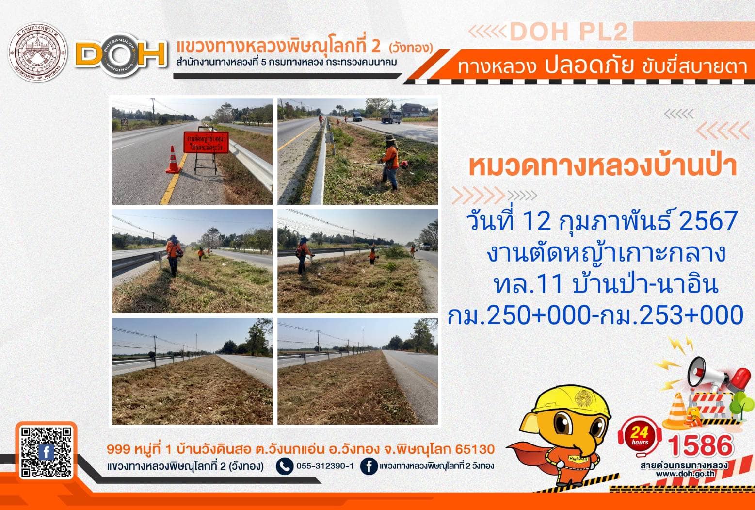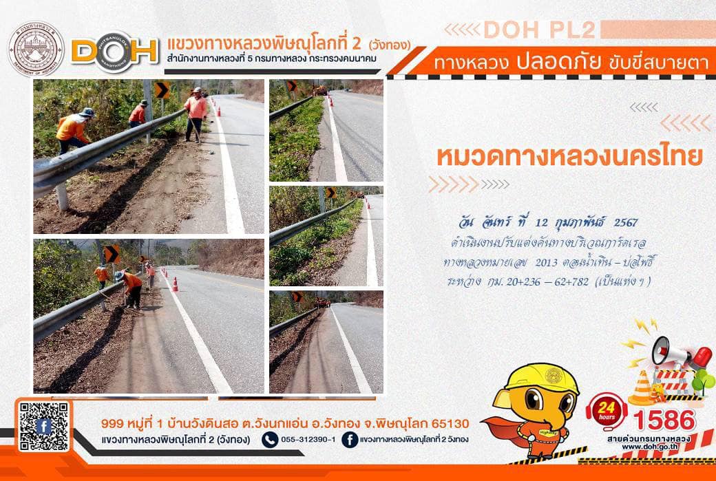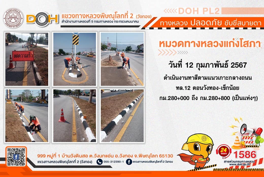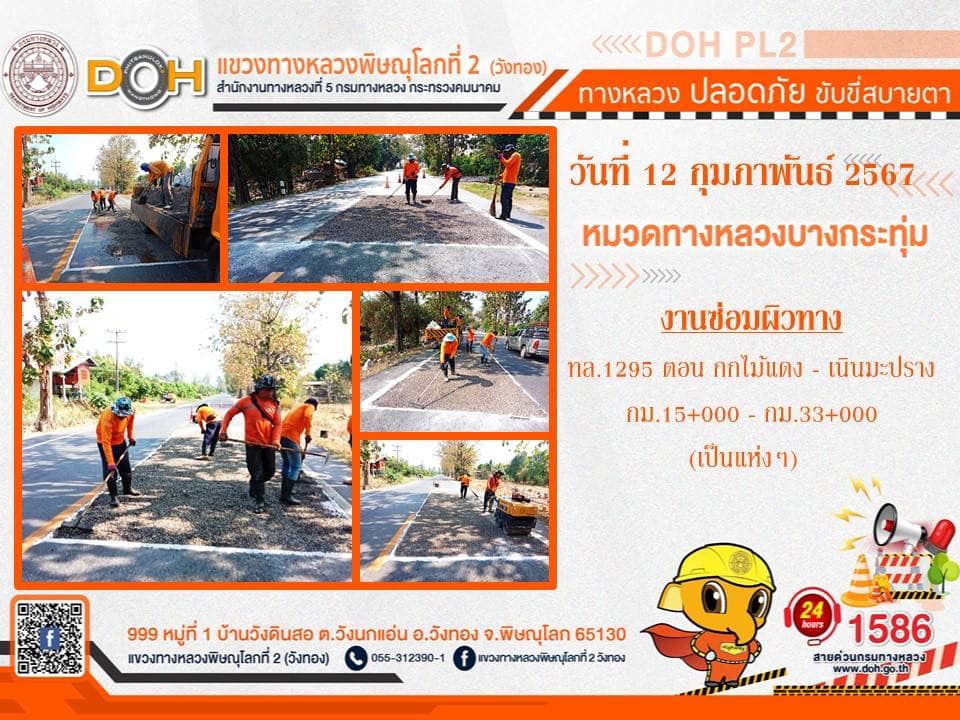 การปฏิบัติงานของ หมวดทางหลวง และ หน่วยงานในสังกัด เพื่ออำนวยความสะดวก และปลอดภัยให้กับประชาชนผู้ใช้เส้นทาง ประจำ วันจันทร์ที่ 12 กุมภาพันธ์ 2567