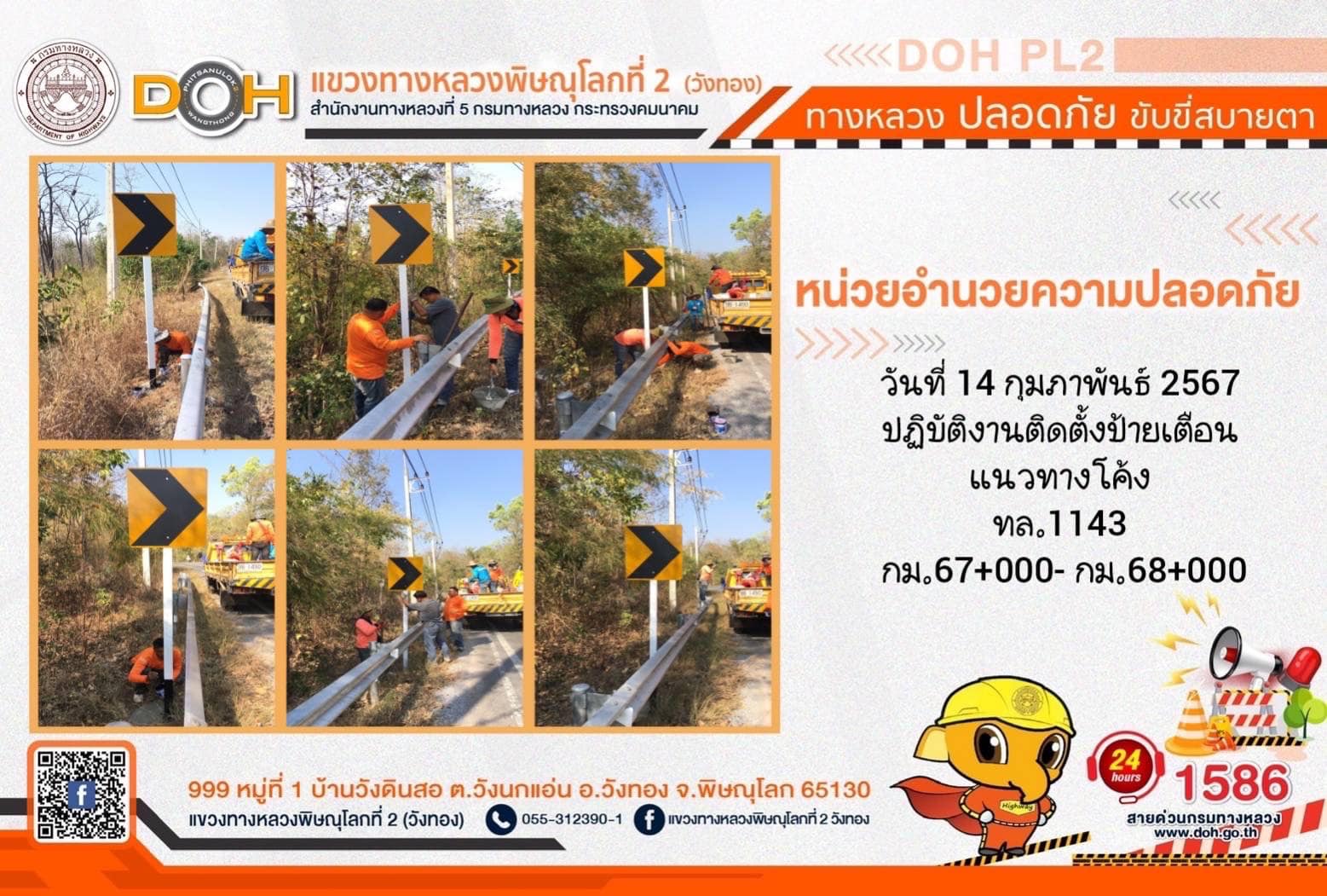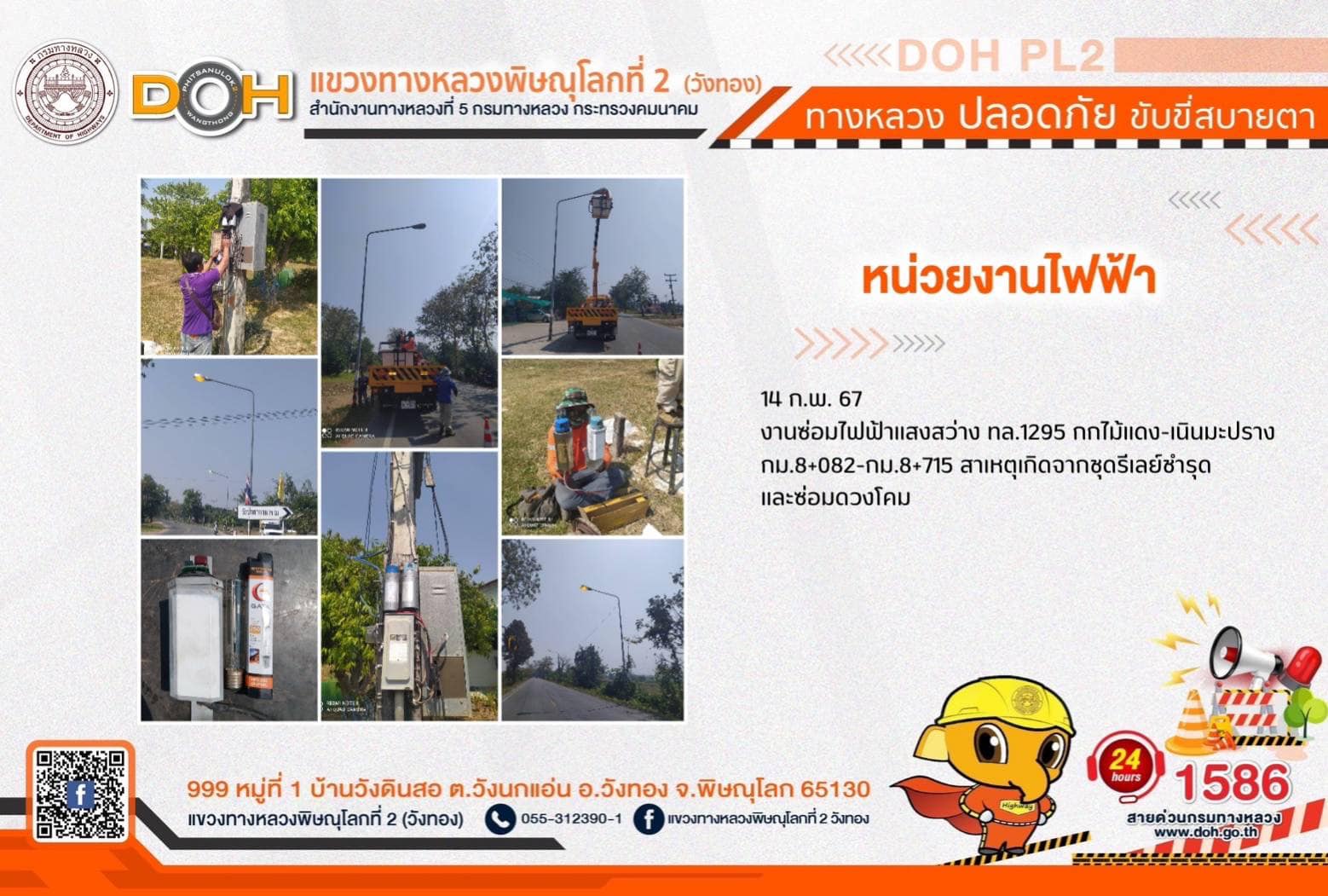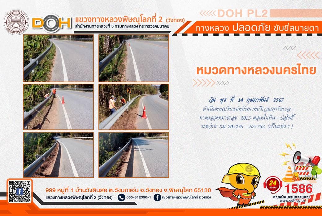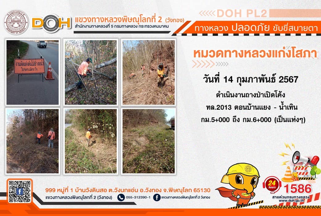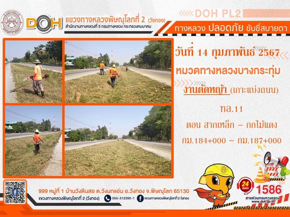 การปฏิบัติงานของ หมวดทางหลวง และ หน่วยงานในสังกัด เพื่ออำนวยความสะดวก และปลอดภัยให้กับประชาชนผู้ใช้เส้นทาง ประจำ วันพุธที่ 14 กุมภาพันธ์ 2567