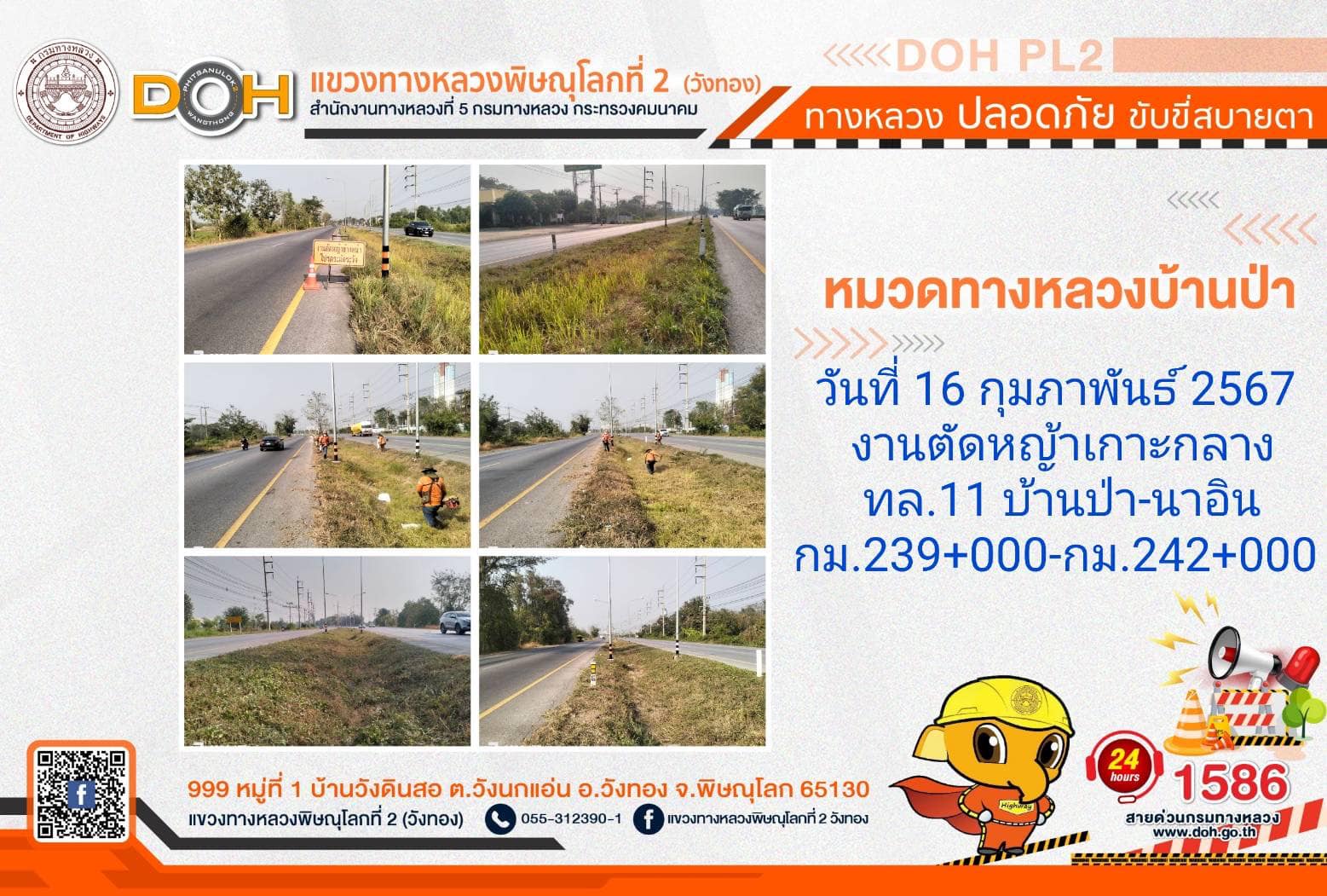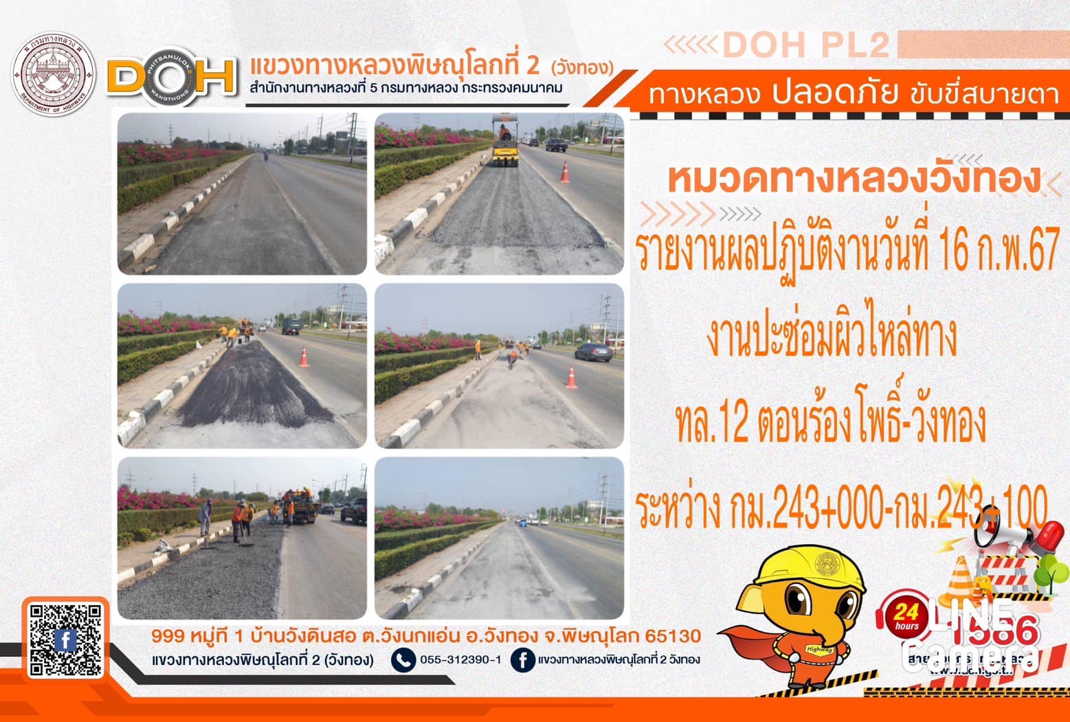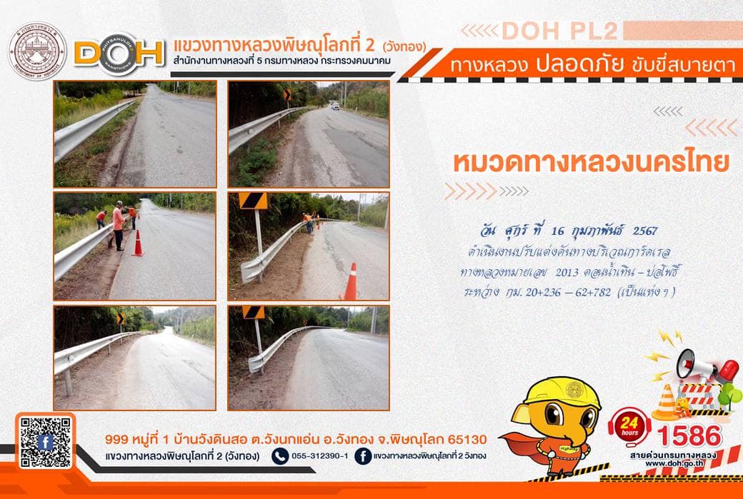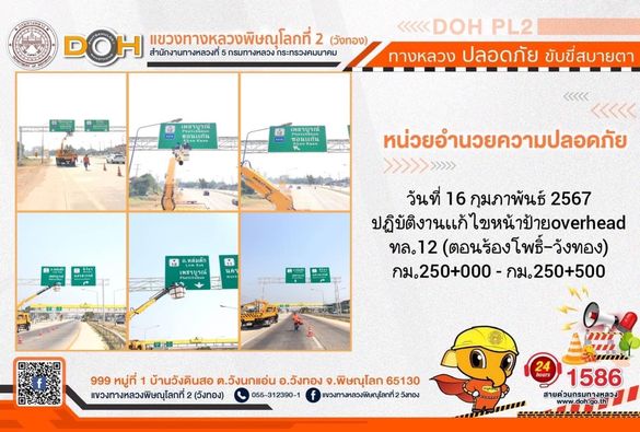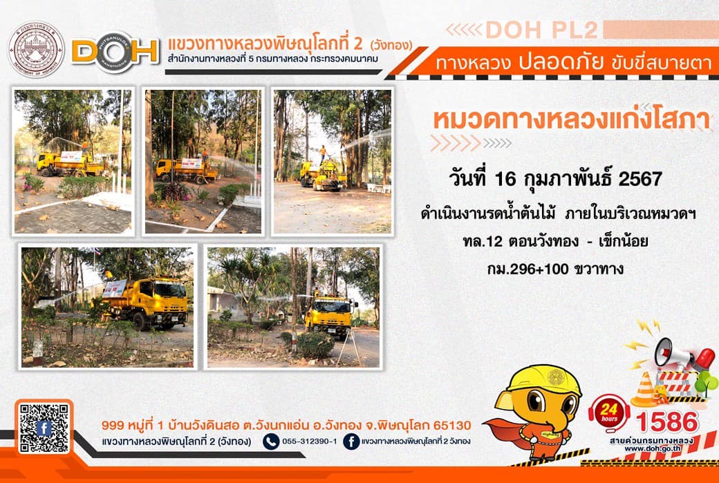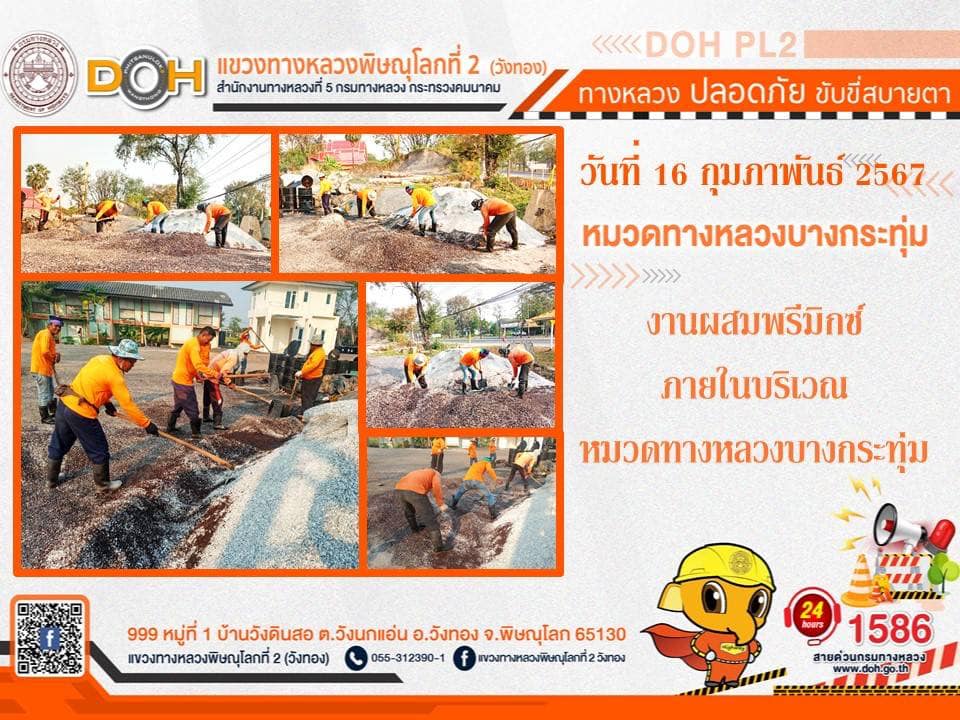 การปฏิบัติงานของ หมวดทางหลวง และ หน่วยงานในสังกัด เพื่ออำนวยความสะดวก และปลอดภัยให้กับประชาชนผู้ใช้เส้นทาง ประจำ วันศุกร์ที่ 16 กุมภาพันธ์ 2567
