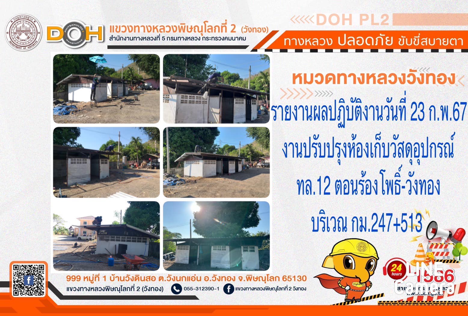 การปฏิบัติงานของ หมวดทางหลวง และ หน่วยงานในสังกัด เพื่ออำนวยความสะดวก และปลอดภัยให้กับประชาชนผู้ใช้เส้นทาง ประจำ วันศุกร์ที่ 23 กุมภาพันธ์ 2567