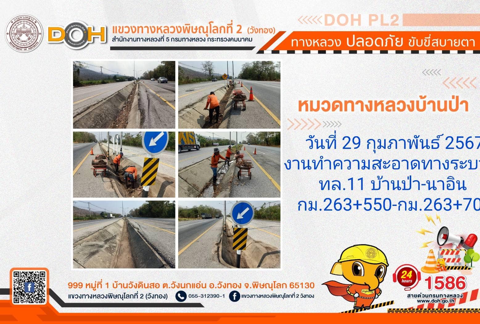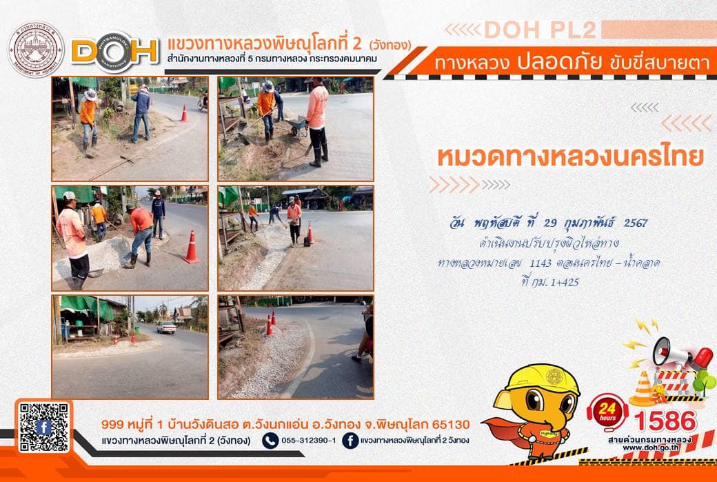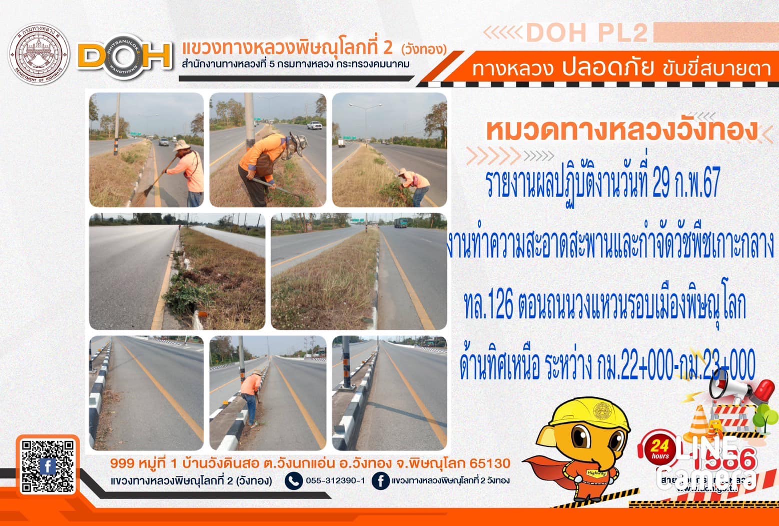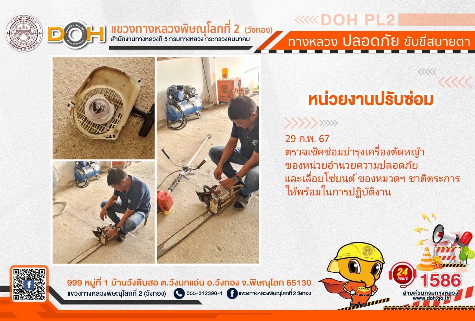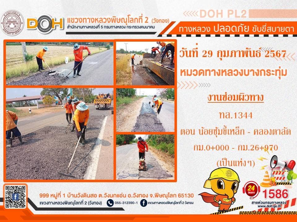 การปฏิบัติงานของ หมวดทางหลวง และ หน่วยงานในสังกัด เพื่ออำนวยความสะดวก และปลอดภัยให้กับประชาชนผู้ใช้เส้นทาง ประจำ วันพฤหัสบดีที่ 29 กุมภาพันธ์ 2567