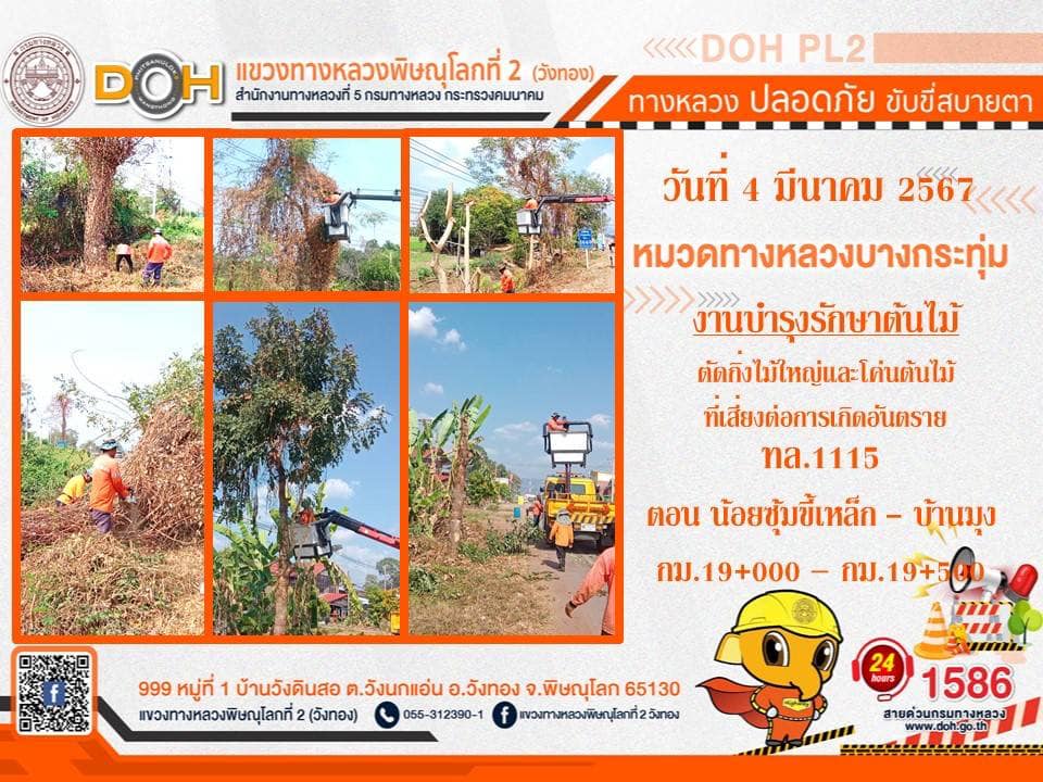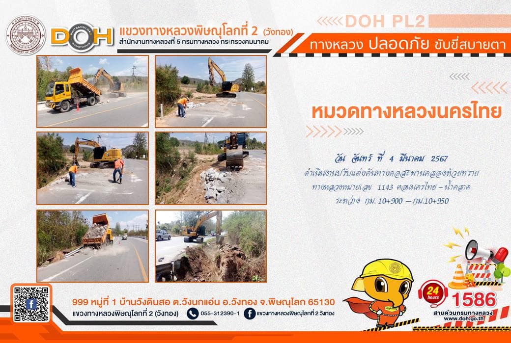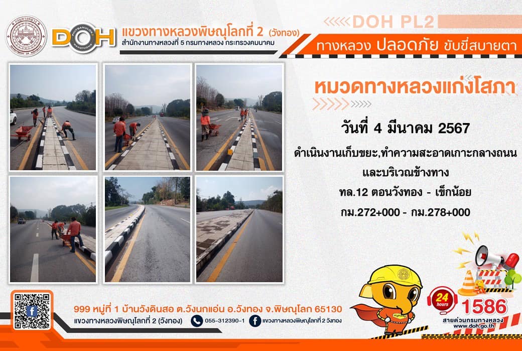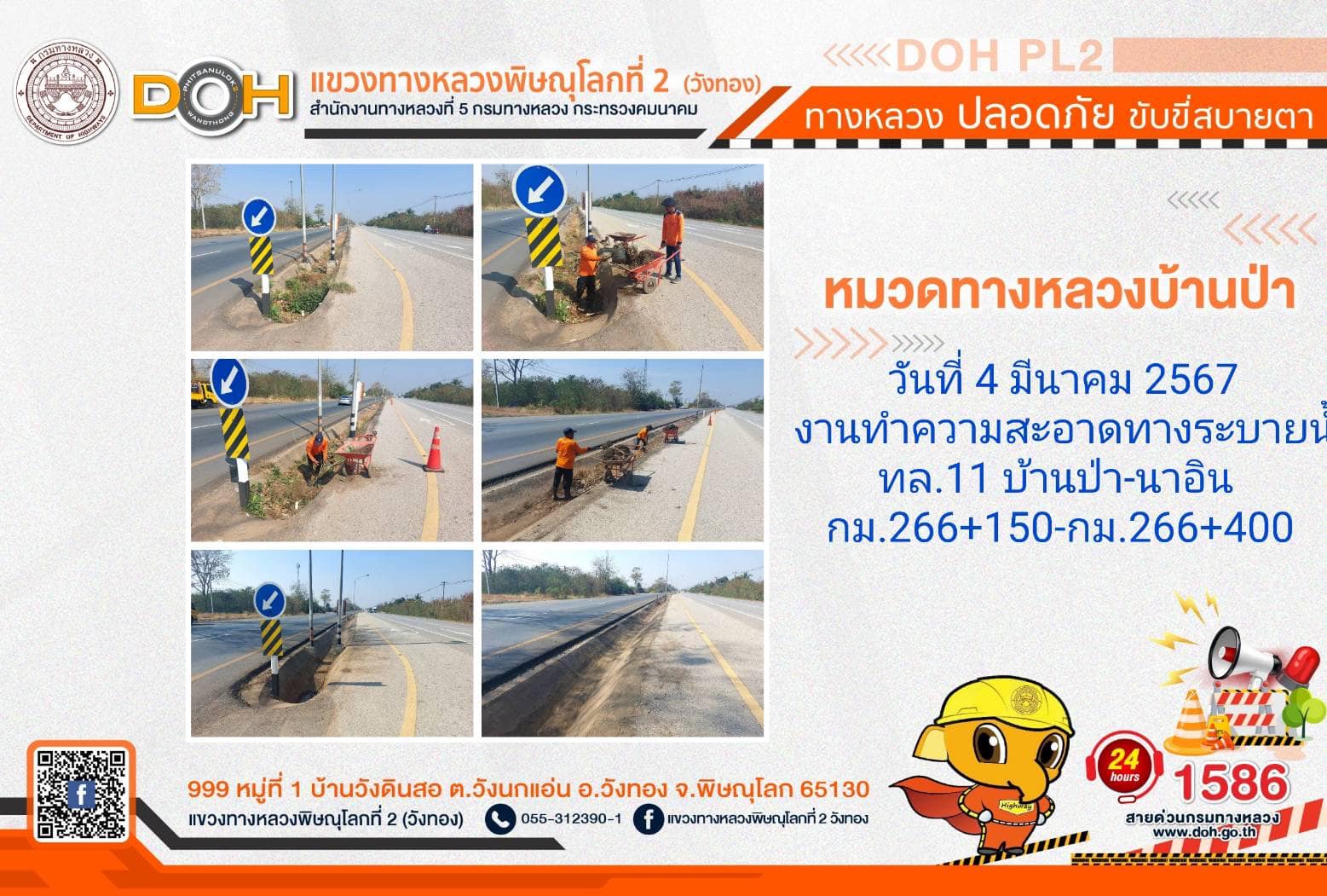 การปฏิบัติงานของ หมวดทางหลวง และ หน่วยงานในสังกัด เพื่ออำนวยความสะดวก และปลอดภัยให้กับประชาชนผู้ใช้เส้นทาง ประจำ วันจันทร์ที่ 4 มีนาคม 2567