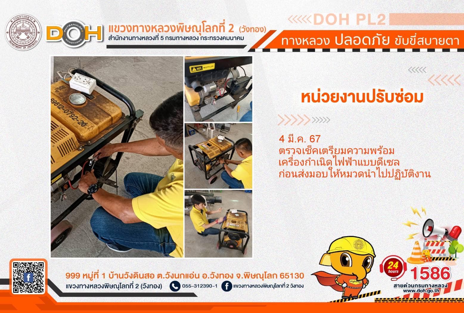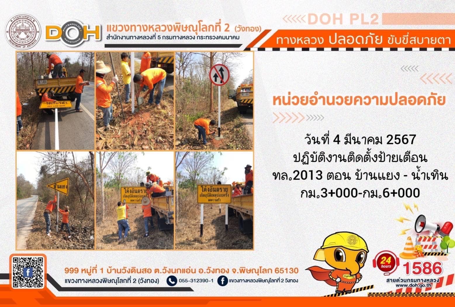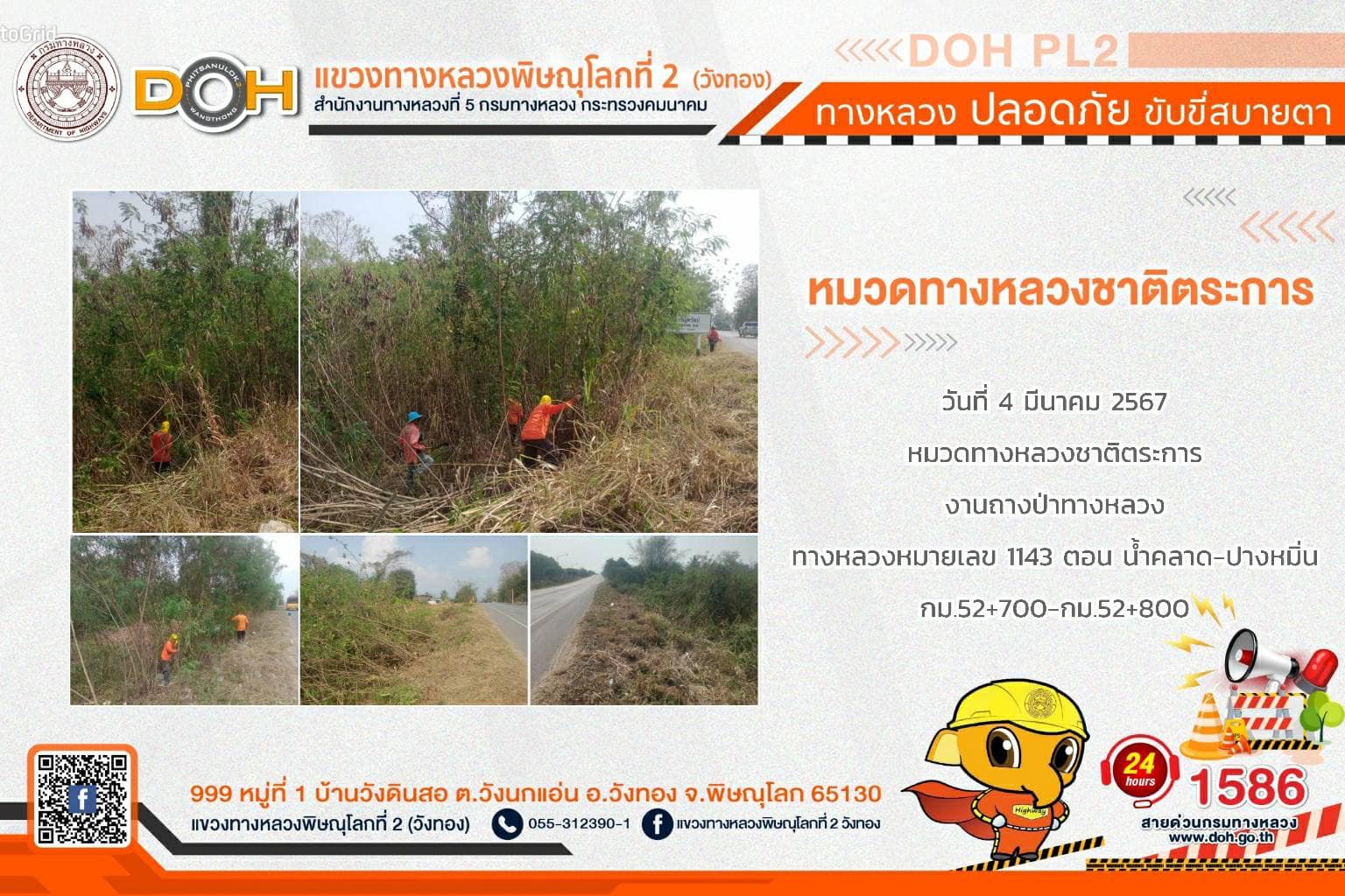การปฏิบัติงานของ หมวดทางหลวง และ หน่วยงานในสังกัด เพื่ออำนวยความสะดวก และปลอดภัยให้กับประชาชนผู้ใช้เส้นทาง ประจำ วันจันทร์ที่ 4 มีนาคม 2567
