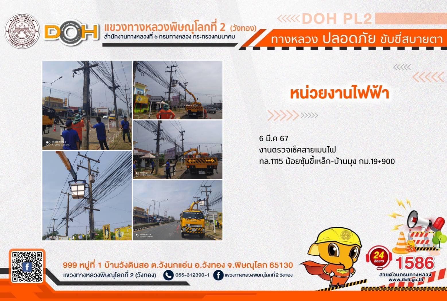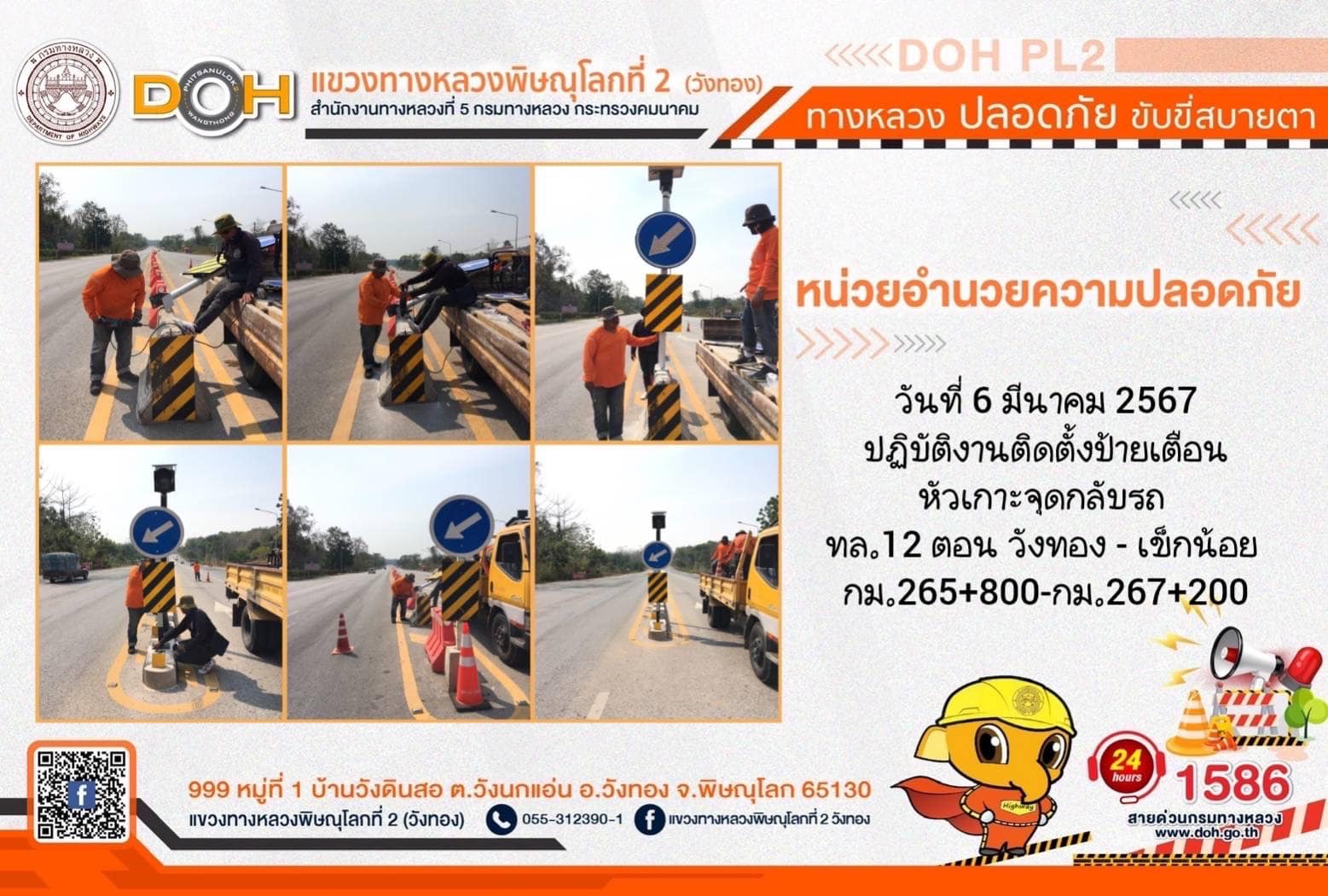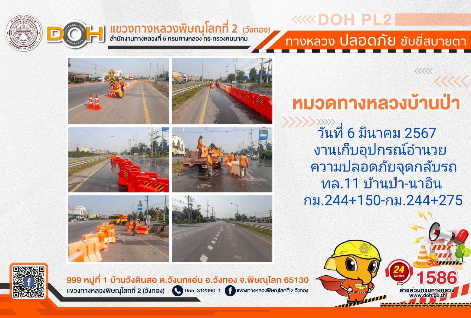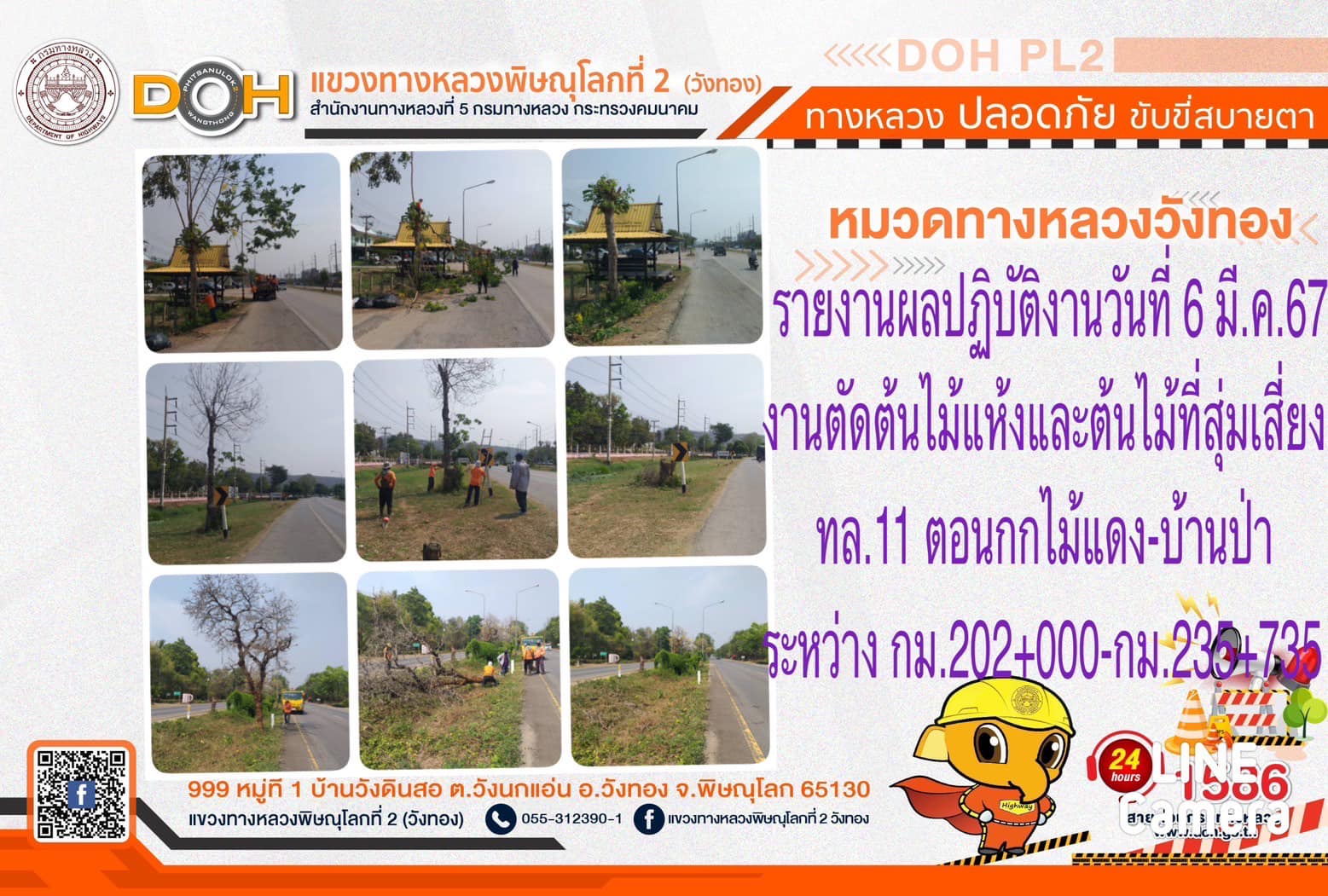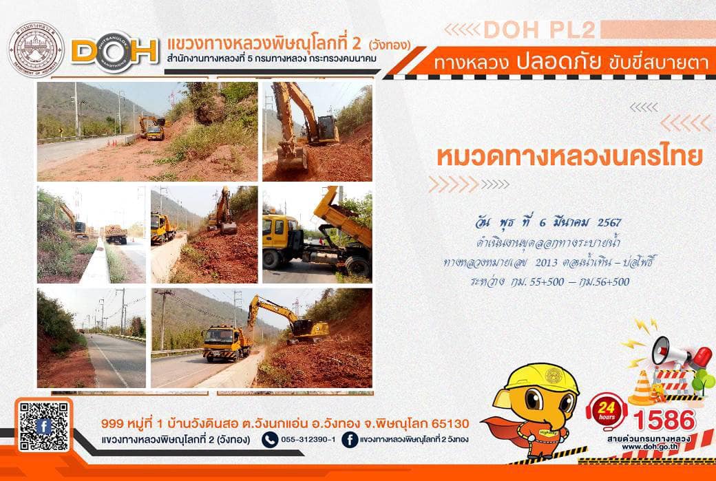 การปฏิบัติงานของ หมวดทางหลวง และ หน่วยงานในสังกัด เพื่ออำนวยความสะดวก และปลอดภัยให้กับประชาชนผู้ใช้เส้นทาง ประจำ วันพุธที่ 6 มีนาคม 2567