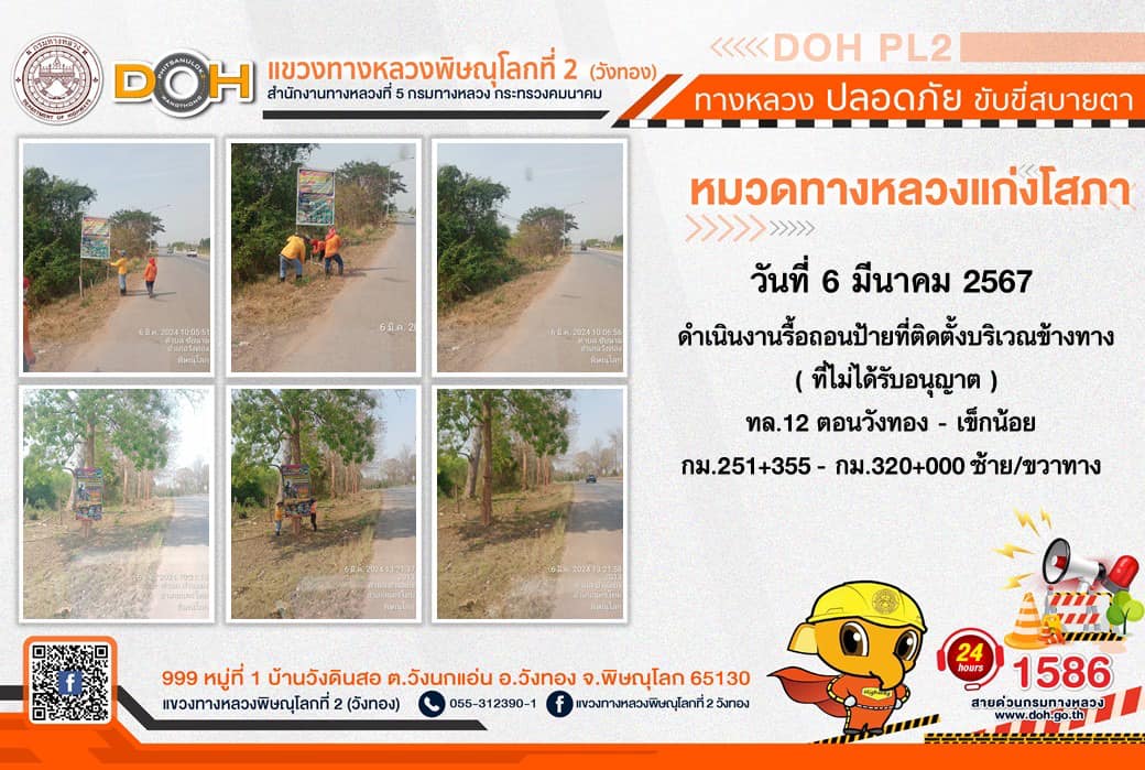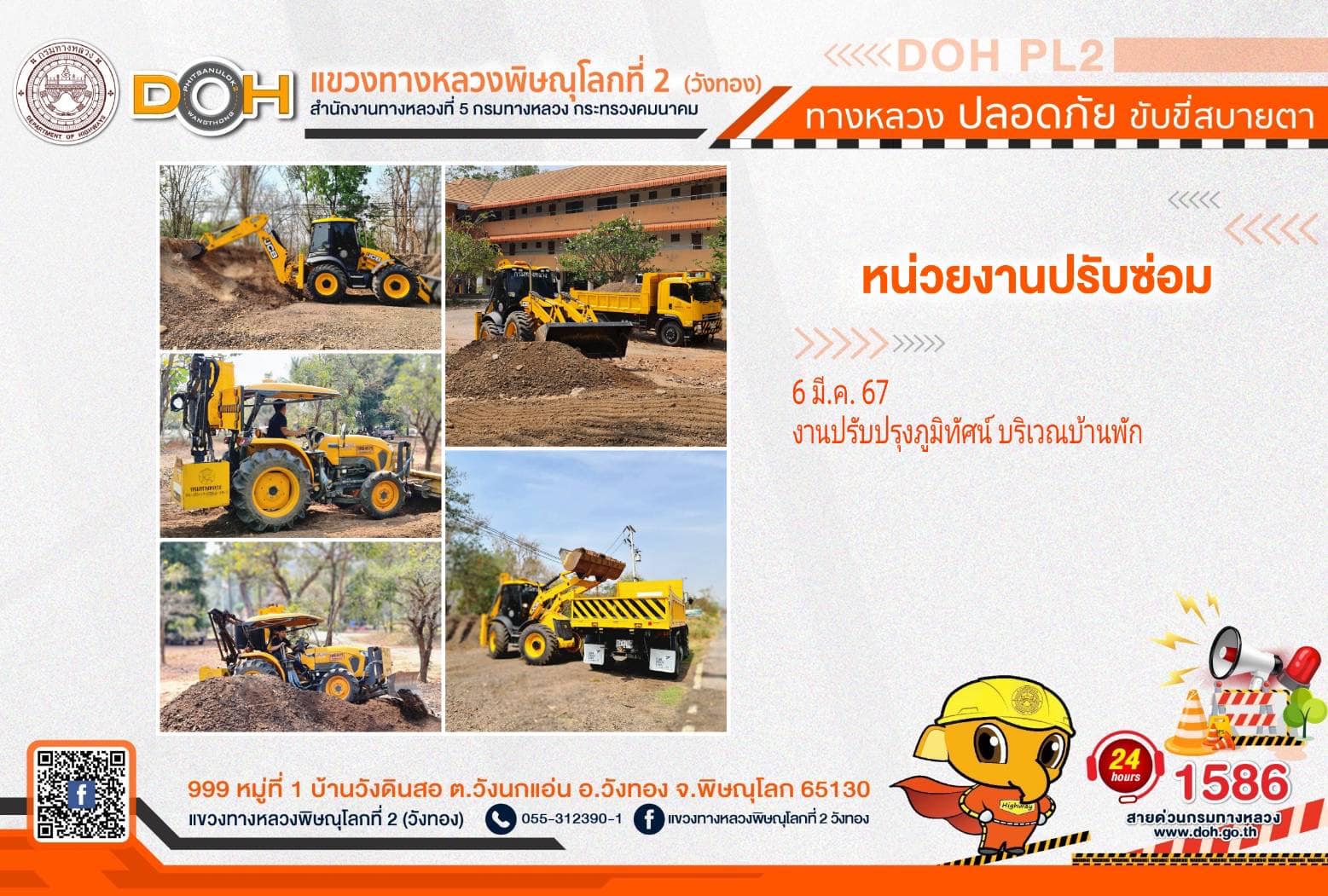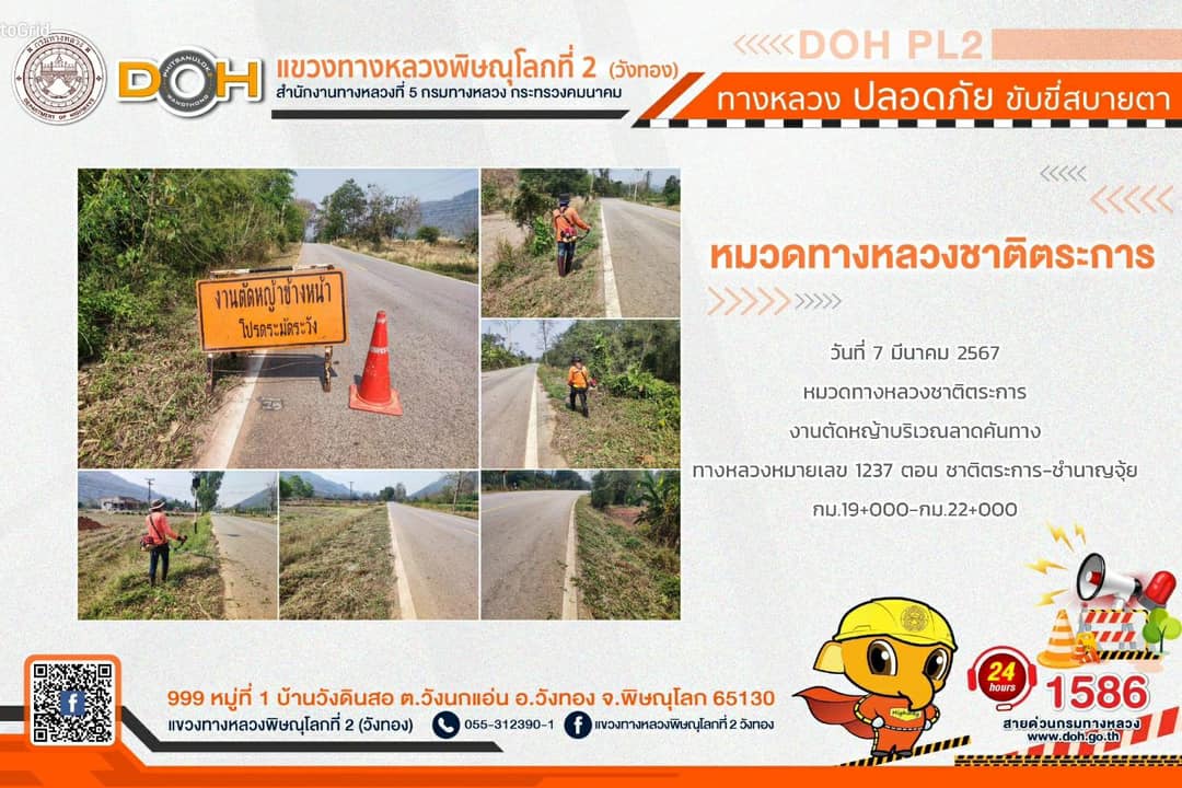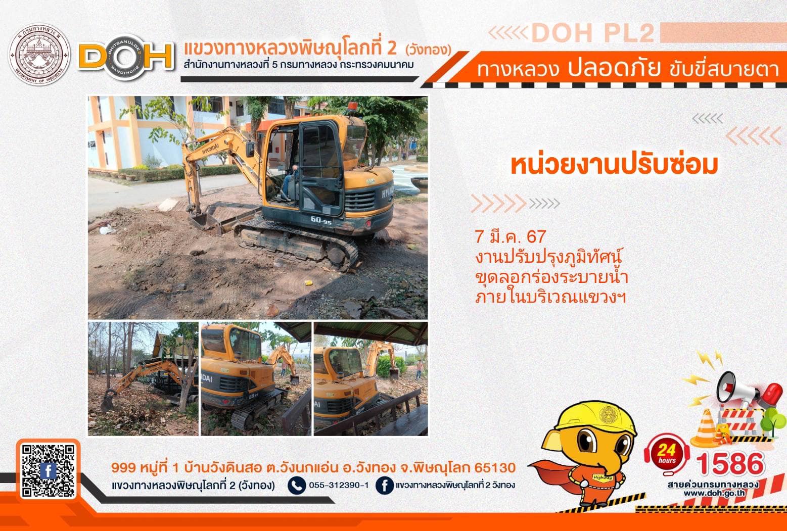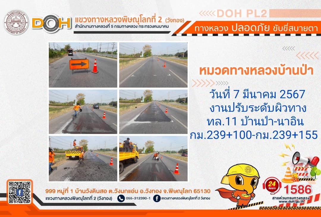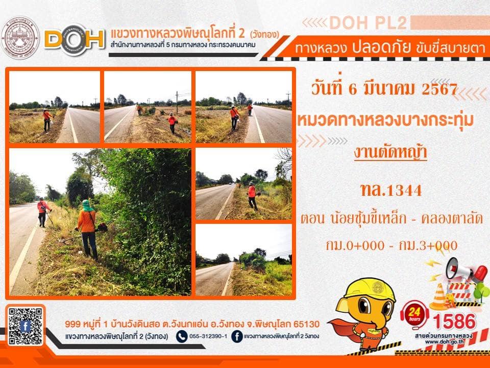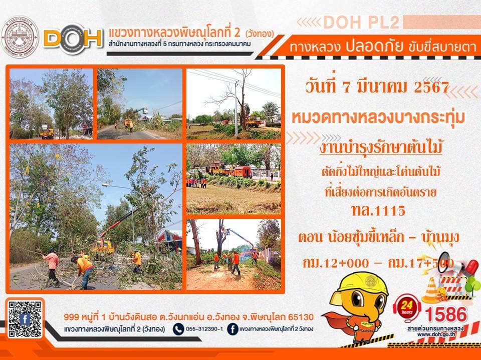 การปฏิบัติงานของ หมวดทางหลวง และ หน่วยงานในสังกัด เพื่ออำนวยความสะดวก และปลอดภัยให้กับประชาชนผู้ใช้เส้นทาง ประจำ วันพฤหัสบดีที่ 7 มีนาคม 2567