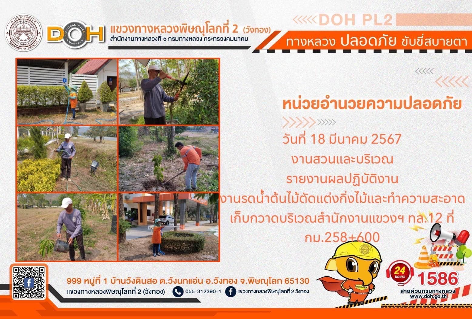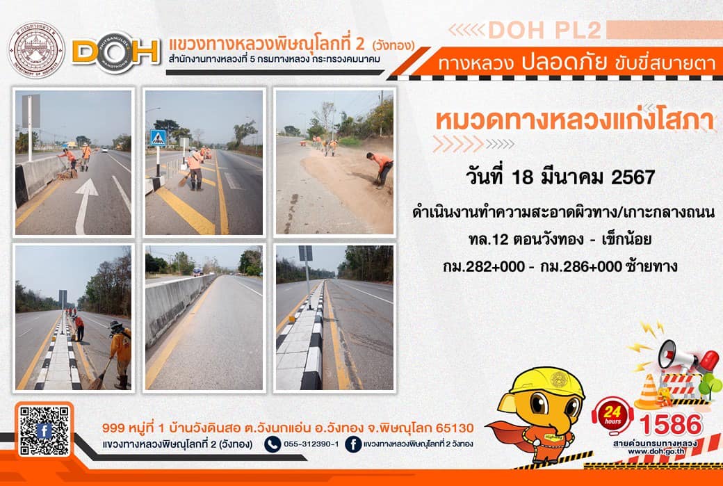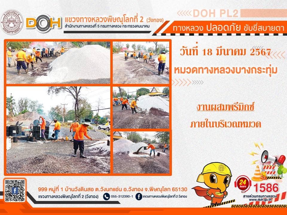 การปฏิบัติงานของ หมวดทางหลวง และ หน่วยงานในสังกัด เพื่ออำนวยความสะดวก และปลอดภัยให้กับประชาชนผู้ใช้เส้นทาง ประจำ วันจันทร์ที่ 18 มีนาคม 2567