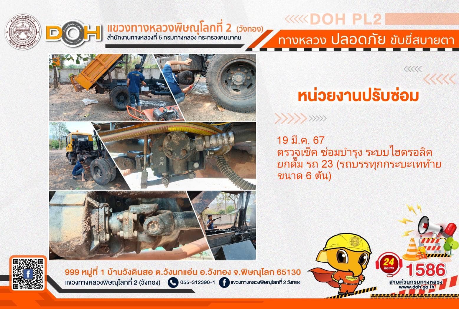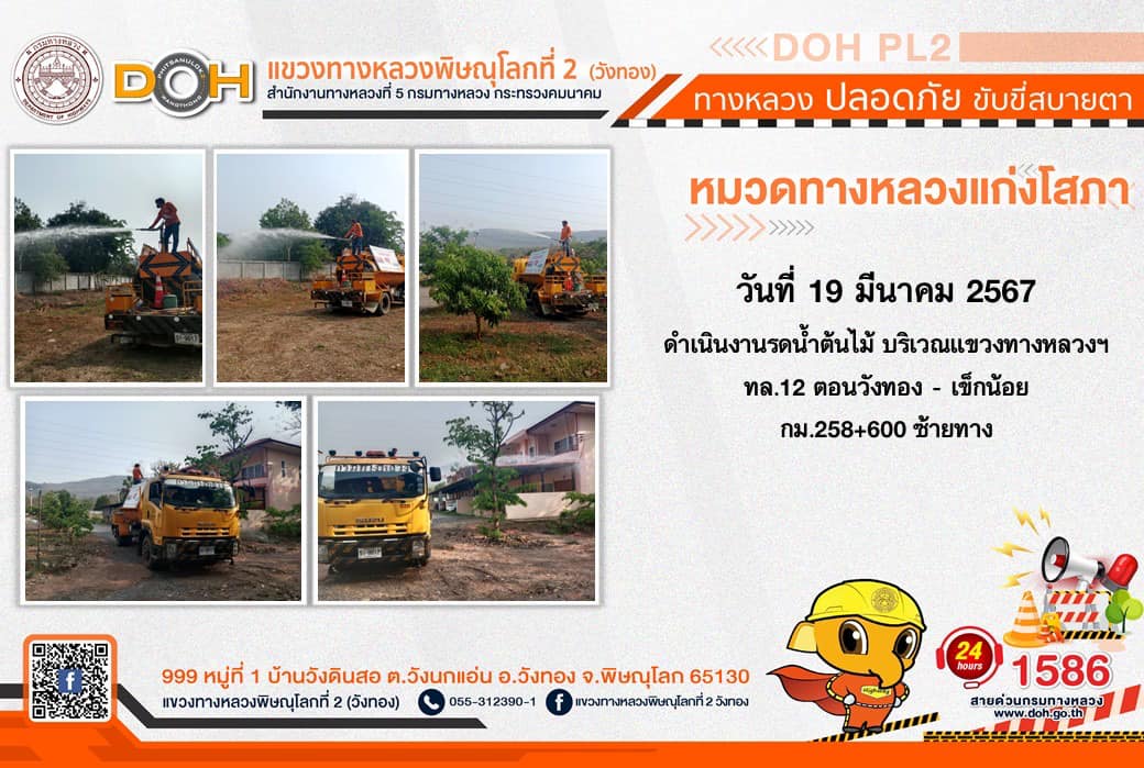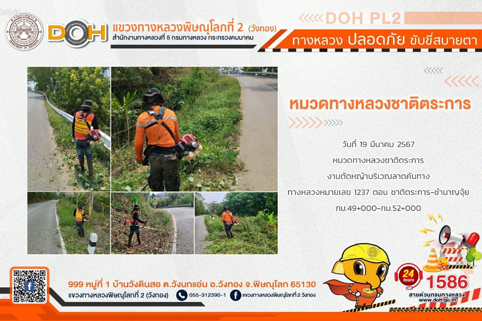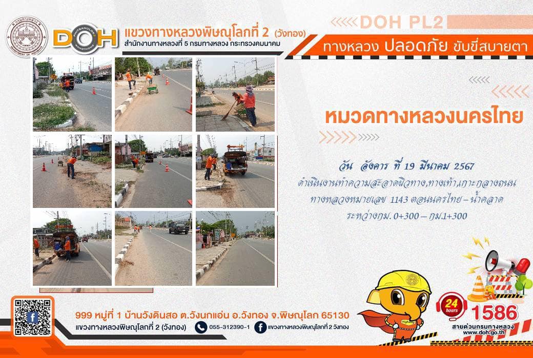 การปฏิบัติงานของ หมวดทางหลวง และ หน่วยงานในสังกัด เพื่ออำนวยความสะดวก และปลอดภัยให้กับประชาชนผู้ใช้เส้นทาง ประจำ วันอังคารที่ 19 มีนาคม 2567