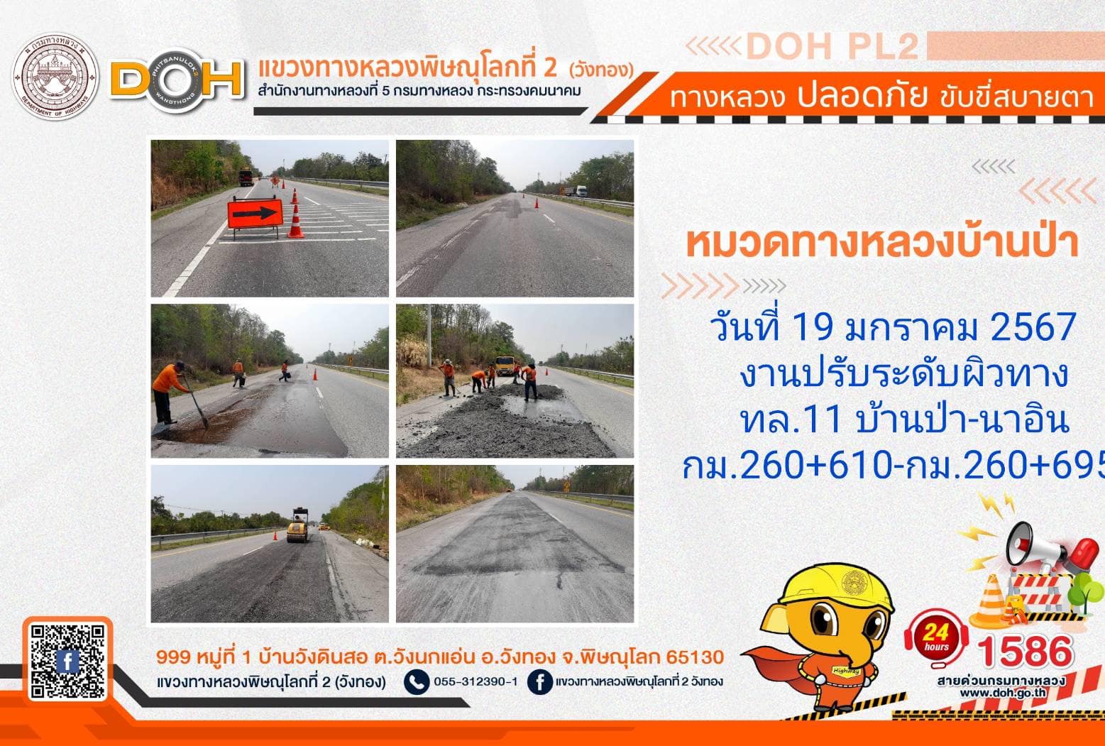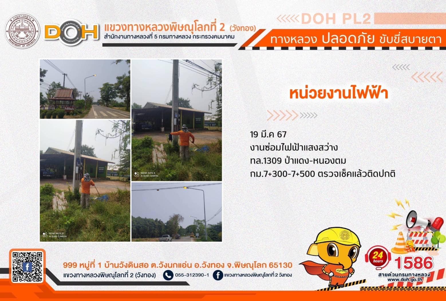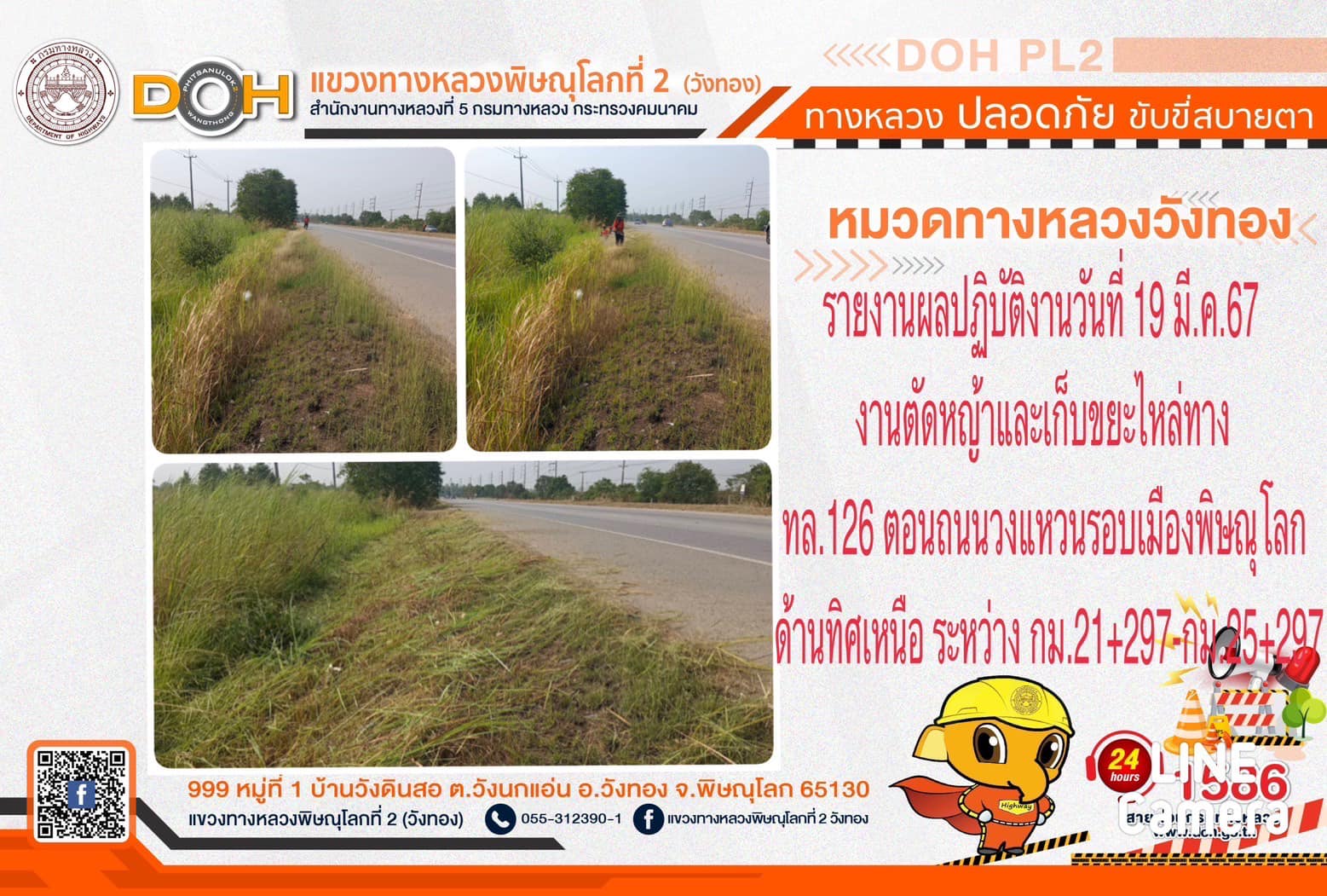 การปฏิบัติงานของ หมวดทางหลวง และ หน่วยงานในสังกัด เพื่ออำนวยความสะดวก และปลอดภัยให้กับประชาชนผู้ใช้เส้นทาง ประจำ วันอังคารที่ 19 มีนาคม 2567
