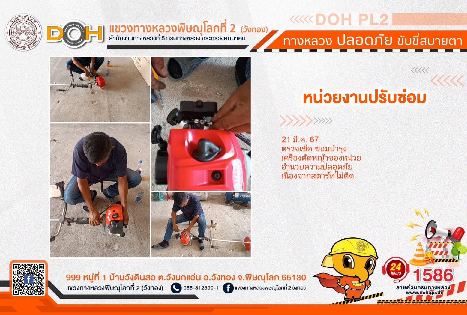 การปฏิบัติงานของ หมวดทางหลวง และ หน่วยงานในสังกัด เพื่ออำนวยความสะดวก และปลอดภัยให้กับประชาชนผู้ใช้เส้นทาง ประจำ วันพฤหัสบดีที่ 21 มีนาคม 2567