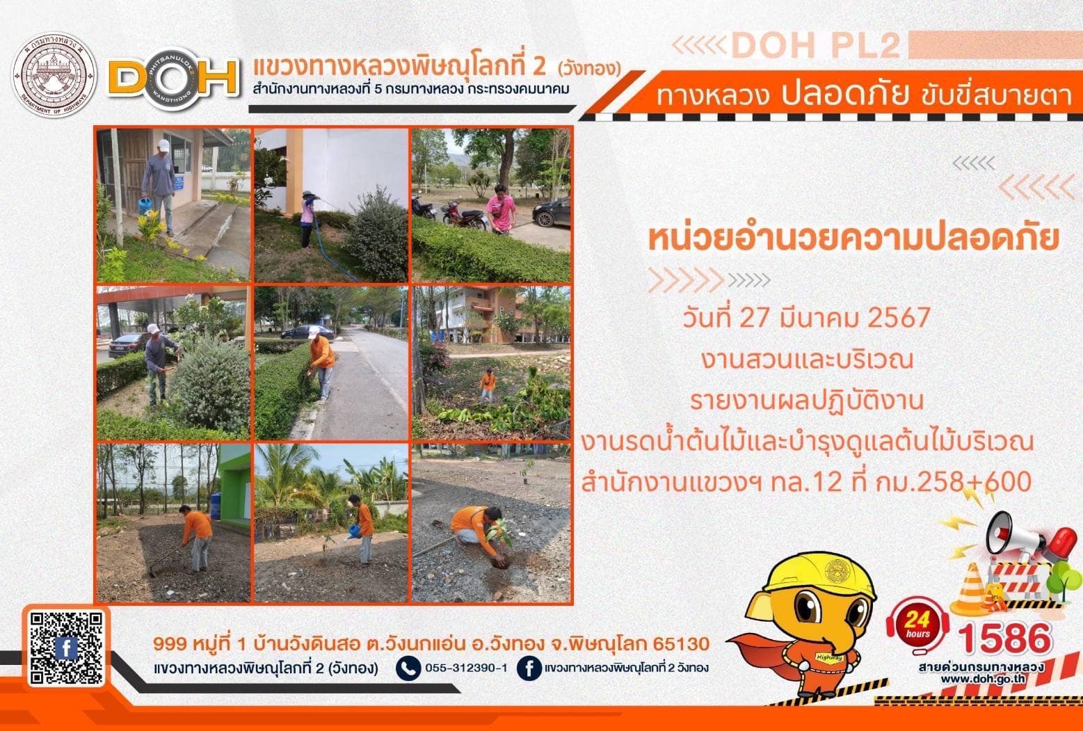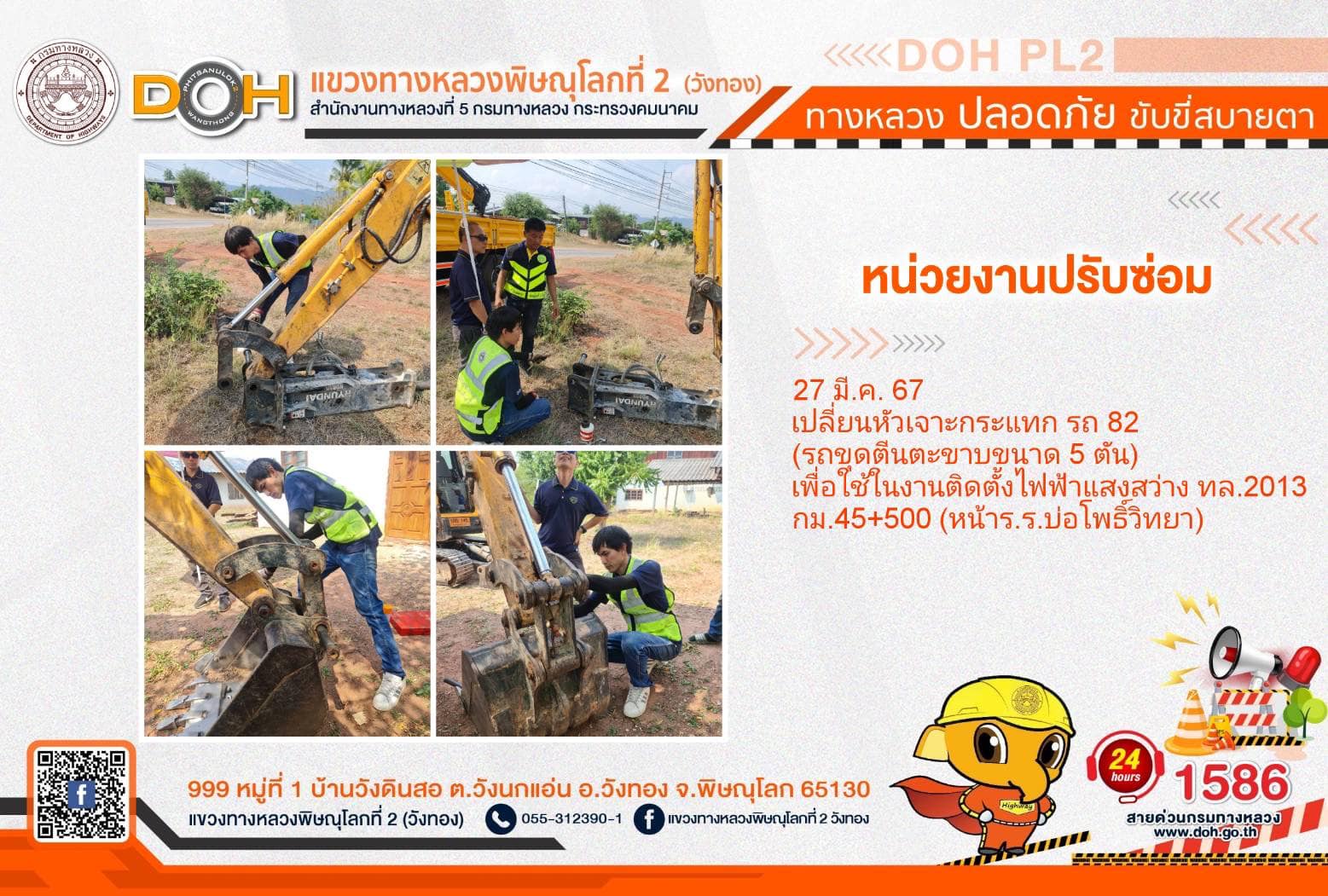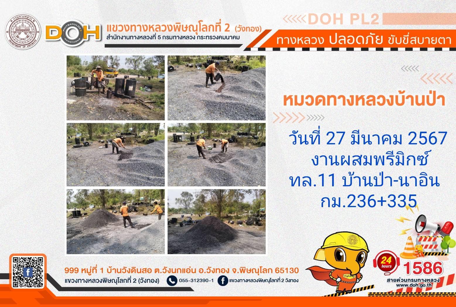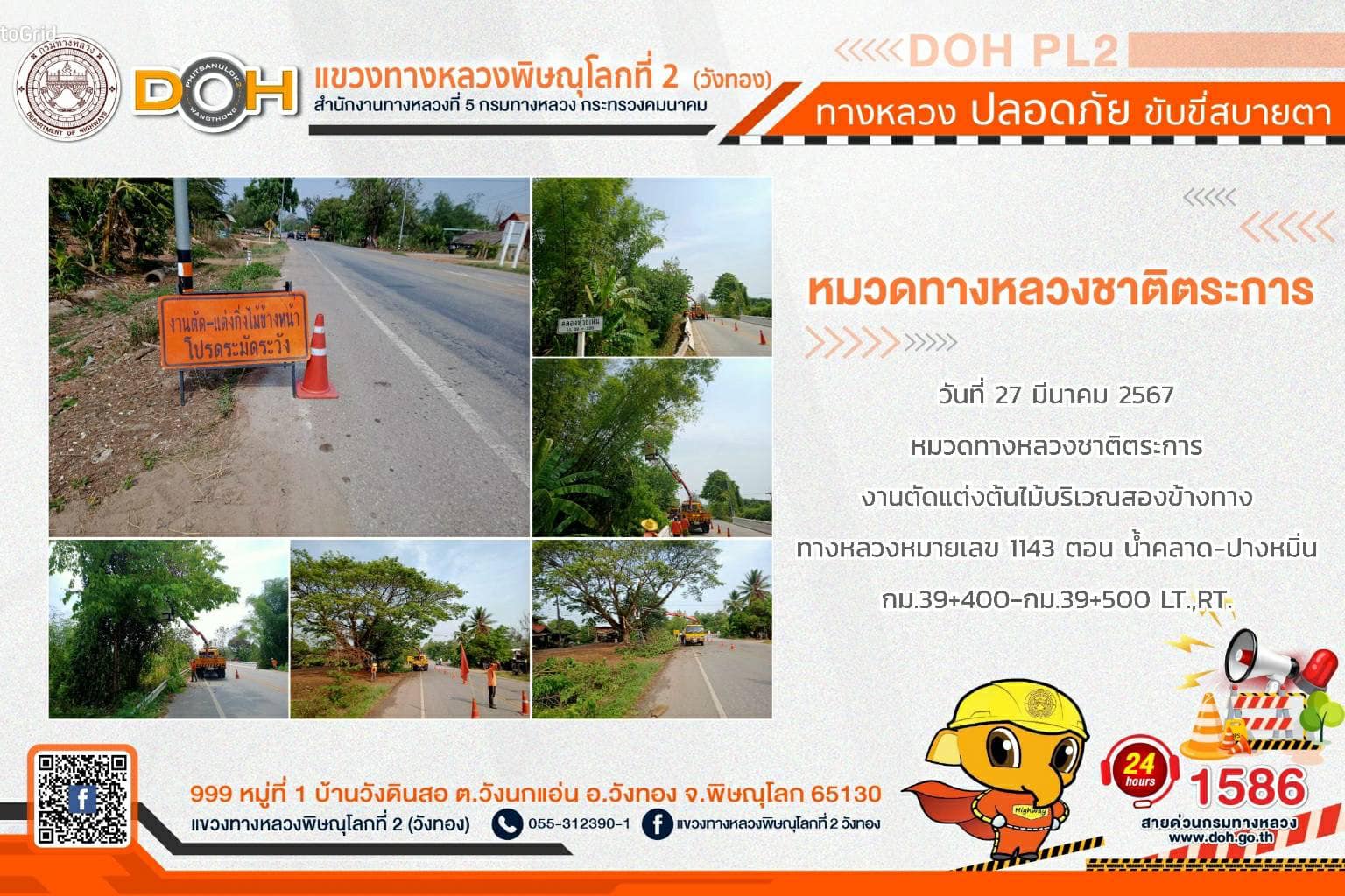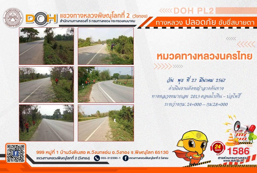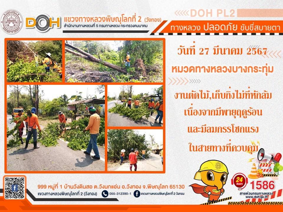 การปฏิบัติงานของ หมวดทางหลวง และ หน่วยงานในสังกัด เพื่ออำนวยความสะดวก และปลอดภัยให้กับประชาชนผู้ใช้เส้นทาง ประจำ วันพุธที่ 27 มีนาคม 2567