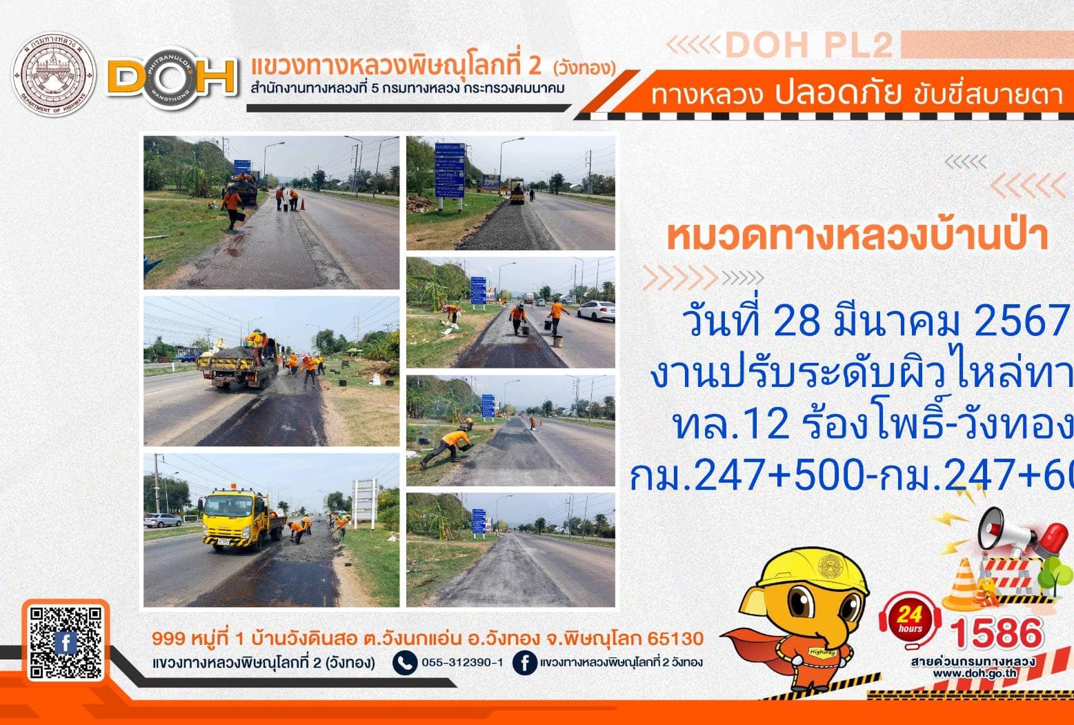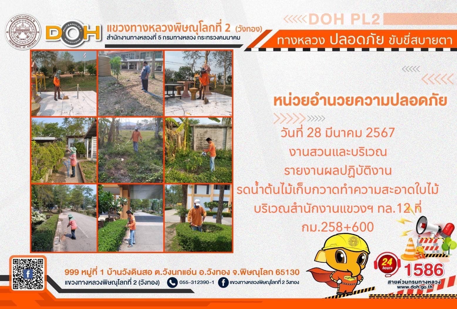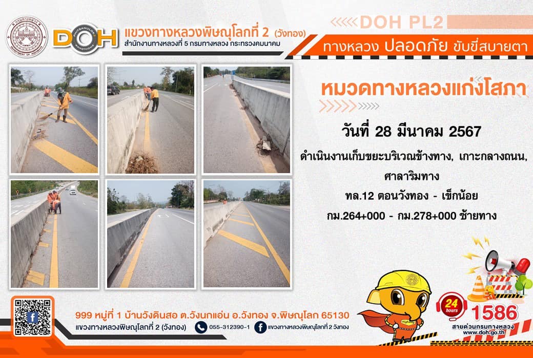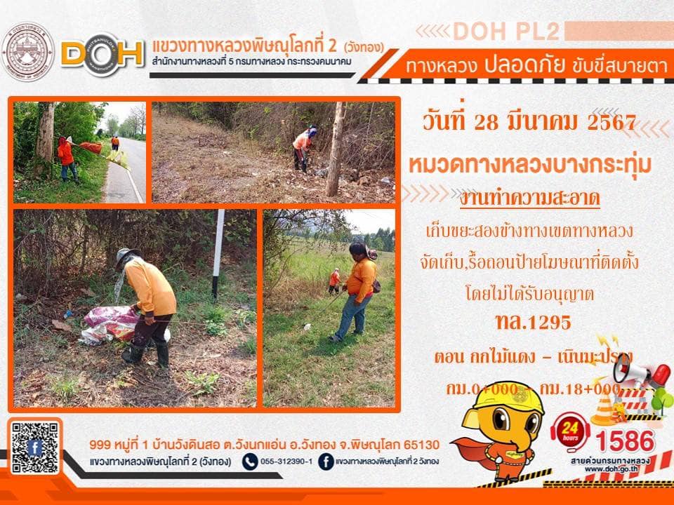 การปฏิบัติงานของ หมวดทางหลวง และ หน่วยงานในสังกัด เพื่ออำนวยความสะดวก และปลอดภัยให้กับประชาชนผู้ใช้เส้นทาง ประจำ วันพฤหัสบดีที่ 28 มีนาคม 2567